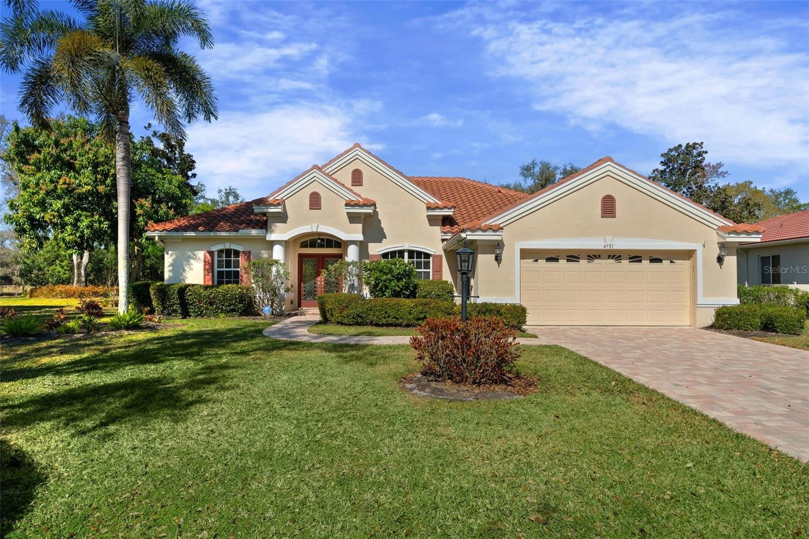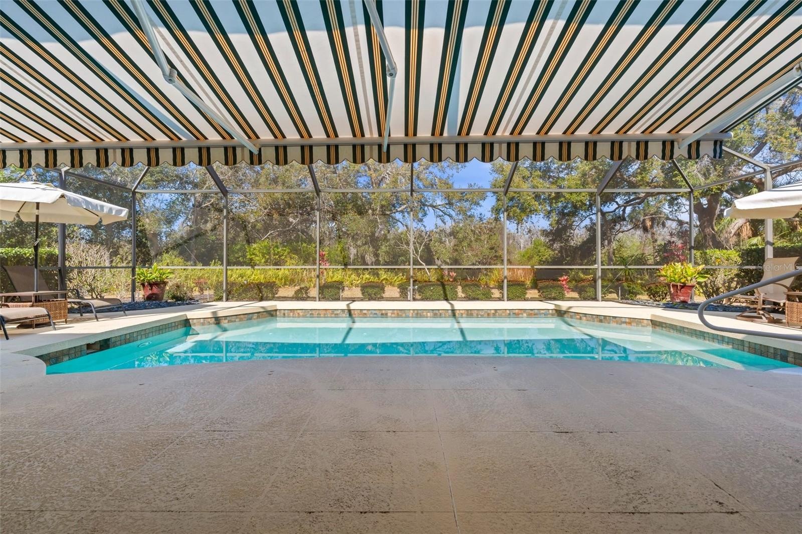 Located behind the gates of Treymore at the Villages of Palm Aire, this Arthur Rutenberg-designed residence is positioned on an oversized 0.37-acre homesite, offering privacy, elegance, and timeless design. A 2023 paver driveway and brick walkway lead to glass double entry doors, welcoming you into an open, light-filled floor plan designed for effortless living and gracious entertaining. Luxury vinyl plank flooring (2023) flows throughout the main living areas, creating a cohesive and updated aesthetic. The spacious great room opens through expansive sliding glass doors to a screened lanai featuring a solar-heated pool (2022) and retractable awning — a private outdoor retreat perfect for evening gatherings or quiet mornings by the water. The kitchen is both stylish and functional, appointed with staggered cabinetry, gas range, double ovens, tile backsplash, pendant lighting, and thoughtfully integrated roll-out shelving that enhances organization while maintaining clean design lines. The primary suite offers a serene retreat with dual walk-in closets and a well-appointed bath featuring dual vanities, a walk-in shower, soaking tub, and private water closet. A split-bedroom floor plan ensures comfort and privacy, with two guest bedrooms positioned opposite the primary suite. Recent improvements include washer, dryer, and refrigerator (2025), gas water heater (2025), tile roof (2021), updated A/C system (2019) with ducts cleaned and UV light added (2025), Mylar window and slider film, and a portable gas generator — reflecting consistent pride of ownership. Treymore residents enjoy the security of a gated enclave just moments from optional membership at Palm Aire Golf & Country Club. Offering two championship golf courses, Har-Tru tennis courts, pickleball, fitness facilities, dining, and a vibrant social calendar, Palm Aire delivers a true country club lifestyle without mandatory membership. Conveniently located near UTC Mall, SRQ Airport, downtown Sarasota and Bradenton, and approximately 14 miles to Siesta Key, Lido Key, and Bradenton Beach.