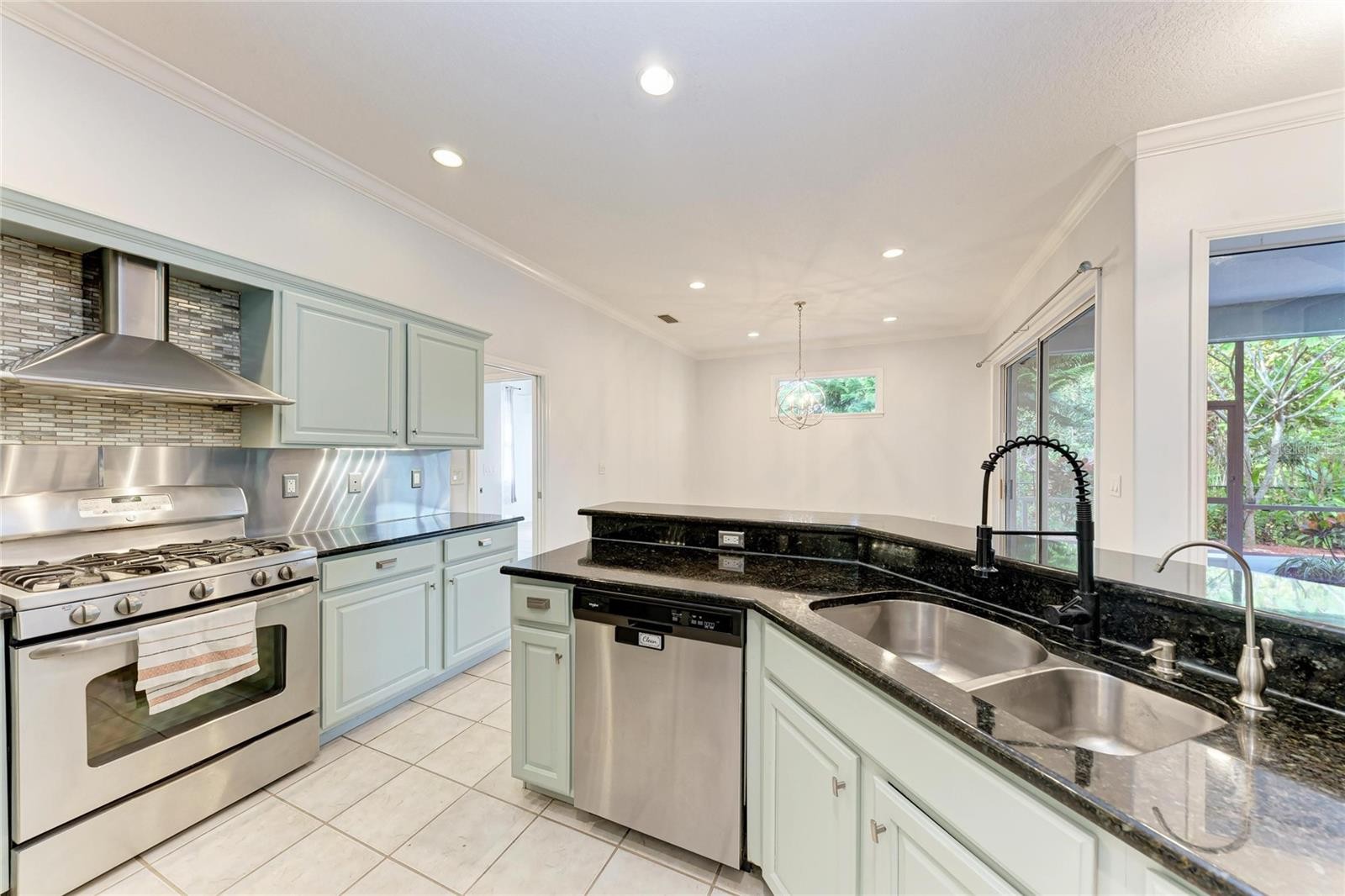 4-2 Home in a quiet subdivision; this home sits in a cul-de-sac among stately oaks with a native-plant landscaped serenity garden in the back. Imagine coming home to sit in your screened lanai, listening only to the fountain and birdsong among the trees. Close to all the grocery stores; Publix, Aldi, Trader Joe's. Bee Ridge to Rt. 41 is a direct road to downtown Sarasota. Close to world famous Siesta Key Beach. Entire house just repainted including garage.; 10' ceilings and crown molding and chair rails. All s/s appliances in the kitchen with all wood cabinets. Spacious area for dining opens up into lanai and garden. Turn on the under counter lights and watch them sparkle onto the stainless back splash. The natural gas range with the custom stainless hood completes this kitchen with granite counter tops. Reverse osmosis system in kitchen. Living room has stained glass light fixture and very light and airy. A contemporary feel throughout. The primary bedroom has brand new luxury vinyl; primary bath with rain shower and soaking tub with separate water closet. The second bedroom on the primary side can be used as office or bedroom with closet. This room in the front is shading with the oak trees. On the other side of the living area of your split, you find your two bedrooms with ceiling fans and lighting. The hall bath has rain flow faucet, tub and shower. Plantation shutters throughout the house. All with updated ceiling fans and remotes. Smoke detectors . Automatic garage door opener. Outdoor lighting. Gas hot water heater and gas range. Easy to take care of with tile and luxury vinyl throughout. Laundry room inside w/ stainless tub. UV light in a/c unit. Lanai is screened, private, and large enough for entertaining. Outside area with walking path through garden very unique. This is a side walked community with a small playground in the rear of the community with basketball/pickle ball. Two large lakes in front . HOA is active and friendly. No pets please. Lawncare by tenants. Agent-owner managed.