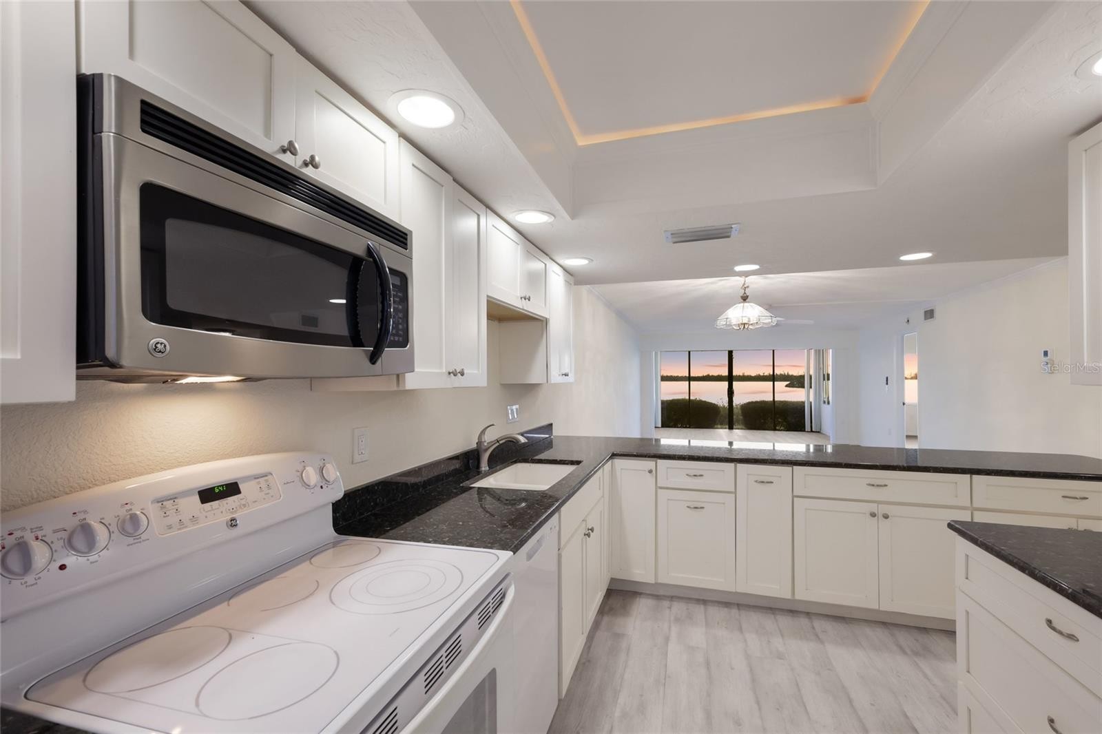Welcome to Mount Vernon, a well-established 55 and over waterfront community consisting of condominiums, town homes, and single-family homes. The condominium you are looking at is located on the banks the intercoastal overlooking Sarasota Bay. The building is elevated to have been untouched during the hurricanes of 2024. The home has a panoramic view to the southwest from the wall-to-wall patio doors giving you fabulous sunsets most of the year. The same view is visible from the primary bedroom. The condominium consists of two bedrooms, two bathrooms, and a large open floor plan that spans nearly the entire length of the condominium. The original Florida room was opened to the home sometime in the past and is air conditioned. The kitchen overlooks the living area with a large granite countertop separating them. There are new vanities, sinks, plumbing fixtures and toilets in both bathrooms. The water heater, garbage disposal and dishwasher were replaced in 2025. The existing refrigerator works. However, seller will provide a credit at closing for a replacement. The condominium has been refreshed and is ready for your up-to-date personal touches. Your assigned parking space is right in front of your front door. The community is golf-cart friendly and has no upcoming assessments There is a community building with a gathering room with weekly activities, a pool, pickle ball courts, shuffleboard court and walking and bike paths. This is a perfect snowbird community. It is just what you need to get away from winter and enjoy living in paradise. Did I forget to say that you are about two miles from the gorgeous beaches of Anna Maria Island and short drive to shopping, restaurants, hospitals, and Sarasota Airport.