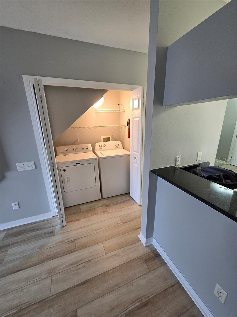 Welcome to this light and bright 2-bedroom, 2.5-bath end-unit townhouse ideally situated on the lake in the desirable Sabal Key community. This well-maintained residence offers a functional open layout with a combined living and dining area, perfect for everyday living or entertaining. The kitchen features new granite countertops, generous cabinet space, and a convenient pantry, creating a stylish and functional space for cooking and gathering. The first floor showcases new luxury vinyl plank flooring with a wood-look finish, along with a convenient half bath and a laundry room neatly tucked under the stairway. Sliding glass doors open to a screened-in lanai overlooking the tranquil lake, ideal for relaxing and enjoying peaceful water views. Upstairs, both bedrooms are generously sized and feature private en-suite baths, with ceramic tile flooring in the upstairs bathrooms for durability and easy maintenance. As an end unit, the home benefits from added privacy and abundant natural light. Community amenities include a community pool, one reserved parking space, and ample guest parking. Conveniently located near shopping, dining, and major roadways, this property is well-suited for full-time residents, seasonal owners, or investors alike. Enjoy low-maintenance living with scenic lake views in a prime location—this home is a must-see!