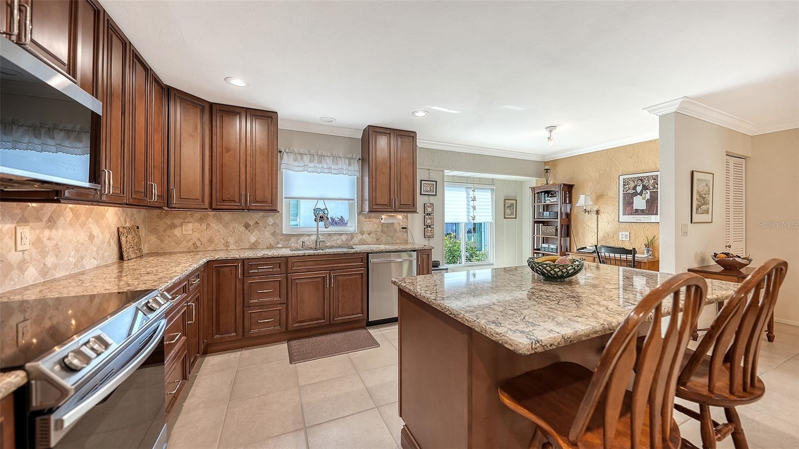 Welcome to The Meadows, a tranquil, master-planned community known for its lush, park-like landscapes, ancient oak hammocks, sparkling lakes, and miles of walking and biking trails. With no CDD fees and three golf courses with planned professional restoration and optional memberships, The Meadows offers an exceptional lifestyle in a serene natural setting. This exquisitely landscaped home showcases native plants, vibrant flowers, and stunning trees including a Flamboyant Royal Poinciana, Mature Mango tree, and striking Blue Hawaii Jacaranda, creating exceptional curb appeal and a warm welcome for residents and guests alike. The property also enjoys peaceful views of one of The Meadows’ golf courses, adding to the sense of openness and tranquility. Inside, the open kitchen overlooks the main living area, making it ideal for entertaining or spending quality time with family. A unique whole-house exhaust system provides enhanced ventilation, perfect for the chef of the home. The family room features sweeping glass walls that fill the space with natural light and frame calming views of the surrounding landscape. The split floor plan places guest bedrooms on the opposite side of the home, ensuring comfort and privacy for everyone. The expansive layout and light-filled interiors create an immediate sense of calm and openness the moment you walk through the door. Additional highlights include an epoxy-coated garage floor that adds durability and a clean, polished appearance, along with updated appliances including a microwave (2025), refrigerator (2021), oven (2021), dishwasher (2021), washer (2020), and dryer (2020). The location is unmatched, offering convenient access to Mote Marine Aquarium, Siesta Key Beach, Sarasota’s vibrant cultural arts scene, world-class theaters, UTC Mall, popular restaurants, Nathan Benderson Park, Lakewood Ranch Waterside, and the Sarasota–Bradenton International Airport. Schedule your private showing today and experience the exceptional lifestyle The Meadows offers.