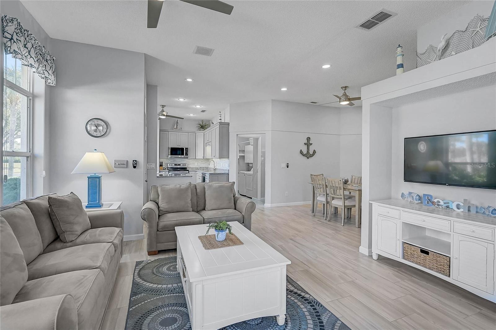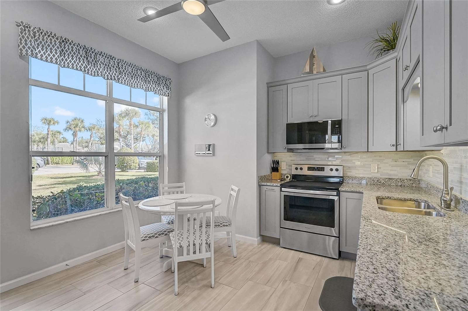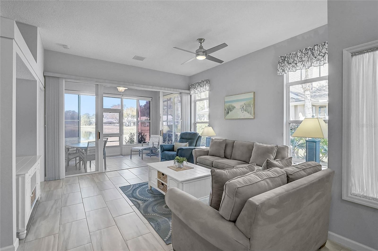 Wake up to peaceful lake views and easy, maintenance-free living in this bright and welcoming two-bedroom, two-bath home with a two-car garage in the highly desirable Isles of Chestnut Creek. Designed for comfort and connection, the open floor plan features soaring volume ceilings, oversized windows that fill the home with natural light, and spacious living and dining areas that flow effortlessly into the Florida room and lanai—perfect for morning coffee, sunset views, or gathering with friends. The split-bedroom layout offers privacy for guests, while the primary suite enjoys tranquil water views, a walk-in closet, and a beautifully updated bath with a refreshed vanity, modern fixtures, and a stylish tiled shower. The kitchen has also been tastefully renovated with granite countertops, updated cabinetry, and newer appliances, creating a clean, modern space that’s both functional and inviting. A new roof (2025) adds extra peace of mind, making this home truly move-in ready. Best of all, it’s being offered turnkey furnished—just bring your suitcase and start enjoying the Florida lifestyle from day one. Outside your door, enjoy low-maintenance living and wonderful community amenities including a clubhouse, heated pool, pickleball, tennis courts, and shuffleboard. Stroll along tree-lined sidewalks, take in the wildlife around the neighborhood’s scenic lakes, or head just minutes away to shopping, dining, Historic Downtown Venice, and the beautiful Gulf beaches. Simply unpack, settle in, and start enjoying the view.
