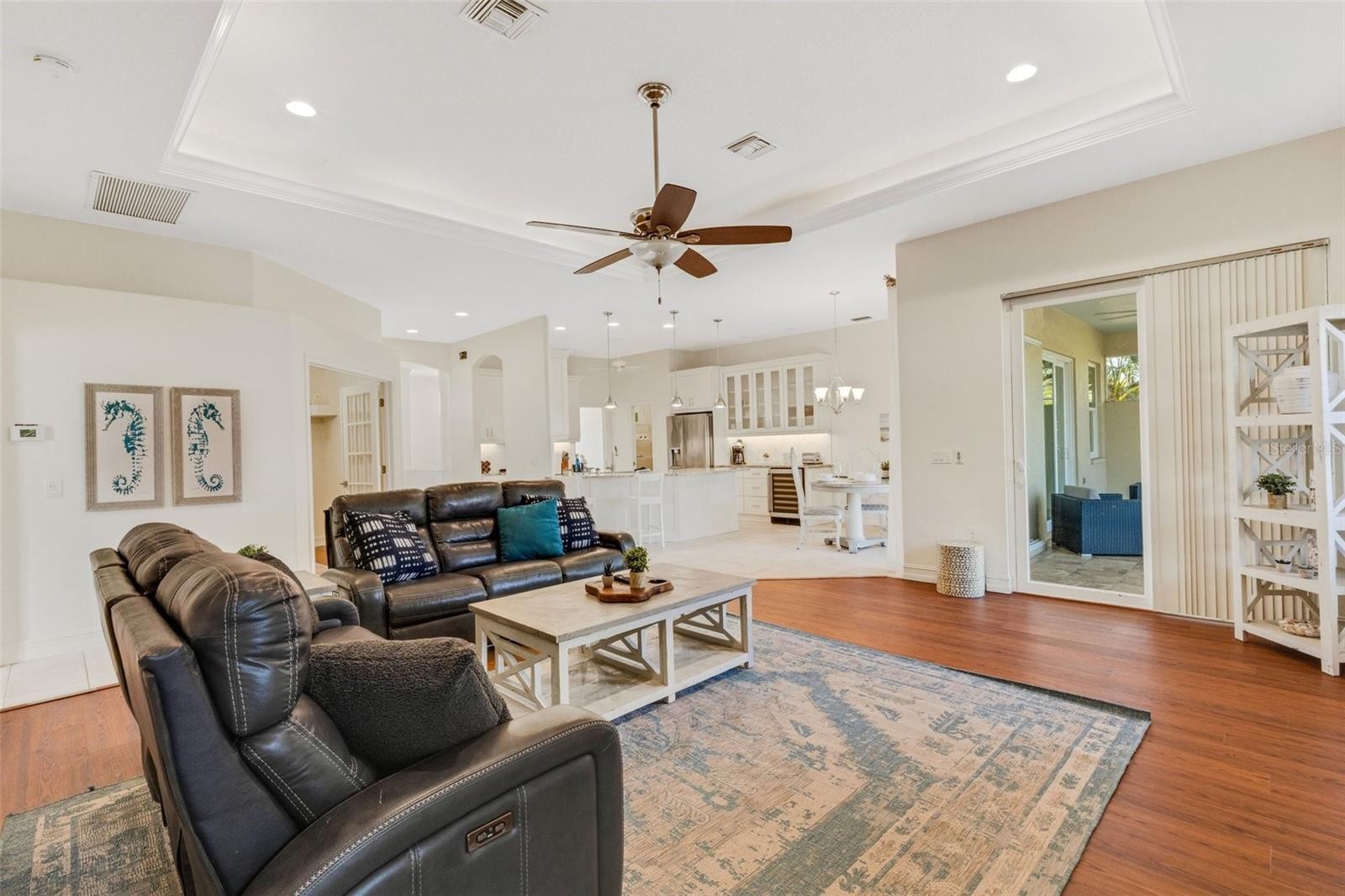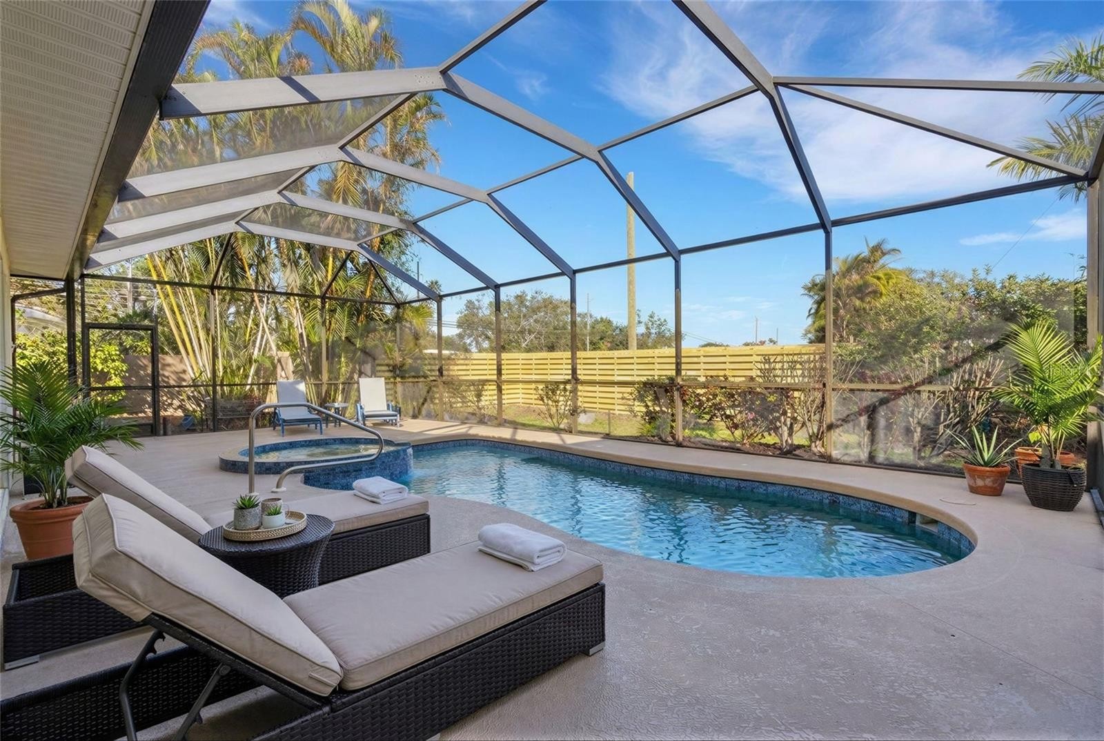 Beautifully upgraded custom pool home in a prime central Sarasota location. This thoughtfully designed split floor plan offers an open, airy feel with a private office/den, spacious great room, and a generous owner's suite with luxurious ensuite — each additional bedroom featuring its own private bath. The renovated chef's kitchen includes granite countertops, custom soft-close cabinetry, stainless steel appliances, convection oven, wine refrigerator, pot filler, and breakfast bar. Interior highlights include tile and vinyl flooring, recessed lighting, volume and coffered ceilings, crown molding, and abundant natural light. Flexible living spaces accommodate multiple dining or work-from-home arrangements. The private outdoor retreat features a large screened lanai, heated saltwater pool and spa, covered patio, and lush tropical landscaping — complete with a pool bath, outdoor shower, propane heater, well irrigation, storm shutters, and impact-rated openings. 2026 updates include a new HVAC, Maytag washer/dryer, fully automated Pentair gas pool/spa heater, irrigation well pump, refrigerator, wine cooler, and a refinished three-car garage with new opener. Conveniently located near Siesta Key Beach, I-75, shopping, dining, and parks including Red Bug Slough, Urfer Family Park, and the Legacy Trail extension. Districted Schools (all A-rated on Niche): Elementary: Ashton Elementary Middle: Sarasota Middle School High School: Riverview High School All levels: Pine View School for the Gifted — ranked #1 public high school school in Florida and top school in the US