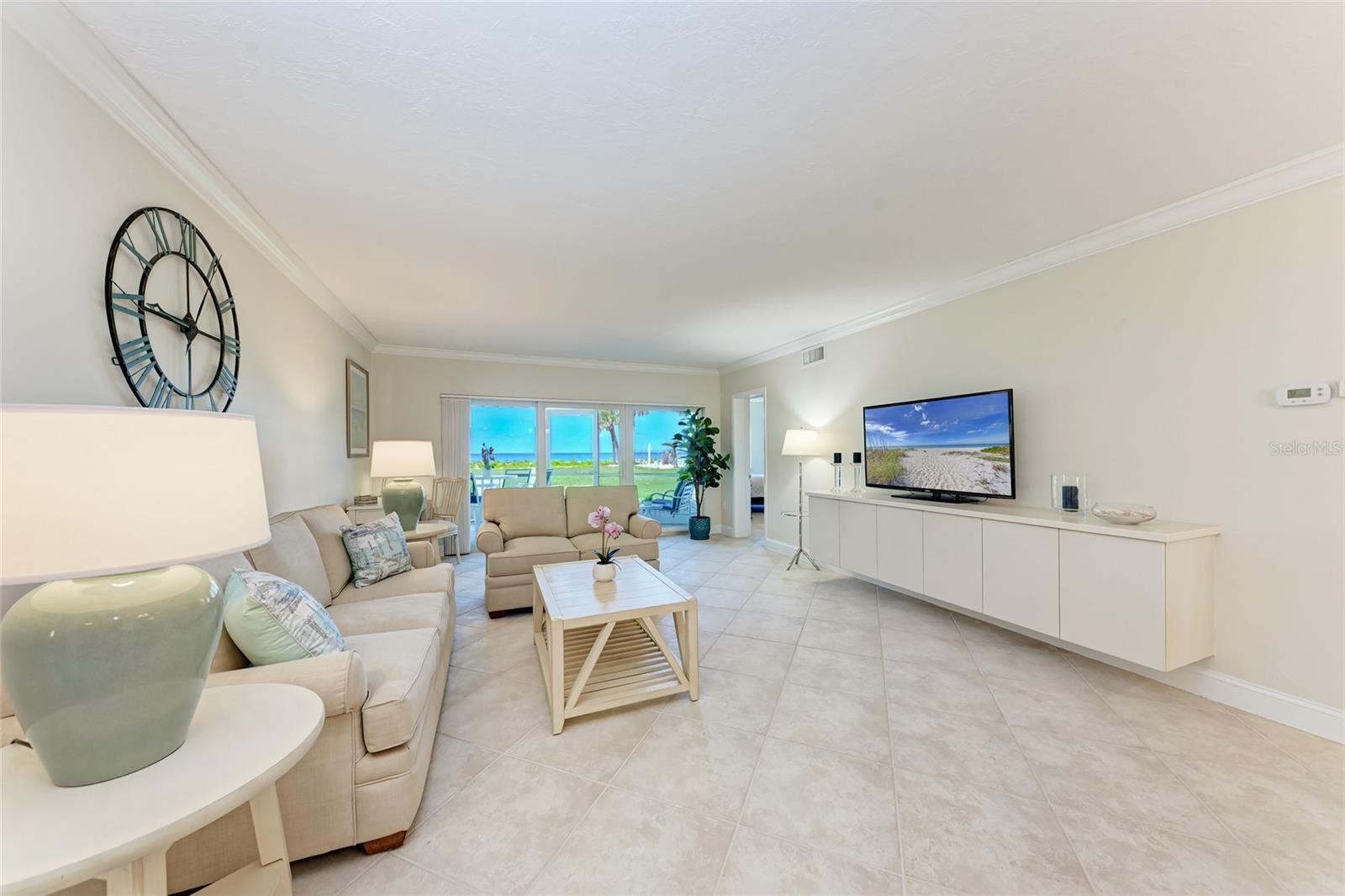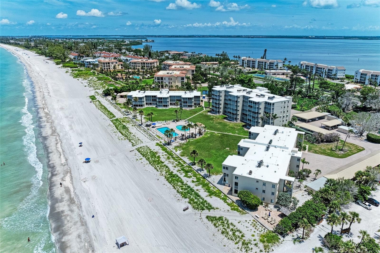 Experience direct Gulf-front living in this turnkey-furnished, first-floor walkout residence at The Westchester on Longboat Key. Enjoy turquoise water views from nearly every room, with miles of pristine beach just outside your door. This two-bedroom, two-bath condominium is tastefully decorated in a coastal style and features a spacious split floor plan designed for comfort and privacy, along with seamless indoor-outdoor access to the pool and beach. The living and dining areas include a built-in entertainment center and serving buffet. The kitchen is appointed with stainless steel appliances, generous counter space, and abundant storage. Both bedrooms offer en suite baths and generous walk-in closets, with additional storage in dual closet spaces. The primary suite includes a private screened lanai overlooking the Gulf, and there is an in-unit washer and dryer for added convenience. A larger screened lanai off the great room frames panoramic Gulf views and opens directly to the community pool and pristine shoreline. This well-designed and fully furnished unit includes assigned covered parking and invites you to enjoy effortless coastal living. Community amenities include lighted tennis and pickleball courts, a basketball court, two heated pools, shuffleboard, outdoor grills and cabanas, kayak and bicycle storage, and generous private storage lockers for beach gear. A newly renovated clubhouse is coming soon, featuring a full kitchen, lending library, and fitness area. Rentals are permitted, offering flexibility for seasonal or year-round use. The Westchester’s mid-key location offers convenient proximity to Bayfront Park with its dog parks, as well as to nearby Publix supermarket, pharmacy, banking, and fitness facilities. Residents are also within minutes of the Centre Shops, Whitney Plaza Shops, and popular north-end waterfront dining, including bayside favorites like Shore Restaurant and Mar Vista. Longboat Key offers a private golf course, full-service marina, waterfront parks, and a variety of dining options. Nearby destinations include St. Armands Circle and downtown Sarasota.