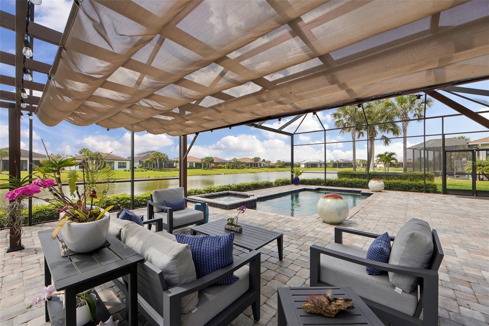 Welcome to one of the most sought-after communities in East Sarasota, where lifestyle, design, and elevated living converge in Artistry. Ideally located with seamless access to Interstate 75, Lakewood Ranch, and the Gulf Coast beaches, this residence offers both convenience and a refined residential experience. Built in 2019 and extensively enhanced beyond builder-grade standards, this home presents a rare opportunity to own a fully upgraded, move-in complete property with thoughtful design and high-end improvements throughout. The floor plan features three full bedrooms, a dedicated office, and a three-car garage, providing both flexibility and functionality. From the moment you arrive, the custom pivot iron front door with electronic privacy glass creates a striking architectural statement and sets the tone for the quality found inside. Soaring ceilings and transom windows fill the home with natural light, creating a bright, open, and expansive feel. Smooth flat-finish walls and clean architectural lines elevate the interior beyond typical construction, delivering a true custom-home aesthetic. The home opens to an exceptional outdoor living environment designed for both entertaining and everyday enjoyment. An oversized lanai with clear view screening captures long lake views and creates a seamless indoor-outdoor experience. The resort-style pool and spa, paired with a fully equipped outdoor kitchen, transform the space into a private retreat rarely found in comparable homes. Significant structural and system upgrades further distinguish this property, including hurricane impact windows, spray foam insulation for enhanced energy efficiency, a whole-house generator, and new insulated flat panel garage doors. These improvements provide not only comfort and performance, but long-term value and peace of mind. Situated on a premium lakefront homesite, this home stands apart as a fully realized residence where design, function, and lifestyle have already been completed for the next owner. Select furnishings may be purchased separately, offering a potential turnkey opportunity. This is a rare offering in Artistry that combines location, upgrades, and lifestyle into a single, move-in ready opportunity. Listing agents are the sellers of this home.