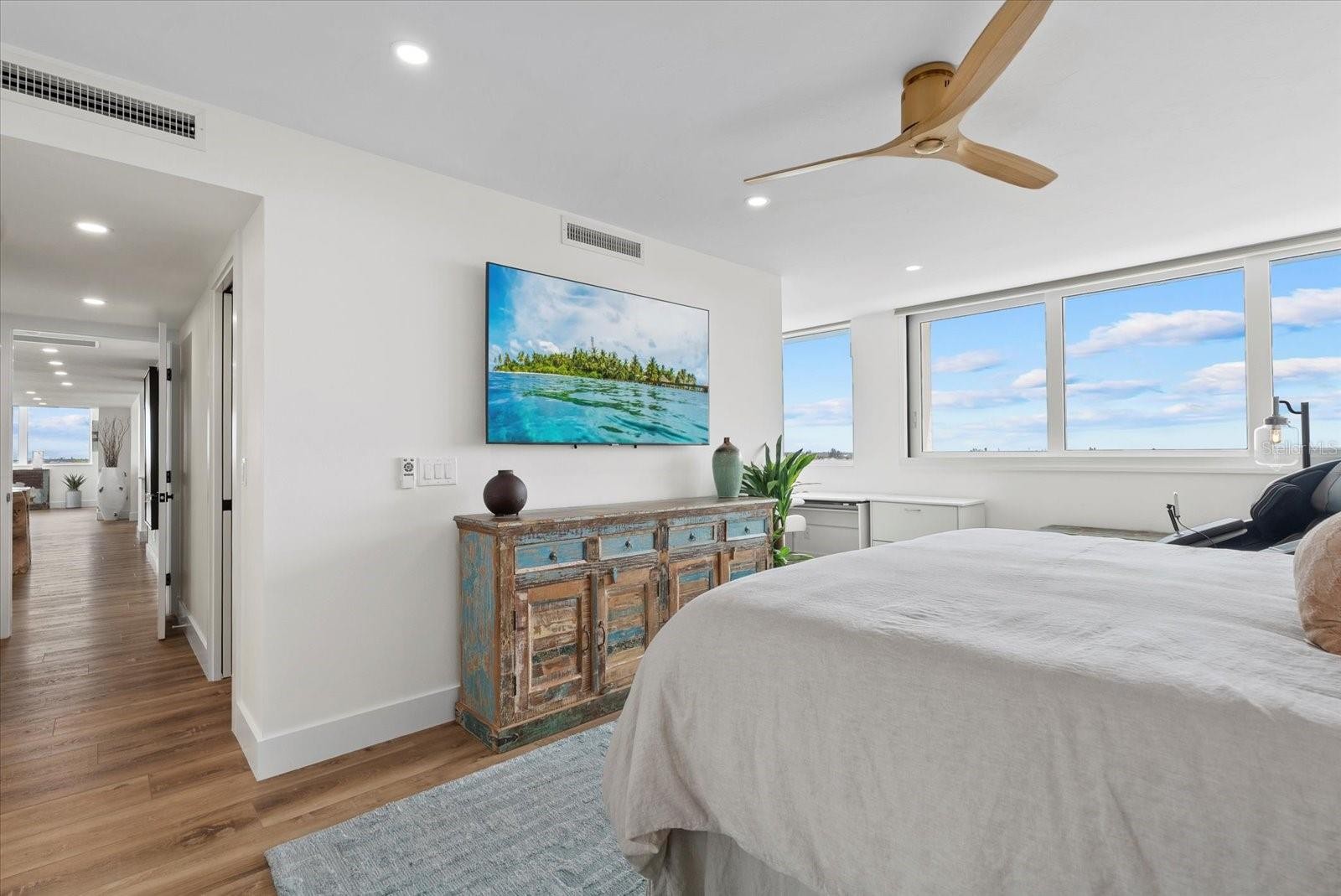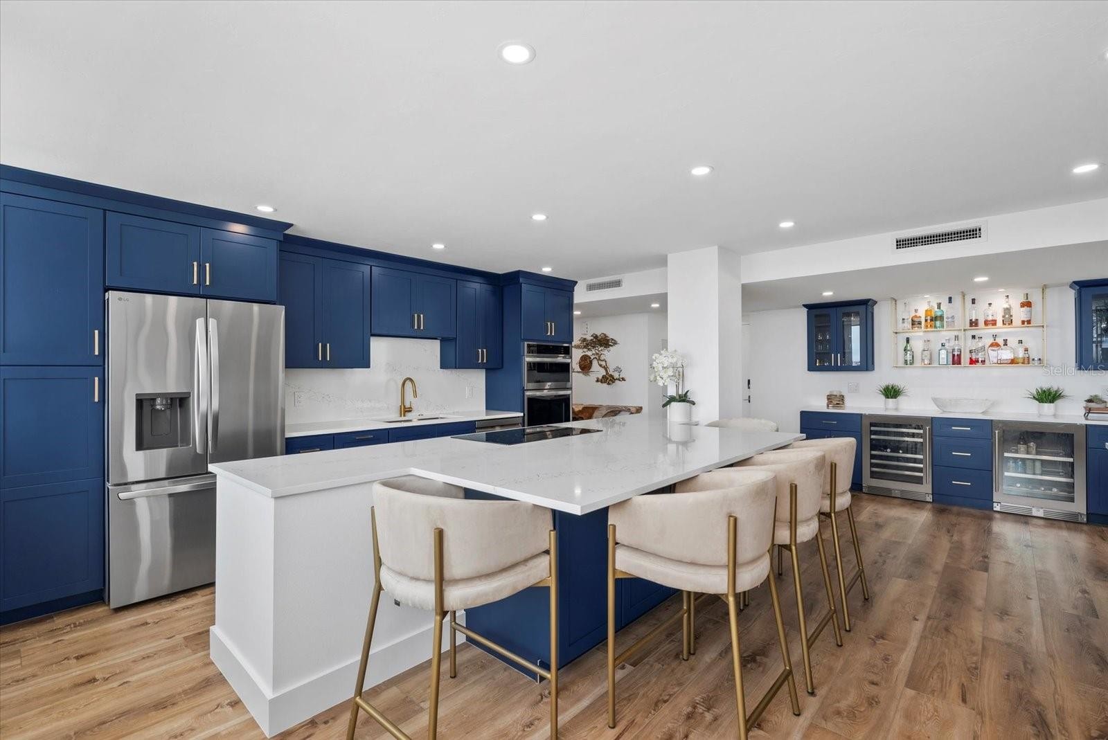 Under contract-accepting backup offers. Perched high above the shoreline, Residence 8C at Siesta Towers delivers nearly 360-degree views spanning the Gulf, Big Pass, Sarasota Bay, and the twinkling downtown skyline. From glowing sunsets to sparkling city lights, this vantage point is among the most extraordinary on Siesta Key. Rarely available, this three-bedroom, three-bath residence has just undergone a complete, top-to-bottom remodel. Every detail was thoughtfully curated with today’s luxury buyer in mind—offering the ease of brand-new finishes within an iconic Siesta Key location. Designed with a sleek, modern aesthetic, the open floor plan showcases impact-rated windows and sliding glass doors, wide-plank luxury flooring, custom recessed lighting, and a seamless indoor-outdoor flow. The all-new designer kitchen is appointed with quartz countertops, custom soft-close cabinetry, premium stainless-steel smart appliances, and a striking island ideal for entertaining. Each of the three en-suite bathrooms has been fully redesigned with spa-level finishes, frameless glass showers, elegant tilework, and contemporary fixtures. The spacious primary suite is a retreat in itself, featuring a tranquil en-suite bath and panoramic water views. Siesta Towers is a secure, well-managed waterfront community offering an enviable lifestyle. Building amenities include secure access-controlled entry, 24/7 security, a remodeled club room, fitness room, heated waterfront pool, BBQ grills, fishing dock, social dock, bike storage, and more. Just beyond your door, Siesta Village’s restaurants, shops, and nightlife are a short stroll away, with the powdery sands of world-renowned Siesta Beach minutes from home. This residence combines the rarity of a three-bedroom layout with a brand-new, complete remodel and nearly all-around views—an exceptional opportunity to own one of Siesta Key’s most striking vantage points.