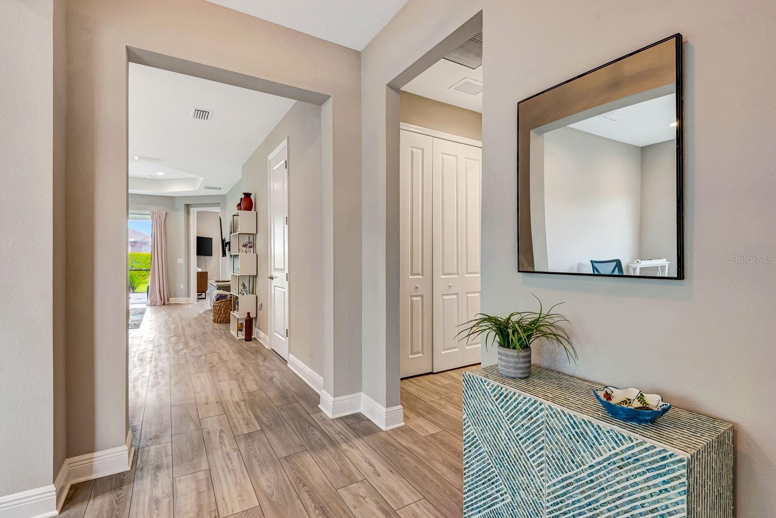 Welcome to one of the most desirable villa models in the sought-after Canoe Creek community. This 2-bedroom + den home is only two years old and showcases premium upgrades throughout, including luxury vinyl plank flooring, soaring ceilings, quartz countertops, an oversized kitchen island, and an epoxy-coated garage floor. Designed with both style and function, this villa also features smart home technology and carefully selected finishes that make it truly move-in ready. As a Canoe Creek resident, you’ll enjoy resort-style amenities such as a private villa pool and spa, clubhouse with outdoor kitchen, state-of-the-art fitness center, year-round social events, and more. The community is beautifully maintained, offering the perfect balance of comfort and luxury. Located in the rapidly growing Parrish area near Lakewood Ranch, this home provides easy access to St. Petersburg, Sarasota, and Tampa – all within a short drive. If you’re searching for a modern villa in a vibrant, amenity-rich community, this is the one to see.