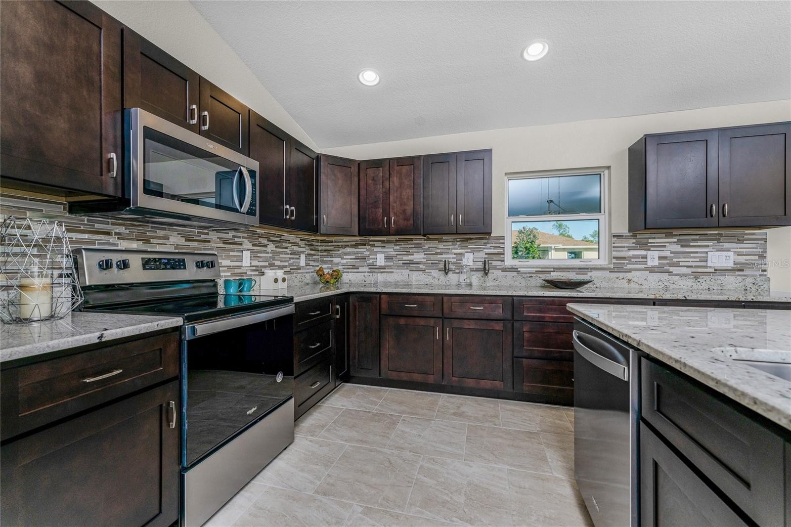 BEAUTIFUL NEW CONSTRUCTION HOME - AVAILABLE NOW! Why settle for a basic "builder grade" home when you can have it all included? This stunning home offers a level of upgrades rarely seen at this price point. Featuring an open, split floor plan with vaulted ceilings, this home is built for both style and long-term savings. PREMIUM FEATURES INCLUDED: This home is fully equipped with PGT double-pane Hurricane Impact windows and sliding doors, meaning NO shutters are ever needed. You will find 50-year-rated porcelain tile flooring throughout the entire home, including the showers. The chef-inspired kitchen features 36-inch upper cabinets with soft-close drawers and doors, premium granite or quartz countertops, and quality stainless steel appliances. BUILT FOR SAVINGS AND DURABILITY: Designed to keep your insurance, maintenance, and utility costs at a minimum, this home includes an energy-efficient HVAC system, a 3- or 4-zone sprinkler system and a 30-year shingle roof. The exterior comes fully sodded and professionally landscaped, complete with gutters around the entire perimeter and a fully screened-in lanai for year-round Florida living. PEACE OF MIND: Move in with confidence knowing your investment is protected by extensive warranties, including a 10-year structural warranty and a 10-year HVAC warranty. FINANCING BONUS: Our preferred lender is currently offering up to $1,500 in closing cost assistance! Take a virtual tour of one of our beautiful homes here: https://youtu.be/SFsL-Aell24