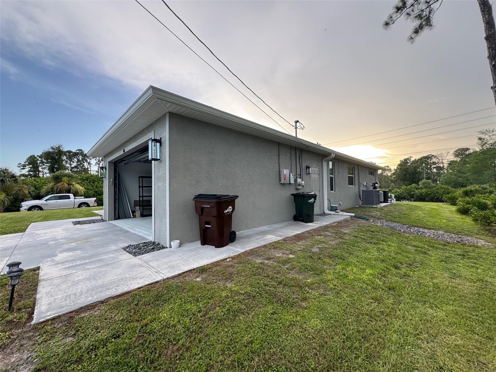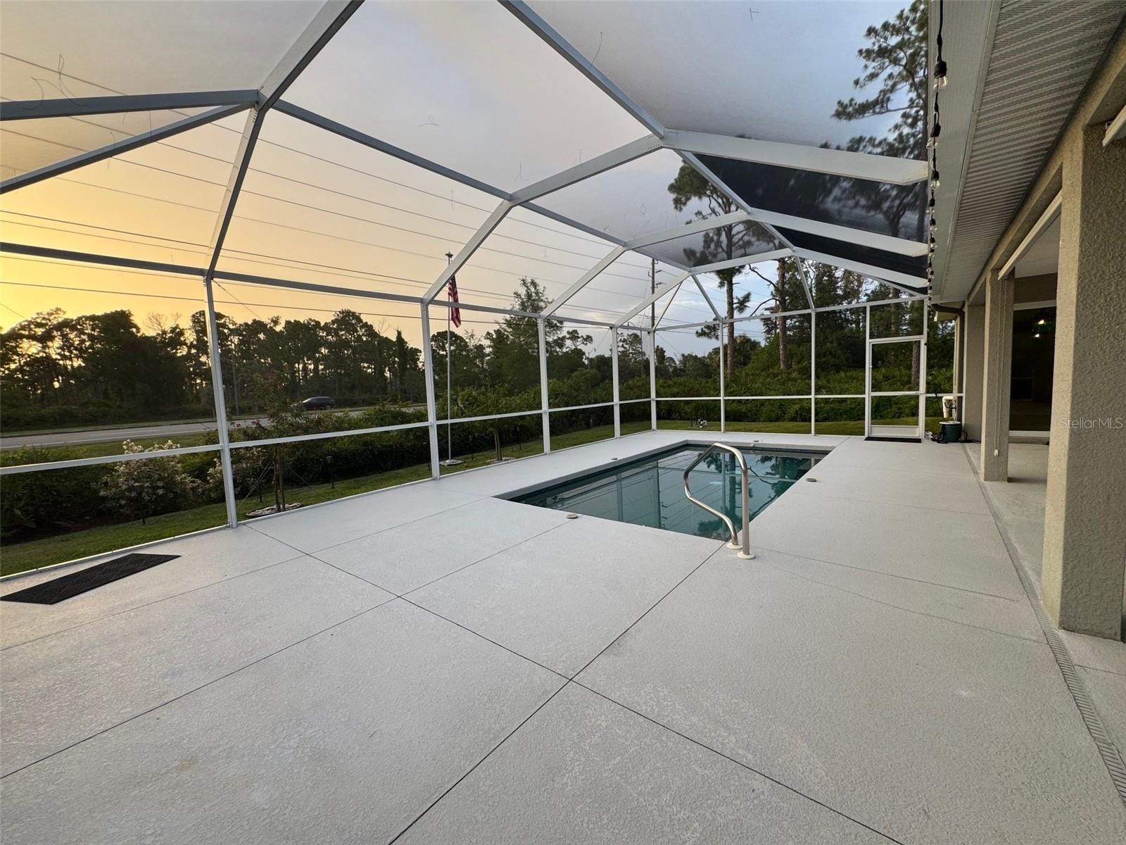 Looking for Privacy, are you a RV Owner, have trailer(s) with easy access to the I-75 Interstate Highway, then this home and property is for you! Come enjoy the endless sunsets from your lanai with no homes behind you with 1940 sq/ft, 3 Bed, 2 bath, salt pool home situated on THREE 82.9' x125' LOTS with buffers of trees on both ends and yet there is still more room for parking a Class A RV on a crushed gravel driveway w/concrete apron, with a 30 amp outlet and water faucet nearby, boats, toy trailers, sheds, you name it...NO HOA! This home also has No Carpet! Porcelain Tile Floors throughout, Crown molding and high ceilings in the living, dining and kitchen and primary bedroom. Ceiling fans in Living, bedrooms, and office/den controlled by remotes, with lights and dimmers. Other dimmers control bathrooms, dining table and kitchen as well. You will find Tray Ceilings located in the living area and Primary Bedroom. Zero corner glass sliders in the living area opens up to the lanai (pre-plumbed for an outdoor kitchen) and 10x20 pool that features a Badu Water Jet, for walking and swimming resistance. All windows have white, faux wood blinds, except for the transom windows. Yard is kept in shape with a well irrigation system using a 5-zone Rainbird controller. EXTRA FEATURES include SOLAR PANELS, XFINITY Alarm System, Gutters with LeafFilters installed to keep them clean and flowing. Indoor Laundry Room has a sink with plenty of above and below storage. What are you waiting for? Come see this house and see what it offers you! *Over $128,645 in improvements have been made (see attachments)
