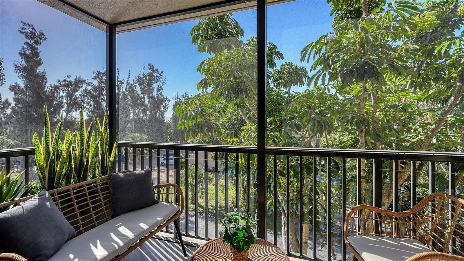 Perched among the treetops in the beloved Sandy Cove community on Siesta Key, this beautifully renovated 2BR/2BA residence offers a rare blend of privacy, charm and authentic island living. With 1,200+/- sq. ft. of thoughtfully designed space and three private balconies, life here feels like a peaceful retreat surrounded by nature, where sunlight filters through the trees and the gentle sounds of the island become part of every day. Inside, the residence has been fully updated with a relaxed tropical style that feels both fresh and welcoming. The open floor plan centers around a spacious waterfall quartz island that anchors the kitchen and living areas, creating a natural gathering place for entertaining or quiet evenings at home. Large sliding doors open to the balconies, extending the living space outdoors and welcoming in the Gulf breezes. Morning sunrises fill the residence with soft light, creating an airy atmosphere as the trees rustle just beyond the windows. From the balconies, it is common to see mourning doves, egrets and osprey gliding overhead, with the occasional eagle soaring past. The primary suite features his-and-her closets and private balcony access, while the guest bedroom and bath provide comfortable accommodations for family or visitors. All sliders and windows come with custom room darkening shades. The unit also offers reserved covered parking, assigned storage unit, inside mail room and secured door code entry. The HOA covers sewer, water, pest control, trash, lounge chairs, umbrellas and tables at the pool and beach, and one Gig of fiber optic Internet. The stroll to the waterfront is part of the experience itself. A winding path lined with banyan and palm trees leads to Sandy Cove’s private Gulf-front lawn and beach area. When you turn the corner and the Gulf opens before you, the moment feels almost surreal, like you have just arrived in paradise. Located within Sandy Cove, a distinctive Old Florida community designed by Sarasota School of Architecture master Frank Folsom Smith, residents enjoy private beach access, kayak and paddleboard storage, clubhouse for entertaining, fishing pier and a quaint beach area with chairs and tables to relax, read a book, chat with friends and watch the dolphins play while enjoying magnificent sunsets and panoramic Gulf views that capture the timeless spirit of the island. Ideally positioned on the north end of Siesta Key, Sandy Cove IV sits just a short walk or bike ride from Siesta Key Village, where you can spend the afternoon browsing boutiques, enjoying fresh seafood and vibrant dining, catching live music drifting from open-air patios or simply taking in the laid-back rhythm that makes the Key such a beloved destination befitting its world-famous beach. Here, the feeling is unmistakable. The breeze, the water and the view become your own sanctuary, a place where it quietly feels like vacation is always waiting just outside your door.