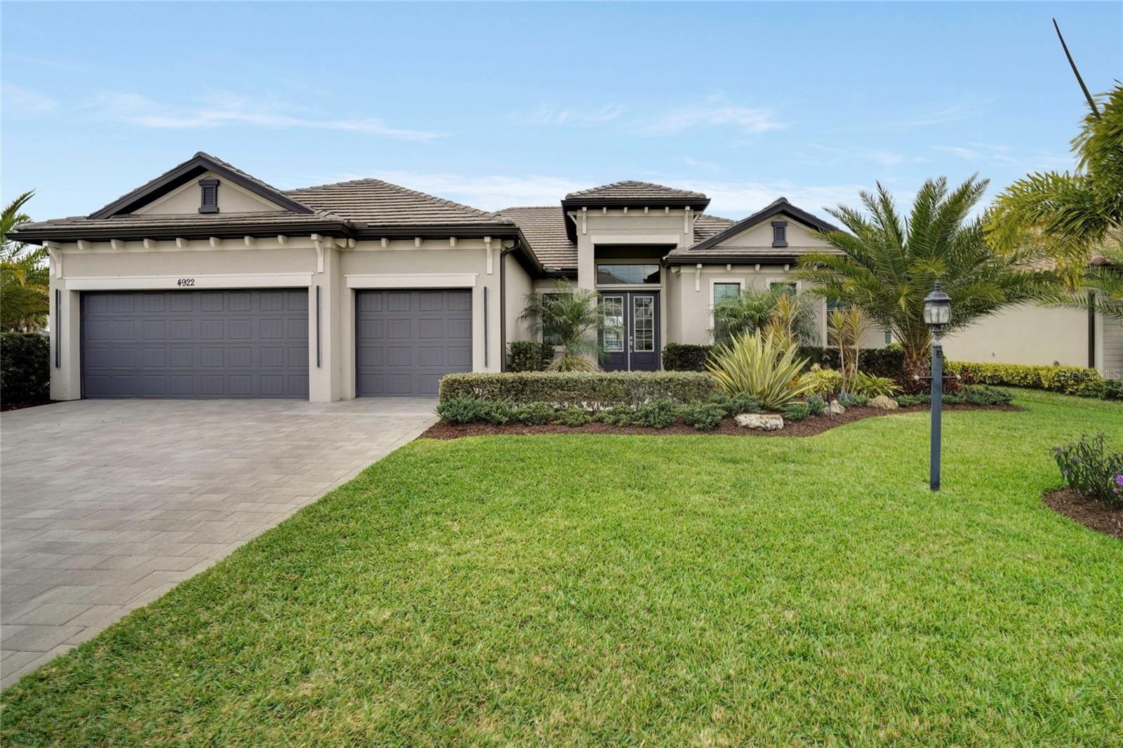 Welcome to 4922 Sparkling Sea Lane, featuring the sought-after Sunset model in Lakewood Ranch’s highly coveted Lorraine Lakes community. This exceptional gated neighborhood offers resort-style amenities that make everyday living feel like a vacation. Built in 2022, this stunning home has already been enhanced with numerous custom upgrades that set it apart. Upon entry, you're greeted by elegant double front doors and a dramatic 12-foot foyer, leading into the impressive open-concept floor plan that makes the Sunset model so desirable. The spacious great room features a tray ceiling with custom crown molding and a striking custom electric fireplace feature wall, creating the perfect space to relax or entertain. The gourmet kitchen is equally impressive, highlighted by a massive quartz island, additional cabinetry, under-cabinet lighting, and a high-end Miele dishwasher. Elegant upgraded lighting and designer ceiling fans throughout the home add both style and sophistication. Some features simply can’t be duplicated—and the spectacular sunset and sparkling water views from the oversized screened-in lanai with pool and spa are truly priceless. With western exposure and unobstructed 160-degree water views, this outdoor space is sure to become a favorite gathering place. The professionally landscaped, fenced corner lot is widely regarded as one of the premier home sites in the entire neighborhood. Pride of ownership is evident in every detail of this meticulously maintained home. Additional highlights include: Porcelain tile throughout, Custom closet shelving, Upgraded cased moldings. 10-foot ceilings throughout the main living areas, Motorized electric roller shades, Private primary suite featuring a luxurious steam shower with dual shower sprayers, SPF sun-control motorized shades on the lanai, 3-car garage with epoxy flooring, Professionally designed tropical landscaping and fenced yard, Outdoor Artisan kitchen grill. Located within Lakewood Ranch, the nation’s #1 multi-generational master-planned community, Lorraine Lakes offers an unmatched lifestyle. HOA benefits include lawn maintenance, irrigation, cable, internet, multiple gated entrances, common areas, and 24-hour guard-gated security. The community’s resort-style town center features incredible amenities including a full-service restaurant, tiki bar, arcade, fitness center, gym, saunas, pickleball, tennis, volleyball, resort pool, lap pool, and splash pad. Lorraine Lakes also offers beautiful walking paths and scenic lakes, including the main lake with a dock where fishing is permitted. Don't delay, schedule your showing today!