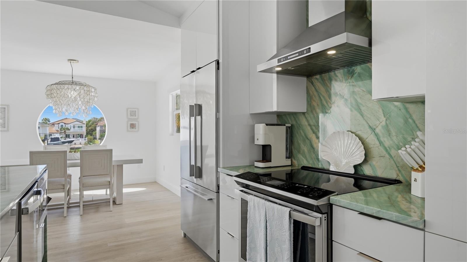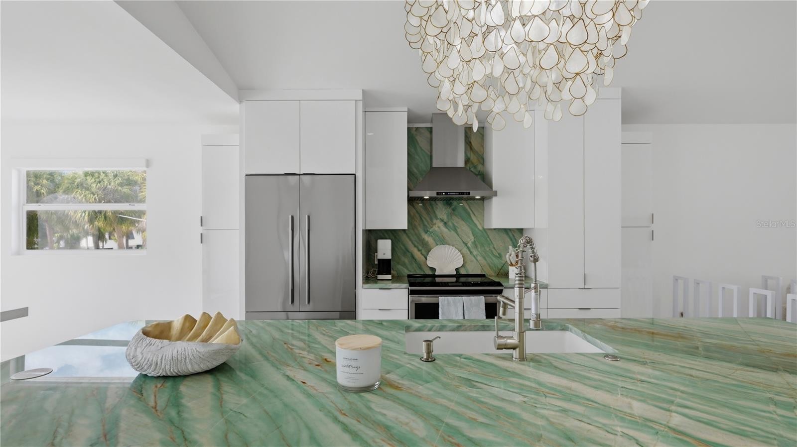 You can bike to the beach from this fully renovated coastal contemporary home in a highly desirable Siesta Key community just minutes from world-famous Siesta Key Beach. Ideal as a primary residence, second home, rental investment, or multigenerational property with private in-law suite. Upstairs offers 2BR/2BA with soaring ceilings, abundant natural light, and open-concept living. Downstairs features a private 1BR/1BA suite with living area, kitchenette, as well as a separate laundry closet—perfect for guests or income potential. Designer finishes throughout, LVT flooring, and a chef’s kitchen with 10’ quartzite waterfall island, custom cabinetry, and premium stainless appliances including Fisher & Paykel refrigerator and GE Profile induction range. The Spacious primary suite with deck/pool access offers a custom walk-in closet and spa-style bath featuring dual vanities, freestanding tub, and separate shower. Updated secondary bath, stacked washer/dryer, and generous storage. Outdoor living shines with Trex-decked patios, oversized screened pool enclosure, travertine pavers, covered lanai, and heated resort-style pool as well as new hot tub. The Custom Siesta Key Mural adds a little fun to the space as well! Fully fenced yard with tropical landscaping for added privacy. Extensive updates include newer roof, electrical, plumbing, AC, pool heater, appliances, Hardie board siding, interior/exterior paint, LED lighting, epoxy-finished garage and paver driveway. Minutes to Siesta Key Village dining, shopping, and beaches. Do not miss your chance to have your Move-in ready coastal retreat -meticulously maintained and designed for effortless Siesta Key living. All measurements are estimates and are approximate. Buyer and/or Buyer agent confirm all info - seller nor agent makes no guarantees