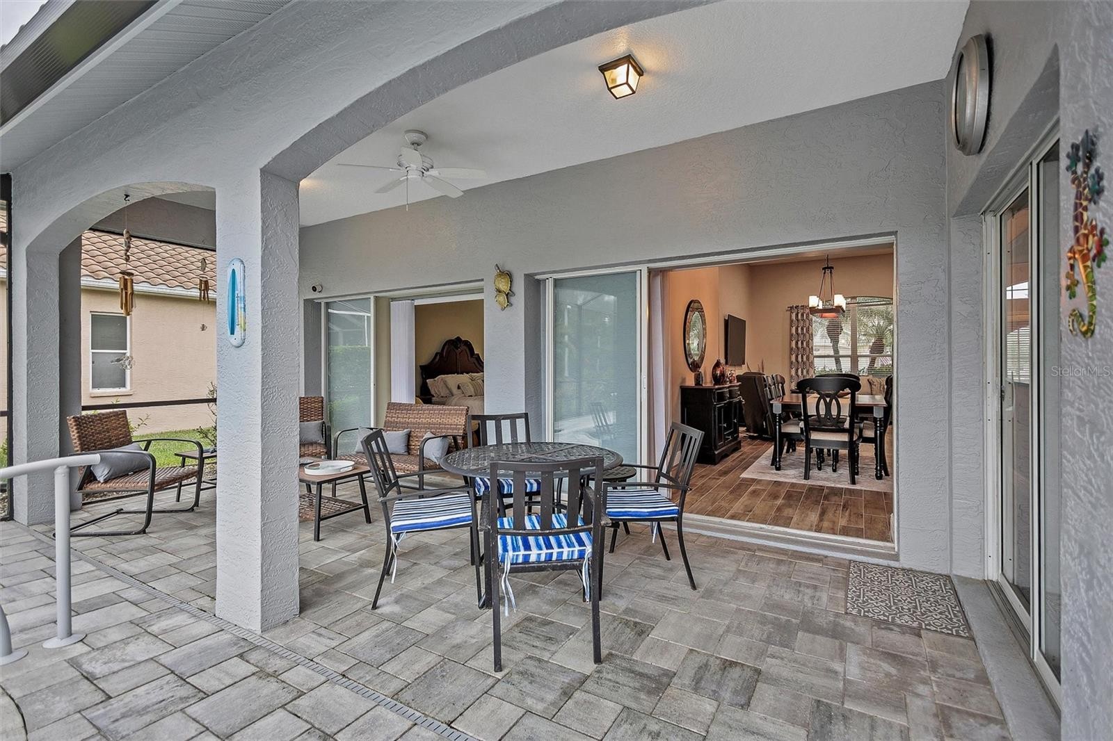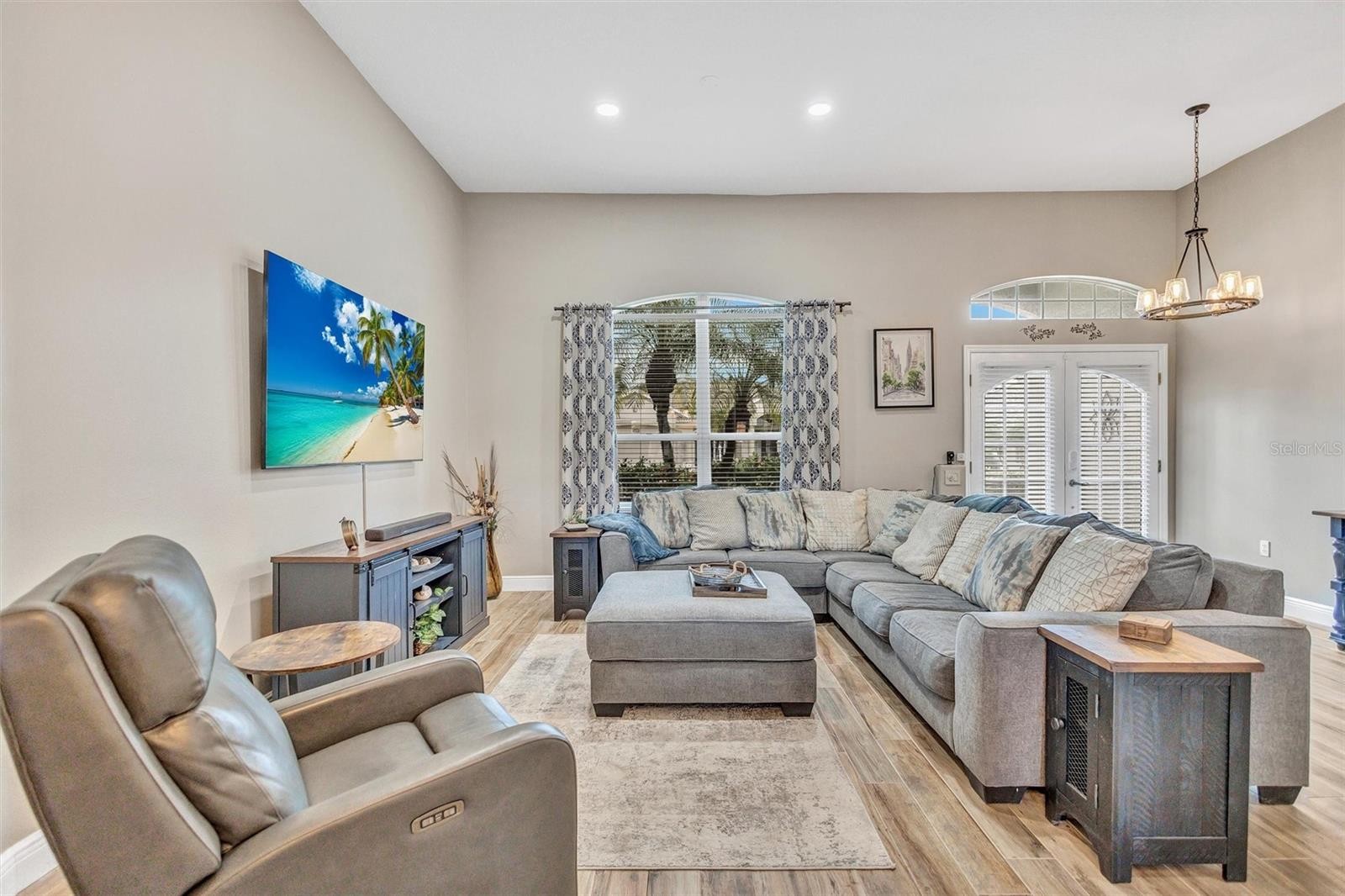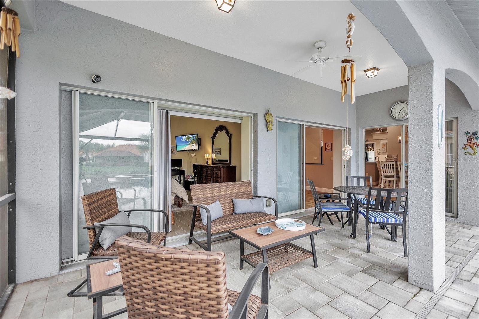 Welcome to 4984 Wild Daisy Lane, an impeccably renovated, fully turnkey-furnished residence offering refined coastal living with tranquil panoramic water views—ideal as a primary home, seasonal retreat, or investment opportunity. Thoughtfully redesigned with an open-concept layout, this home blends timeless finishes with modern functionality and exceptional attention to detail. Major exterior enhancements include a new barrel tile roof (2025), designer paver driveway (2025), fresh exterior paint in a neutral sophisticated palette (2025), and newly installed gutters. The private outdoor retreat features a heated saltwater pool and spa with new Gunite finish, elegant glass tile accents, updated coping and pavers, and a custom heavy-duty bronze panoramic view pool enclosure (2024), complemented by a new state-of-the-art Wi-Fi-enabled pool pump and filter—creating an ideal low-maintenance, resort-style environment. The interior has been transformed to create expansive living and entertaining spaces, featuring wood-plank porcelain tile throughout the main living areas and primary suite (2024), oversized baseboards, curated lighting with over twenty flush-mounted fixtures, updated chandeliers, and a fresh neutral interior color scheme (2025). The kitchen offers soft-close cabinetry, designer backsplash, and premium appliance upgrades (2024), seamlessly connecting to the main living and dining areas—perfect for hosting or short-term occupancy. The updated primary suite showcases a spa-inspired bath with new porcelain flooring, custom-tiled shower, glass partition, granite countertops, upgraded fixtures, and modern lighting. The secondary bath with pool access mirrors the same elevated level of design with new porcelain tile, decorative glass accents, granite countertops, and a glass shower enclosure—ideal for guests or rental convenience. Additional features include a SimpliSafe security system and Nest Wi-Fi thermostat, enhancing ease of ownership and remote management. Ideally located just minutes from the Gulf Coast’s renowned beaches, downtown historic Venice, Wellen Park, Costco and premier shopping, this exceptional property offers seamless indoor-outdoor living, expansive lanai spaces, and peaceful water views—an outstanding opportunity for luxury living, seasonal enjoyment, or investment potential. No CDD fee! See list of updates in attachments. Schedule your private showing today!