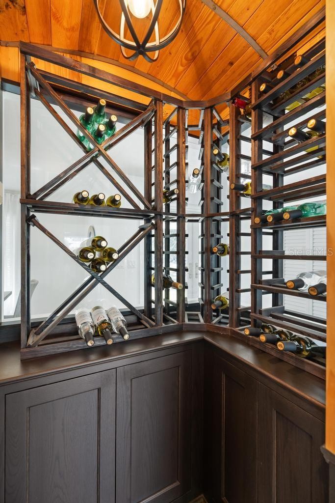 This special, one of a kind home has quick access to Dona Bay and then the beautiful ocean waters of the Gulf. This home is exceptionally elevated at more than 11 feet, keeping it high and dry and solid through storm season with zero flooding over the years. The inviting layout features 3 bedrooms, 3 bathrooms and a heated saltwater pool on a spacious, nearly half-acre lot shaded by stunning mature oaks and fruit trees. Interior highlights include fresh, light and bright paint, rich wood-look plank floors, vaulted ceilings, and a cozy woodburning indoor fireplace. The fully remodeled gourmet kitchen includes gorgeous Quartzite countertops, stainless appliances, solid-wood cabinets, built-in espresso maker, and a charming custom wine room for the wine connoisseur. Views of the relaxing pool deck with an outdoor kitchen from nearly every angle. The primary suite features pool access, custom walk-in closets, and a spa-like ensuite bath with a beautiful Spanish marble soaker tub, dual sinks and tiled shower. The split bedroom floorplan affords privacy and convenience for the second and third bedrooms, and the third bedroom features a private ensuite bathroom and pool access. The full guest bathroom also features pool access. The outdoor oasis includes a caged lanai with a saltwater, heated pool, outdoor kitchen, and a unique custom-built fire pit area. Follow the path to the dock and seawall, and imagine your own boat waiting to take you out for a fun day on the Gulf. Oversized 2-car garage has epoxy floors and upgraded modern storage cabinets with a tool bench. Truly a unique and charming waterfront escape located conveniently near historic downtown Venice, Venice Beach, Nokomis Beach, and Casey Key. Travel a short distance north for all of the amenities of Sarasota, including an exciting downtown district, Siesta Key Beach, performing arts venues, and luxury dining and shopping.