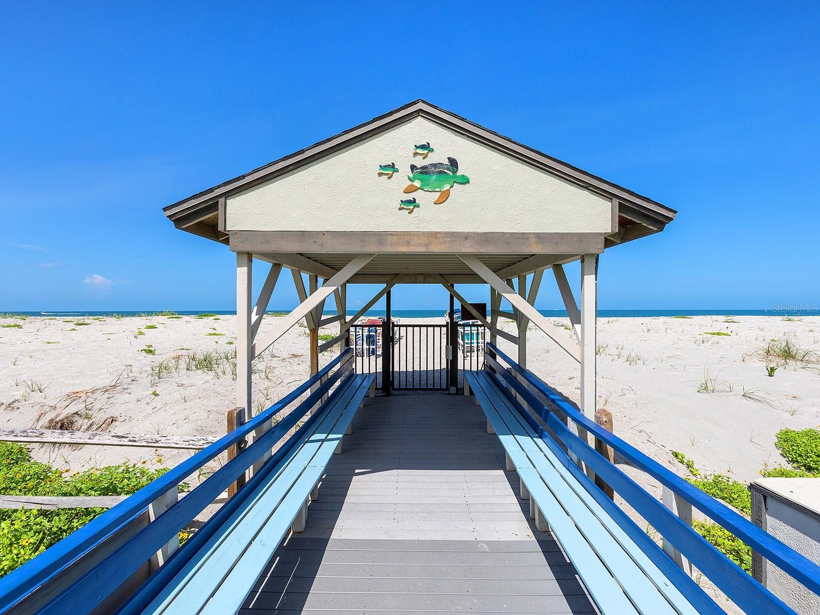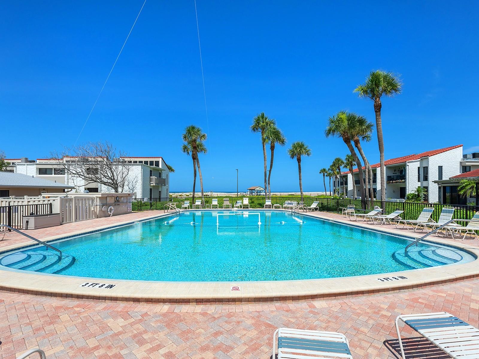 Welcome to The Village by the Sea, Aldea Mar, a charming condo community featuring one of the the largest coastal frontage in Venice, with over 500 feet of private deeded beach access. This is a rare opportunity to own a fully turnkey two bedroom, one and a half bathroom villa. The bright and spacious interior lives like a private residence, with vaulted ceilings and an exposed natural wood look ceiling that brings warmth and character to the space. Aldea Mar offers a relaxing coastal lifestyle, including a large heated swimming pool, a putting green, shuffleboard courts, and a welcoming clubhouse for residents and guests. Owner will transfer short-term rental lease from 01/01/2026 - 2/28/2026. Conveniently located just one mile from the vibrant Venice Historic District, Lake Venice Golf Club, and several scenic island parks, this villa combines comfort with an unbeatable location. Whether you are seeking a full time residence, a seasonal retreat, or an investment opportunity, this home is your chance to join one of the most desirable communities on the Gulf Coast.