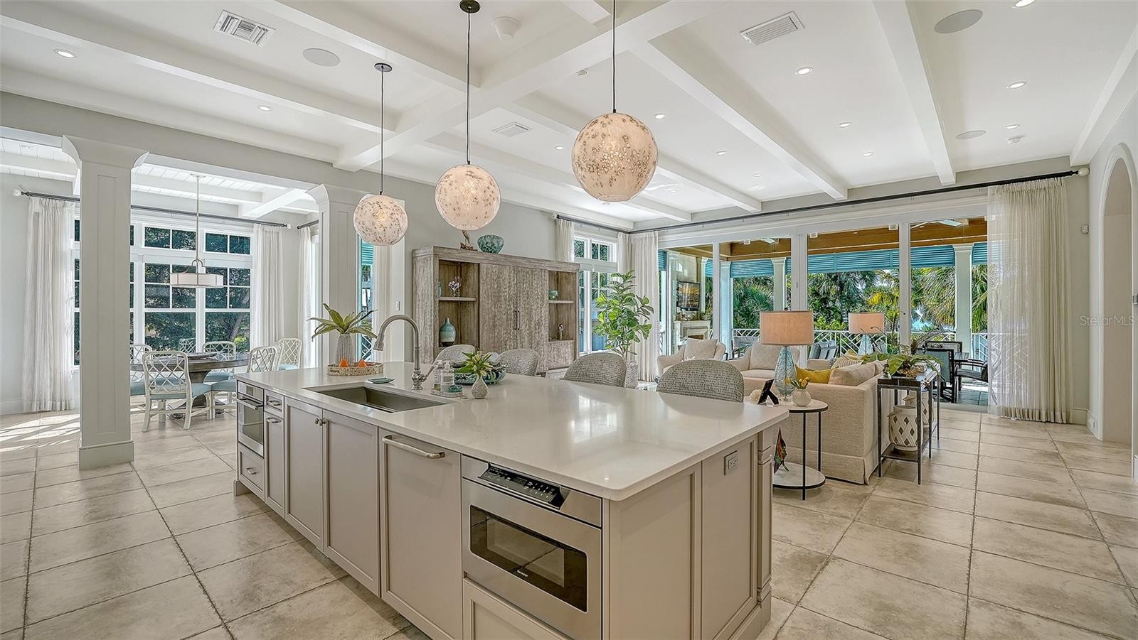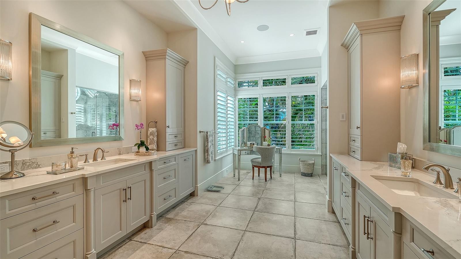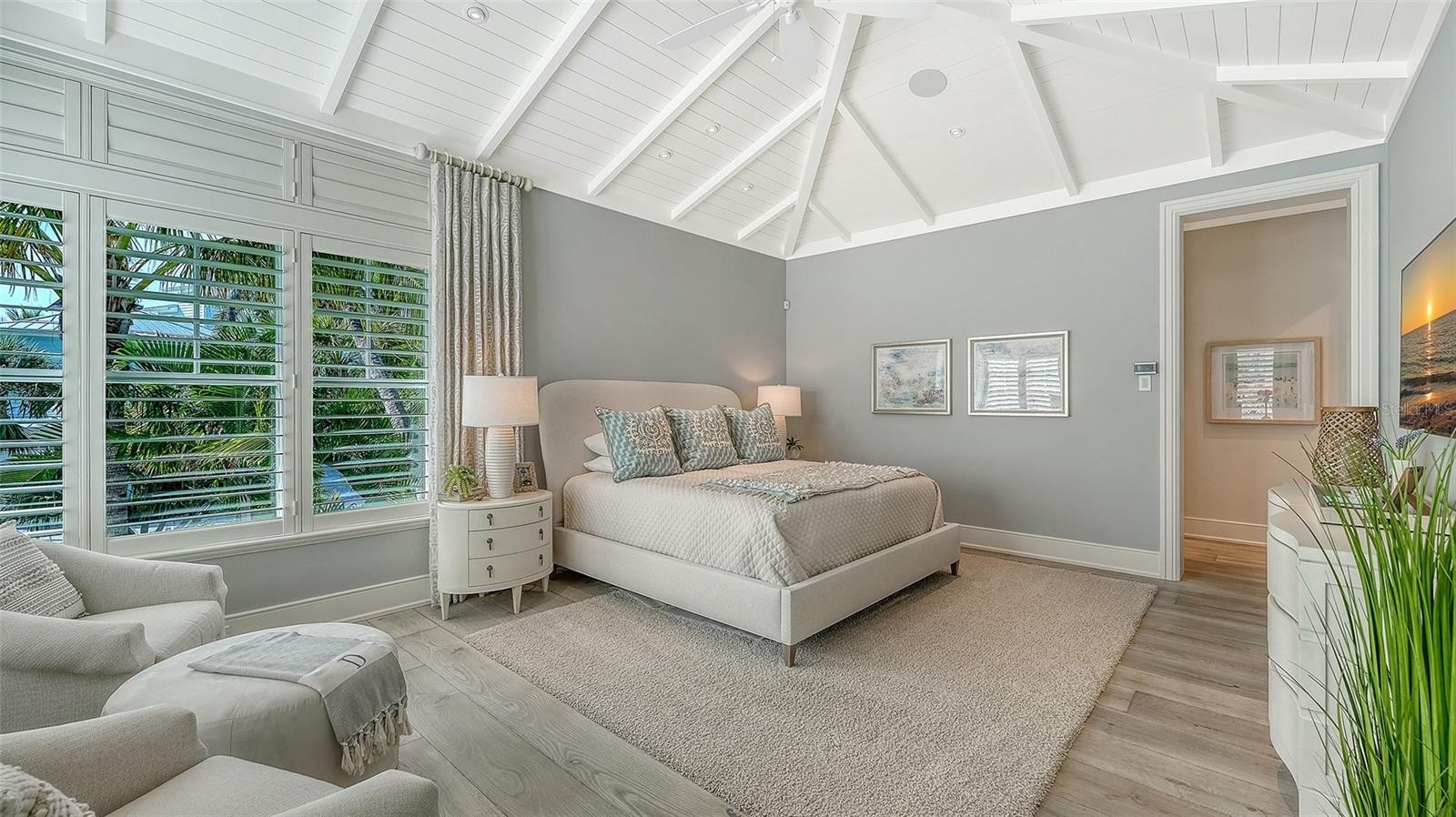Designed by award-winning architect, John Cooney, and built by Sarasota’s premier coastal homebuilder, Perrone Construction, this mid-Key classic is simply among Longboat Key’s finest homes. Steps from the beach and with expansive Gulf and Bay views, this masterpiece offers more than 4300 square feet of refined interiors on the main living floors together with multiple large lanais and balconies. A beautiful foyer, large family room, and home gym are featured on the ground floor, along with an oversized three-car garage and storage room. The quality of the home’s design and construction are matched by the charm of the interior finishes and amenities. The living areas incorporate beautiful ceiling elevations, along with custom wide-plank hardwood, Italian porcelain tile, and custom plantation shutters and drapes. The Great Room flows into the chef’s kitchen which features custom cabinetry, quartz countertops, Wolf and SubZero appliances, and a temperature-controlled 275 bottle wine room. Designed for easy entertaining, the Great Room opens onto a large lanai with its gas fireplace and grill, and gorgeous Gulf and sunset views. Adjoining the kitchen is a perfect dining room with its own balcony and Gulf views, as well as a large family office/bonus room with custom cabinetry and bookshelves. The Lutron system controls both the lighting and the custom drapes and shades. The home’s elegant chandeliers and sconces bathe its interior with gracious warmth. The beautiful master suite on the main floor includes a bedroom cathedral ceiling and access to the outdoor lanai. The master bath features custom cabinetry, porcelain tile, a large steam shower, and is plumbed for a master bathtub. Three spacious guest suites, a gathering lounge, and balconies with Gulf views are found on the second living floor. A private elevator connects all levels. Both the home and exterior grounds are designed for year-round, low-maintenance living. An extensive landscape refresh in 2023 included new turf and lighting, an outdoor shower, and a great fire pit area for entertaining. Lush landscaping and a tranquil pool setting provide both screening and privacy. The home features remote controlled screening and storm shutters, extensive use of Azek composite, and other low-maintenance materials, along with a gas generator, whole-house water filtration system, central vacuum, and much more. With miles of pristine beach and bay to explore and with the abundant cultural, dining, and shopping amenities of Sarasota, St. Armand’s Circle, and Anna Maria Island nearby, this timeless home delivers the very best of Longboat Key living.