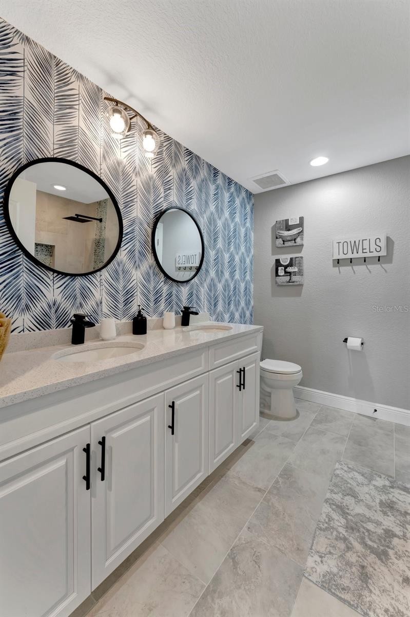Watch nightly sunsets at this beautifully renovated and fully furnished condo in The Palms at Riviera Dunes. This pet-friendly, spacious 3-bedroom plus den, 2-bath corner unit is filled with natural light thanks to numerous hurricane-impact windows and offers stunning, picturesque water views throughout. From the moment you walk through the elegant entryway, you’ll notice the wide plank oak flooring and eye-catching chandelier that set the tone for the sophisticated interior. The chef’s kitchen is a true showstopper, featuring rich wood cabinetry, bronze hardware and faucet, high-end LG appliances, and expansive quartz countertops designed for both everyday living and entertaining. The open dining and living areas flow effortlessly and offer warm, welcoming spaces perfect for hosting or enjoying quiet evenings with loved ones. The primary bedroom is a serene retreat with breathtaking water views. The upgraded ensuite bath feels like a private spa, complete with double sinks, a luxurious soaking tub, a large walk-in shower with dual showerheads, and an oversized walk-in closet with custom built-ins that elevate your everyday routine. The versatile den can be transformed into a home office, gym, game room, or media room, while the two additional bedrooms and second bath offer flexibility for guests or hobbies. The laundry room is thoughtfully designed with blue upper and lower wood cabinetry, a utility sink, and a butcher block countertop for folding and storage. Step out onto the lanai and take in the peaceful water views—an ideal space for sipping your morning coffee or hosting gatherings at sunset. This home includes one assigned covered parking space in the garage, extra storage, access to a well-equipped gym, and a sparkling community pool. HOA fees include everything except electricity, making this condo a perfect blend of luxury, comfort, and convenience.