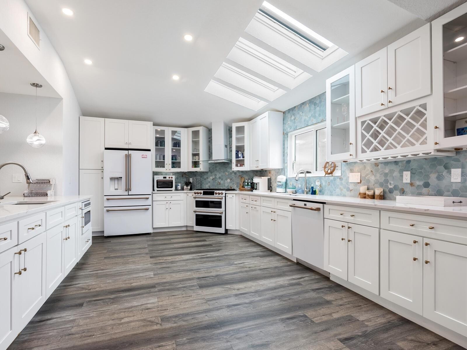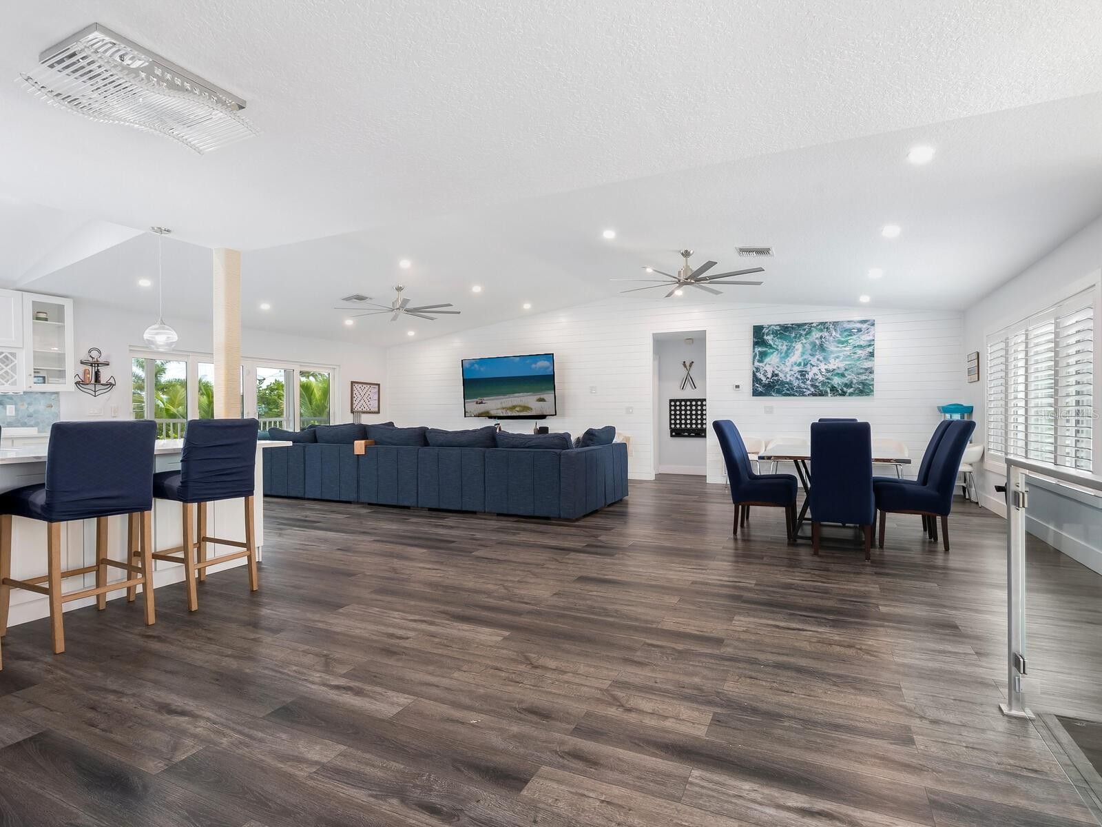 In the tranquil north end of Longboat Key, where Gulf breezes drift through the palms and the pace slows to a whisper, this extraordinary beach retreat captures the essence of refined coastal living. Positioned on nearly half an acre of canal front property and encompassing over 3,000 square feet of interior living space (more than 6,000 square feet total), the residence sits just across from the ultra convenient public beach access. This unique residence offers the rare luxury of both boating and beachside lifestyles in one remarkable setting. Recently transformed through a stunning renovation and offered turnkey furnished, the five bedroom, three bath waterfront home showcases long, picturesque canal views and an effortless indoor outdoor flow. A NEW ROOF in 2023 and new impact windows were installed in 2022 provide peace of mind. Vaulted ceilings and light-filled spaces that feel both expansive and inviting. At the heart of the home, the chef’s kitchen blends timeless style with modern performance, featuring classic shaker cabinetry, gleaming white quartz countertops, high-end white Café appliances, and generous island seating ideal for gathering. The primary suite is a private sanctuary of nearly 700 square feet, complete with dual walk-in closets and a spa-inspired bath designed for indulgence, including a dramatic double soaking tub with jets, fireplace and TV, a Moen technology-enhanced shower, and electronic Woodbridge toilets that elevate daily living with comfort and innovation. Each of the guest bedrooms offer sizeable walk in closets. Step from the screened lanai off the living room down to a resort-caliber outdoor environment that rivals the finest destinations, where a heated pool and spa anchor the space alongside a putting green, waterfront fire pit, game area, and a beautifully pavered outdoor kitchen designed for effortless entertaining. For boating enthusiasts, the property is exceptionally equipped with a 10,000-pound boat lift and a second dock for added enjoyment. Substantial non-conforming enhanced storage beneath the home and a spacious three-car garage provide versatility without compromising luxury, making this a rare waterfront compound where mornings begin at the beach, afternoons unfold on the water, and evenings are spent poolside under the stars. Located a short distance to the Bridge Street Pier which offers ample dining, shopping and entertainment options, this residence truly is the ultimate beach getaway.