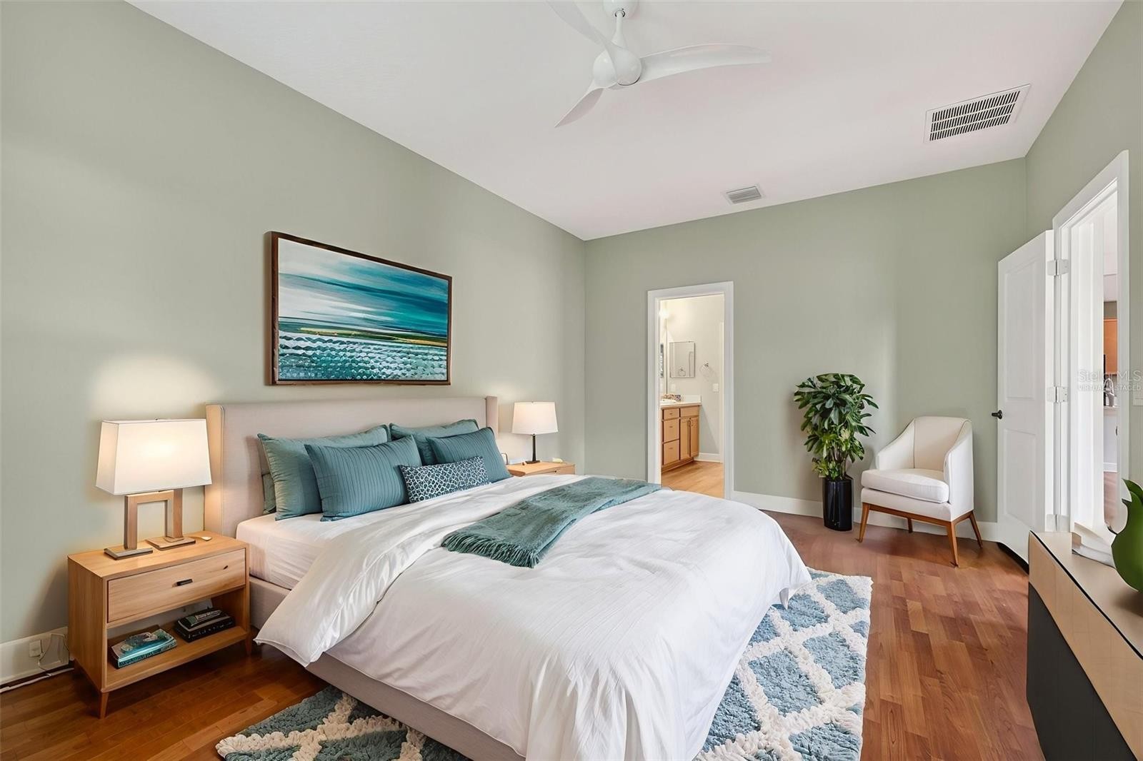 One or more photo(s) has been virtually staged. PRICED TO SELL, MUST SELL NOW. Roma Floor Plan Villa in Sought-After Esplanade Golf and Country Club in Lakewood Ranch! Welcome to luxury, low-maintenance living in one of Lakewood Ranch’s most desirable gated communities—Esplanade Golf & Country Club! This stylish 2-bedroom, 2-bath Roma floor plan villa includes a dedicated office space and is ideally located just a short walk to the golf course (pay-to-play), Culinary Center, tiki bar, resort-style pools, and dog parks. Step inside to find luxury vinyl plank flooring in main living areas, laminate in the bedrooms and office, crown molding, ceiling fans, and plantation shutters throughout, phantom screen door. The open-concept kitchen features quartz countertops, Blanco granite sink, counter-height bar, and upgraded cabinetry—perfect for entertaining. The ensuite primary bedroom offers a spacious walk-in closet, dual vanities, and a large walk-in shower. A pocket door provides added privacy for guests in the secondary bedroom and bath. The flexible office space, complete with built-in cabinets and pocket doors, makes working from home a breeze. A laundry room with upper cabinets adds extra storage convenience. Enjoy the outdoors from your extended screened lanai with retractable awning, surrounded by lush landscaping. Additional upgrades include a HALO whole-home water filtration system, full gutters, and custom finishes throughout. Live the Esplanade lifestyle—bundled golf, two resort pools, hot tubs, resistance pool, pickleball, tennis, bocce ball, two fitness centers, exercise classes, two dog parks, a playground, fire pit, spa/salon, and on-site lifestyle director offering year-round events, clubs, and social gatherings. Dine at the exclusive Culinary Center’s Barrel House or join in wine tastings and special events. All this in the heart of Lakewood Ranch, just minutes to I-75, UTC Mall, Main Street, golf, parks, hospitals, and the pristine beaches of Sarasota and the Gulf Coast.