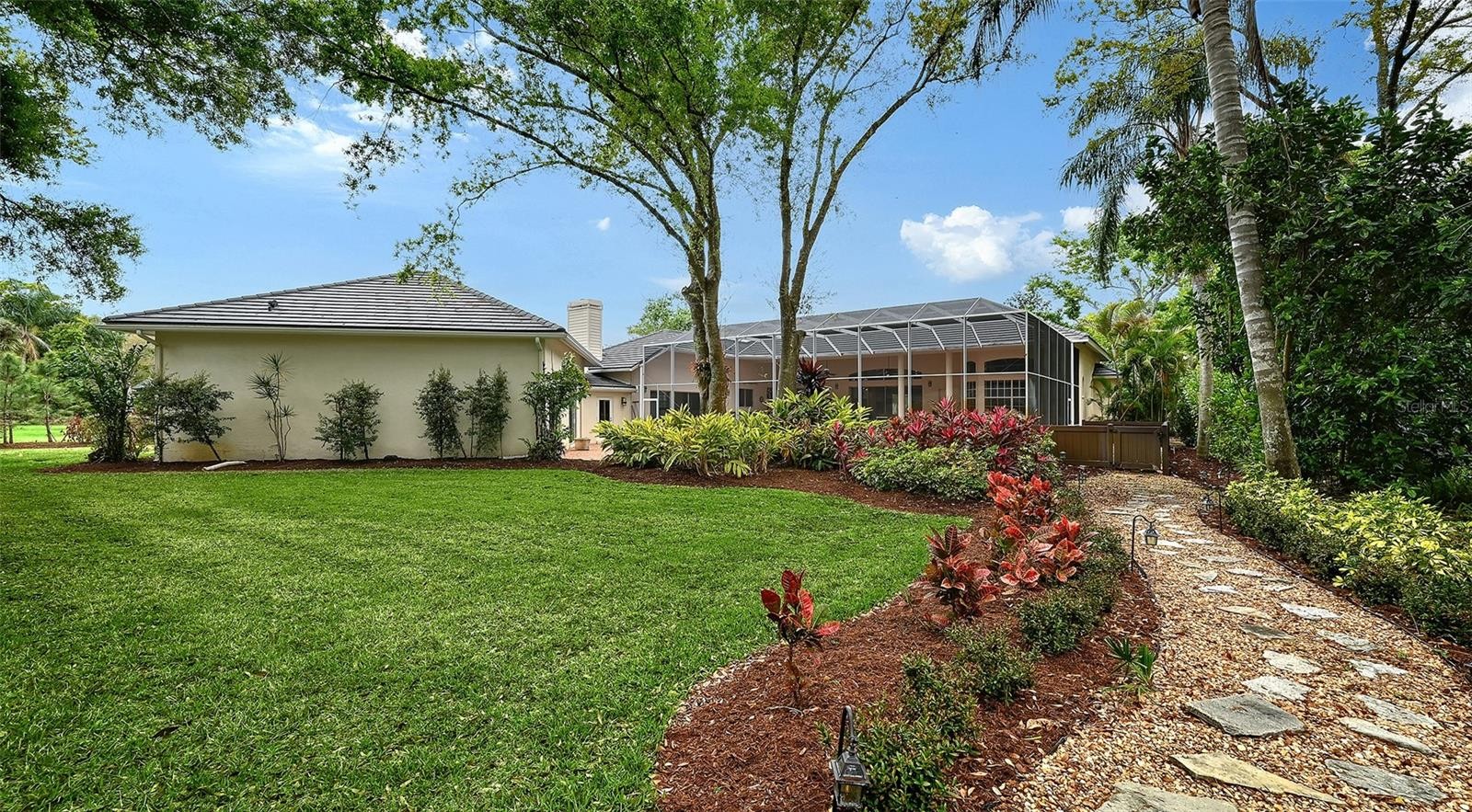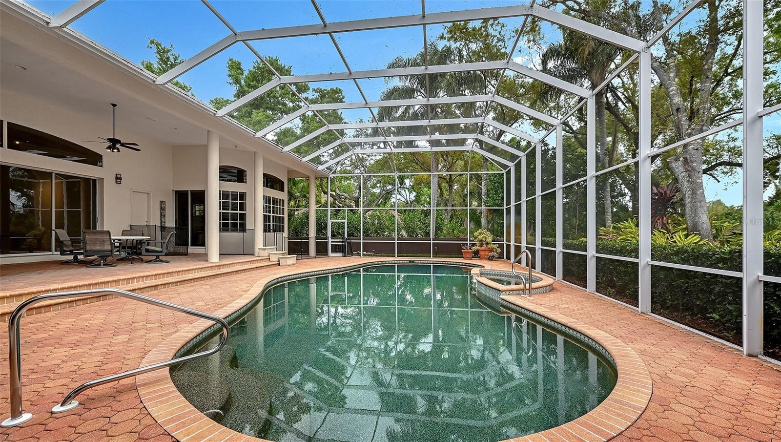 Nestled amongst stately trees you will discover the coveted community of Ashley. Privacy galore and estate sized homes where each are individually designed to offer sophistication without being overstated. This expansive 4 Bedroom, 2.5 Bath (with addition totaling 6 Bedrooms, 4.5 Baths), offers 5154 sq ft and sits on nearly an acre, creating a true private mini estate. Set back from the road, the home features a long paver driveway and lush landscape that enhance its grand curb appeal. Inviting leaded doors open to an enormous living room with volume ceilings, quadruple sliders overlooking the patio and pool area, seamlessly blending indoor and outdoor living. The formal dining room is elevated by a stunning Murano glass chandelier, and throughout the home you will appreciate the sellers’ collaboration with interior designer Anne Folsom Smith, reflected in the thoughtful details and refined finishes. The heart of the home is the well-appointed kitchen, featuring a center island with sink and instant hot water, extensive stone countertops, island cooktop, stainless appliances including double oven, warming drawer and Sub-Zero refrigerator, along with designer cabinetry. An adjoining built-in breakfast nook easily accommodates gatherings of any size. Just steps away, the family room offers a warm and inviting space with propane gas fireplace and custom designer built-ins – perfect for everyday living and entertaining. The primary suite is a true retreat and a statement in design, featuring an oversized jetted tub, custom multi-head shower, instant hot water system, dual vanities, and 2 walk-in closets. All secondary bedrooms are generous in size, including the fourth bedroom, which is currently utilized as a den/office with custom built-ins, offering flexibility to suit your needs. Enhancing the home’s versatility is a newer addition featuring a 2-bedroom, 2 bath suite complete with kitchenette and its own washer/dryer. This unique space offers two separate entrances – double doors off the family room that allow it to function as a seamless extension of the living area, as well as a private exterior entrance for added independence and privacy – ideal for multigenerational living, guests, or flexible lifestyle needs. Impact windows on the addition add to this special area. The enclosed pool area provides a serene outdoor escape with a shaded seating area and oversized lanai, perfect for year-round enjoyment. Additional features include a whole house water filter and softener system, central vacuum, 4 HVAC systems (including garage), irrigation system with new tank, electric pool heater, propane generator, 3 garbage disposals, 2 dishwashers, and a new roof installed in 2020. Conveniently located near shopping, dining options, I-75, A-rated schools, golf, and Gulf beaches, this exceptional property is a rare opportunity offering space, privacy, and flexibility in a highly desirable setting.