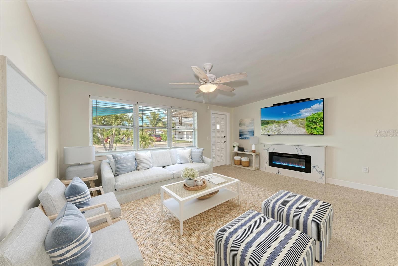 One or more photo(s) has been virtually staged. Reduced, ACT FAST! Three-bedroom Anna Maria Island beach home, 300 steps to the island's world class beaches! This Holmes Beach retreat, located on Anna Maria Island, is ready and waiting for you! Discover this fully updated, bright and airy split plan, three-bedroom home spanning over 1,100 square feet, thoughtfully designed with open living space combining the kitchen and living room areas. Located on a quiet cul-de-sac, this home sits right in the Island’s sweet spot between the Cortez and Manatee Bridges, providing easy access on and off the island. You’re just a short walk or golf cart ride away from white sandy beaches, restaurants, shops, and a convenient free trolley stop. You will see all properties were not created equal as you step into your own tropical, completely private backyard oasis complete with screened in lanai, wet bar and highly sought after southern exposure. Bask in the sun, don't sit in the cold shadows with a subpar exposure. Enjoy a beautiful, heated saltwater pool equipped with sprayers, fountains, and a sun platform for ultimate relaxation. A multilevel waterfall pond adds to the tranquil atmosphere, featuring a charming bridge that leads you over the pond directly to the gorgeous pool area. The expansive 9,000-square-foot lot is enhanced by landscaping stones, providing ease of maintenance. The home features a metal roof and impact windows for peace of mind. It boasts 2025 appliances, including a washer and dryer, along with all-new cabinetry and quartz countertops in both the kitchen and master bath. Fresh paint and 5-inch base molding through-out complete the modern look and feel. This property is offered turnkey furnished and is rental ready for monthly stays. RV and boat parking allowed! There is nothing to do here but relax and enjoy your surroundings: take a dip in the pool, stroll to the beach, indulge in the varied dining options this island has to offer, from tiki bars to fine dining. Enjoy the manatees and dolphins playing in the canal across the street and parrots flying overhead! Immerse yourself in all the serenity and joys this beautiful island has to offer. Whether you’re seeking relaxation or adventure, this home provides the perfect base for enjoying Anna Maria Island’s unique charm and vibrant lifestyle. All NEW in 2025, Washer, Dryer, Refrigerator, Range, Dishwasher, Microwave, High Velocity Range Hood, Pool Heater, Pool Pump, Water Heater, Kitchen Cabinets and Quartz Countertops, Master Bath Cabinets and Quartz Countertop, Guest Bathroom with New Vanity and Top, All Furniture and Bedding. Impact Windows installed 2021 and 2022, Metal Roof installed 2018.