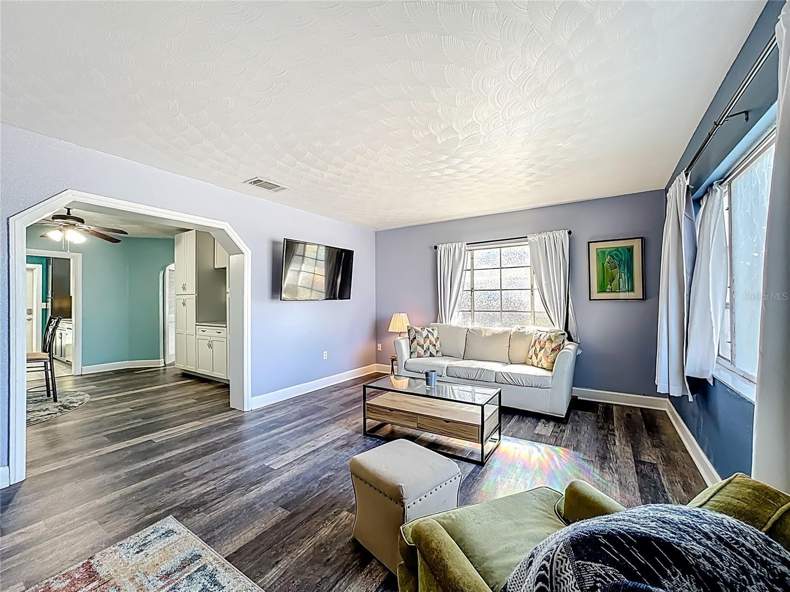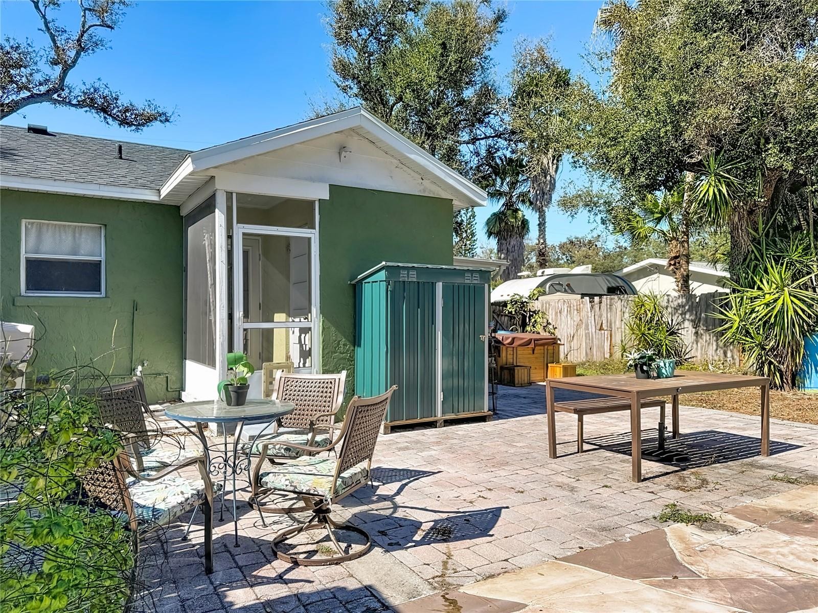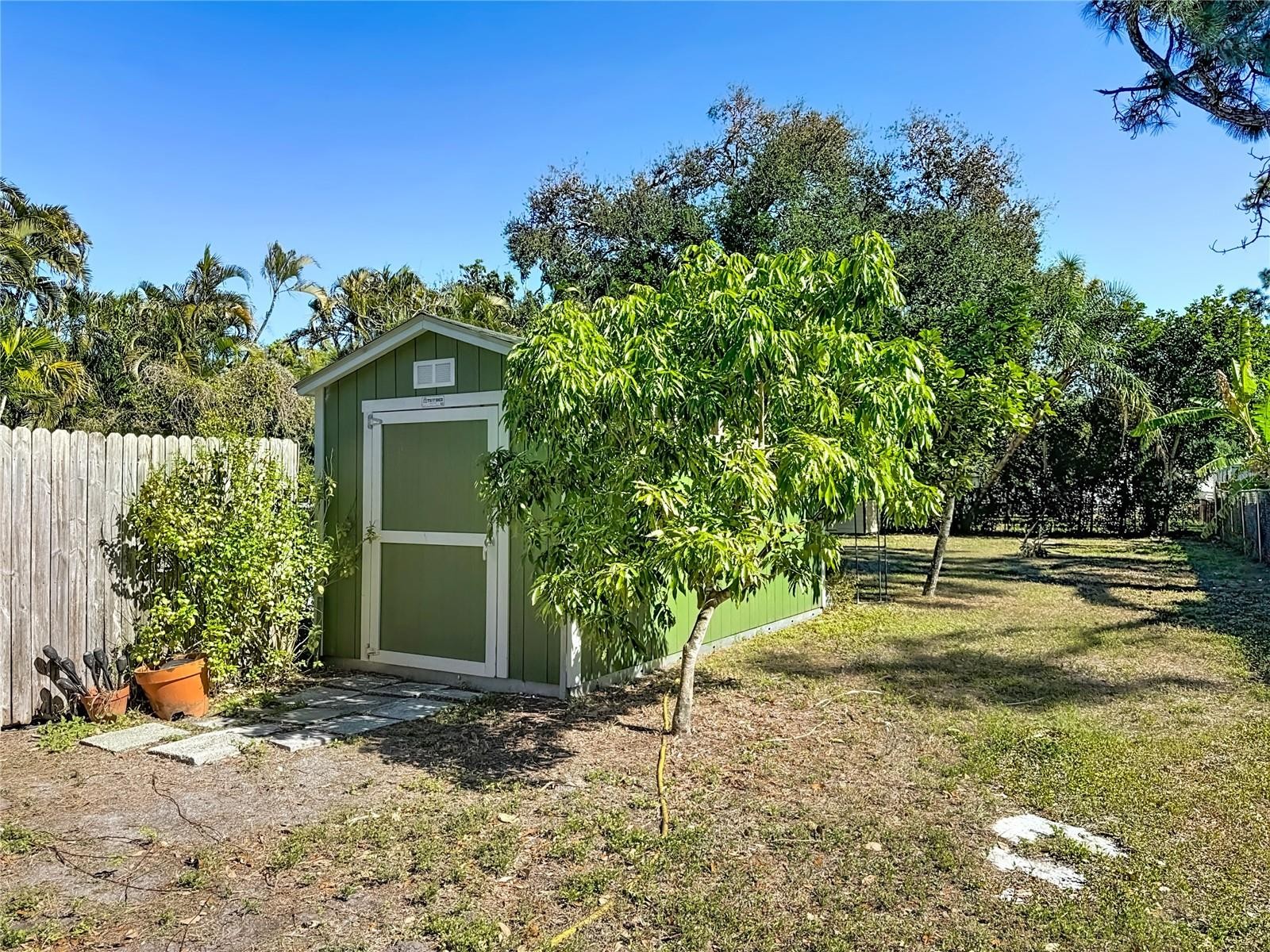 Seller relocation requires a quick sale. Loaded with old Florida charm and packed with personality (including arched openings), yet thoughtfully updated and cleverly designed with all the modern perks, including the ever-popular luxury vinyl plank flooring and split floorplan design. This bright and cozy home, nestled in the Palmetto Historic District with its oak-canopied streets, makes the most of every square foot while delivering an unexpectedly expansive and inviting feel. The recently updated kitchen features rich granite countertops, shaker-style cabinetry with soft-closing doors and drawers, stainless steel appliances, a farmhouse sink, a stunning tile backsplash, and a layout that keeps everything within easy reach. The bathroom has also been recently remodelled, and the spacious 16x14 primary suite offers a private retreat with a ‘work-from-home niche’, a massive 9x4 walk-in closet, and convenient access to the backyard…your own private getaway. A sparkling, recently resurfaced 30x17 in-ground saltwater fun pool surrounded by stamped concrete decking sits at the center of the fully fenced backyard (the whole lot is 179 feet deep), which is perfect for pets and little ones and ideal for hosting unforgettable gatherings. Over 675 sf of paver patios, lush tropical landscaping, and numerous fruit trees create an inviting outdoor oasis that delivers the Florida lifestyle everyone craves—sunny, private, and wonderfully low-maintenance. Best of all, you can relax and enjoy it thanks to the peace of mind that comes from fresh paint in and out, a new water-softening system in 2021, a new roof in 2021, new soffits in 2025, termite tenting in 2021 with a transferable warranty(solely as a preventative measure), and no storm damage. Welcome to worry-free living. Here you can live how you want with FREEDOM AND FLEXIBILITY! Since there are NO DEED RESTRICTIONS and plenty of room, parking your boat or RV on the property is no problem, saving you tons on storage fees. In fact, storage is a standout feature here. From the massive primary suite closet, multiple pantries, coffee bar banquette, linen closet, laundry/storage area, and FOUR outdoor sheds, you’ll never run out of room for tools, toys, hobbies, or seasonal décor. One of the sheds is a 16x8 Tuff Shed—the kind they make tiny homes out of. Here you can enjoy all West Palmetto has to offer, including multiple boat ramps just minutes away, walking distance to the Regatta Point Marina and its multitude of restaurants and shops (as well many others nearby), spectacular sunsets/trails/kayaking at Emerson Point Preserve and its 365-acre preserve, plus quick and easy access to Downtown Bradenton, St Petersburg, and spectacular gulf beaches. Move-in ready. Warm and welcoming. Come see why updated homes in this area at this price don’t last long. Your ‘Palmetto Paradise’ is waiting.