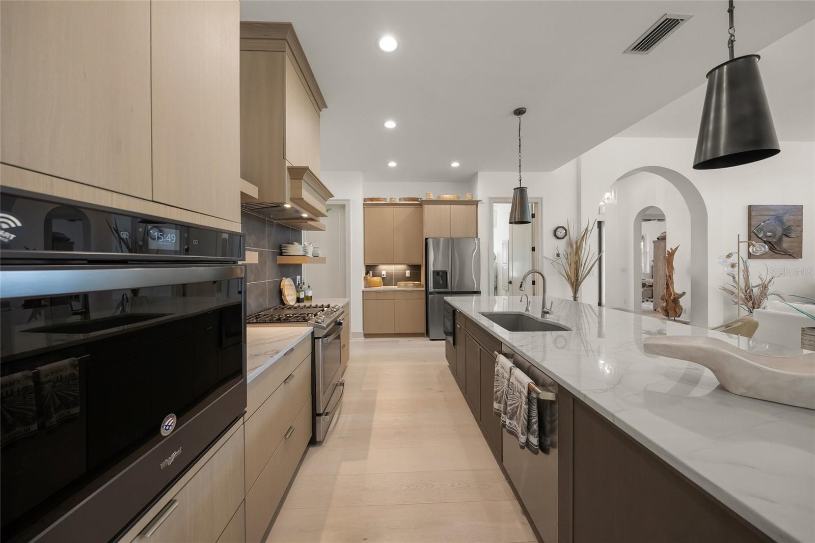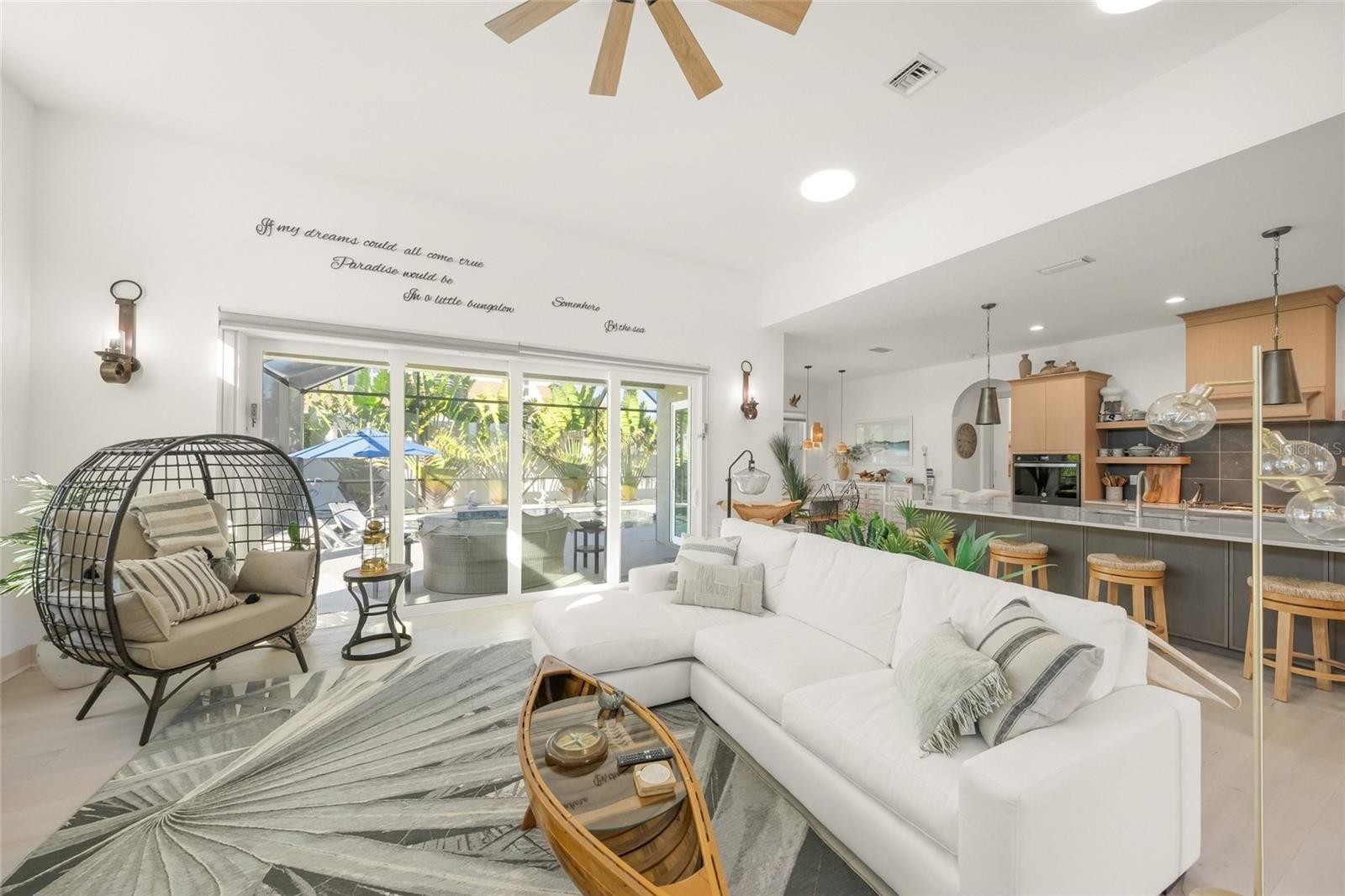 LUXURY CUSTOM BUILT HOME ON VENICE ISLAND. Welcome to Gulf Street near the Gulf! Explore this stunning 3-bedroom, 4-bathroom (plus office and loft) home, situated on the highly sought-after Island of Venice. Custom-built by Caithness Construction in 2024, this 2,800 sq ft coastal residence boasts impeccable craftsmanship and thoughtful design, offering a perfect blend of sophistication and functionality. Located close to the pristine Venice Beaches and charming Venice Main Street, this property lets you fully embrace the relaxed Florida Gulf Coast lifestyle. Designed for durability and security, this quality-built home includes a solid concrete tie-beam around the entire house and larger 2x6 roof trusses. The home also includes all impact-resistant insulated windows and sliders, insulated garage doors and spray foam insulation for enhanced energy efficiency throughout. It is also above current flood elevation requirements, offering peace of mind for years to come. Inside, you'll find wide-plank whitewashed engineered hardwood flooring on the first level, solid stone countertops, custom cabinetry and shelving, 8-foot solid core doors with modern casings, and 6-inch baseboard trim throughout. Every detail has been carefully considered to create a luxurious, inviting atmosphere. The light-filled, open-concept floorplan includes an expansive Great Room, Kitchen, and Dining area that seamlessly flow into the outdoor lanai and pool area, providing the ultimate indoor-outdoor living experience. The gourmet kitchen is outfitted with a GE gas range, convection wall oven, microwave drawer, and an LG side-by-side refrigerator. The 11-foot kitchen island is perfect for entertaining, featuring an instant hot Insinkerator, wine fridge, and extra storage. A walk-in pantry adds even more convenience and is equipped with additional electrical outlets for small appliances. The luxurious Primary Suite opens directly to the private pool and lanai, offering a seamless transition between indoor and outdoor living. It includes dual custom walk-in closets and an ensuite bathroom with a walk-in shower, large bench, and dual sinks—providing the ultimate in comfort and privacy. The second level features two additional bedrooms, each with its own ensuite or dedicated bathrooms. A loft area provides a perfect space for an additional office or a relaxing retreat for family and guests. This home is also equipped with a whole-house water loop for a water softener system and a recirculating hot water system that delivers immediate hot water to the kitchen and primary suite, adding an extra layer of convenience. The screened outdoor living area includes a private lanai with tongue-and-groove ceiling and Travertine Tile. The inviting saltwater pool features a pebble tec finish, sun shelf, and waterfall fountain—offering the perfect setting for relaxation and entertainment. The two-car garage features a Clopay insulated impact door, epoxy flooring, an EV charging station, and a storage closet. The exterior includes an irrigation system and low-maintenance landscaping, ensuring your property remains pristine with minimal upkeep. This exceptional home offers the finest in modern luxury living, all within easy access to the Venice Island lifestyle. Just a short distance away, you’ll find Venice Beach, boutique shops and restaurants on Venice Main Street, the Venice Theater, Venice Performing Arts Center, the Farmer’s Market, and the Freedom Boat Club.