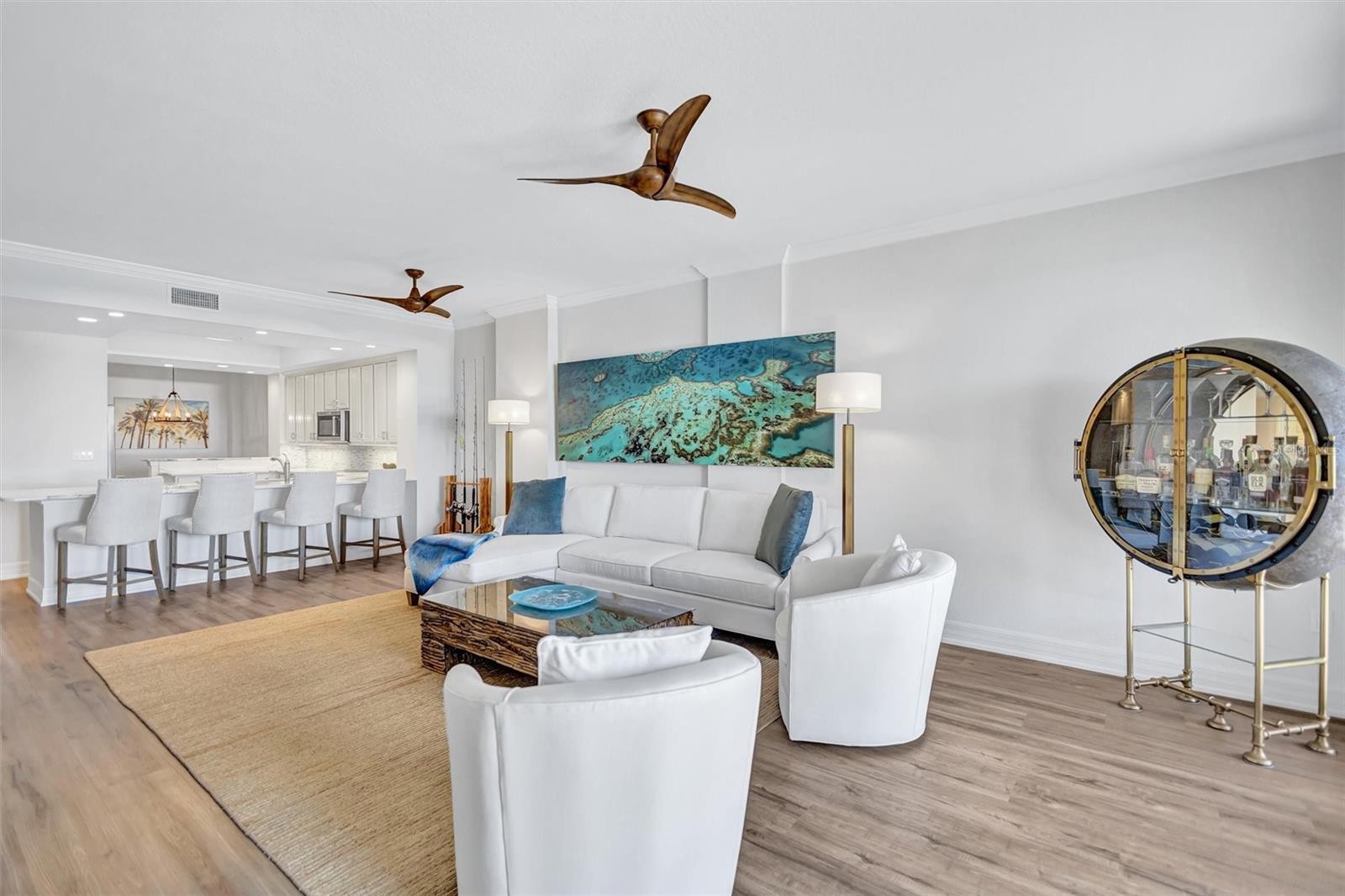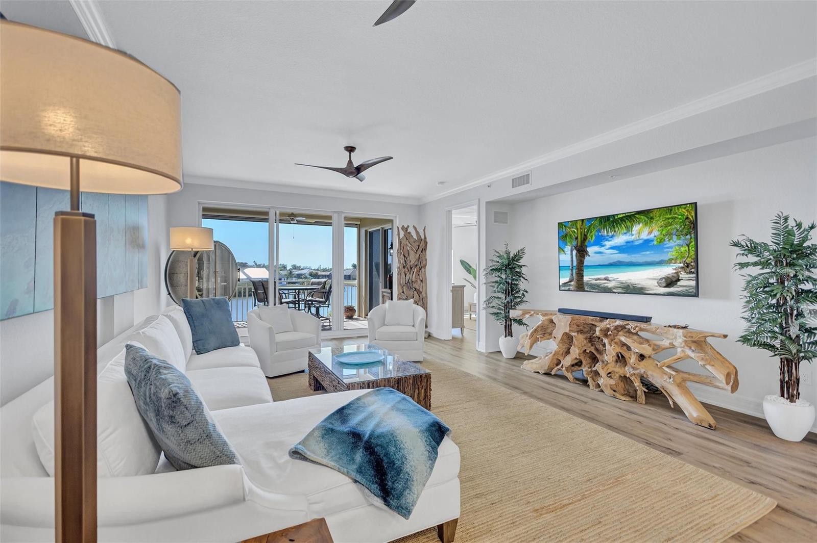 Experience effortless coastal living in this stunning third-floor FURNISHED waterfront residence, perfectly positioned for boaters and kayakers in protected waters just off Blackburn Bay and minutes from the Intracoastal Waterway and Gulf. Watch dolphins, manatees, otters, and breathtaking sunsets from your private balcony. Your water views continue inside, flowing through the living room, dining area, kitchen, and primary suite. This spacious, designer-furnished home showcases quartz surfaces, tile and luxury vinyl flooring, a primary suite with balcony access, oversized shower, jacuzzi tub, and three closets. This unit includes a beautifully appointed second bedroom and a versatile den that is currently used as a 3rd bedroom. There is ample storage inside and out- including a first-floor storage unit ideal for all your water toys. Use the community kayak launch for access to Blackburn Harbor and Oscar Scherer State Park. Enjoy the rare opportunity to keep your boat in your backyard with dockage currently available. Your home is set within an 11-acre gated community featuring walking trails, tennis and pickleball courts, a resort-style pool, waterside grill, clubhouse, and fitness center, all just minutes from Nokomis Beach, the Legacy Trail, and vibrant dining and shopping—this is truly the ultimate Florida waterfront lifestyle you’ve been waiting for.