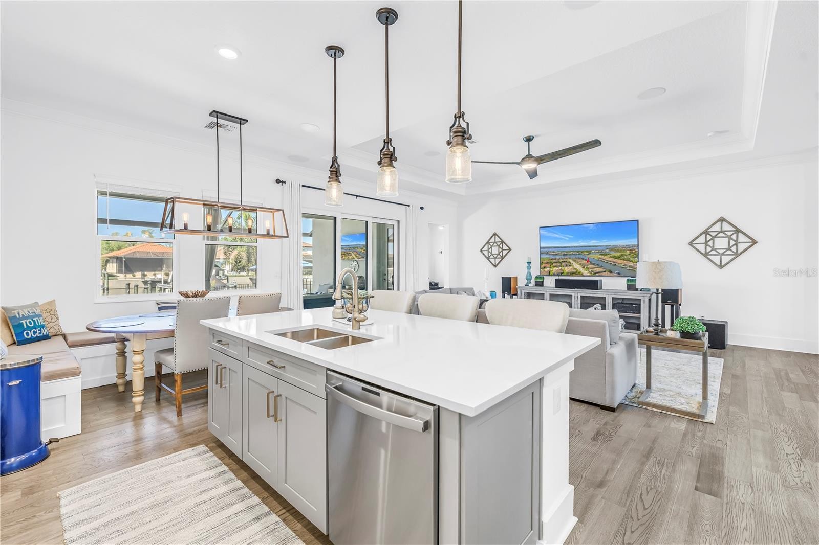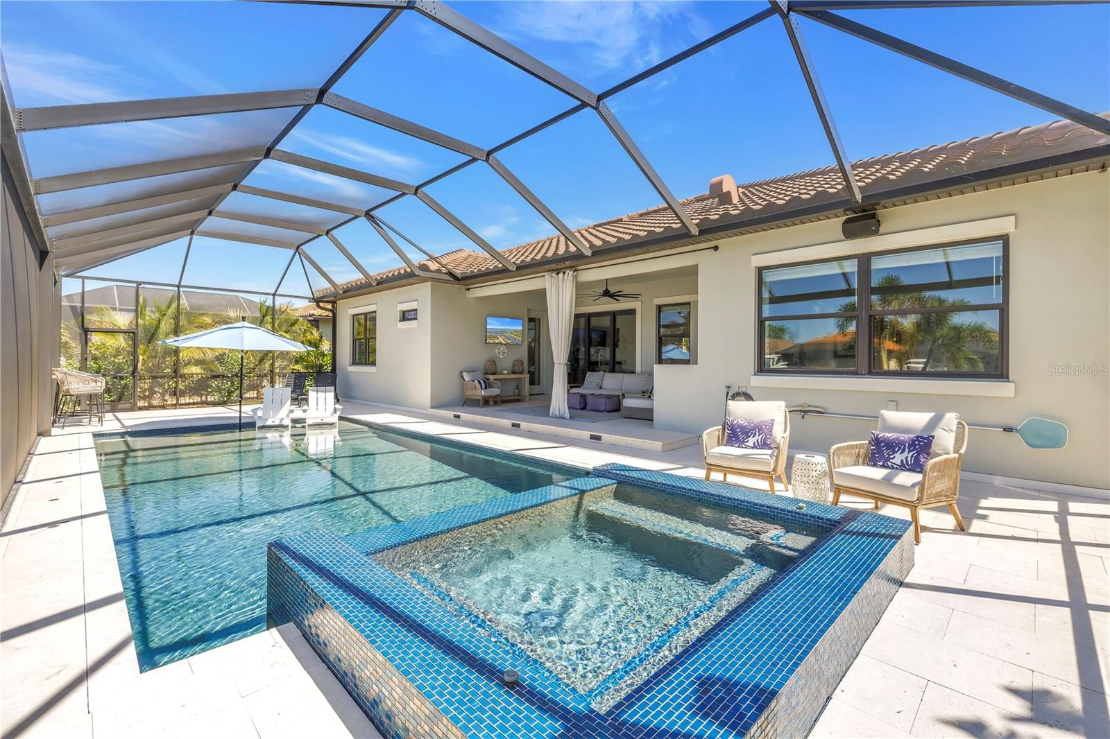 Experience elevated waterfront living in Sanctuary Cove—where luxury, location, and lifestyle align. Situated in a private, gated boating community on the Manatee River, this exceptional residence is located in Flood Zone X—NO flood insurance required and sustained NO damage or flooding during the 2024 hurricane season, offering true peace of mind rarely found in waterfront homes. Built in 2020, this impeccably maintained 4-bedroom, 3-bath home showcases a bright, open-concept design with engineered hardwood floors, soaring ceilings, crown molding, 8-foot solid-core doors, and refined architectural details throughout. The gourmet kitchen is designed to impress, featuring a gas cooktop, built-in refrigerator, Quartz countertops, custom wood range hood, and an oversized island ideal for entertaining. Step outside and embrace the Florida boating lifestyle. Enjoy 80 feet of canal frontage with a private composite dock equipped with electric and water, plus a 10,000-lb boat lift—and reach open water in just 15–20 minutes for effortless access to the Gulf, sandbars, and waterfront dining. Your outdoor oasis is equally impressive, featuring a gas-heated saltwater pool and spa with PebbleTec finish, sun shelf, color-changing lights, 3 deck jets, Wi-Fi controls, and Shellstone pavers—all surrounded by lush tropical landscaping and ambient lighting for stunning evenings. Inside, the home continues to deliver with premium upgrades including impact windows and doors, tile roof, 2 tankless gas water heaters, whole-house water purification and softener system, and a 3-car garage. A standout feature is the climate-controlled garage conversion currently outfitted with a golf simulator and fitness space—a rare and highly desirable bonus for recreation and entertainment. Sanctuary Cove offers a true resort-style experience with a private riverfront beach, kayak launch and storage, and a unique channel lock system providing consistent water levels with direct boating access. Residents enjoy a vibrant social atmosphere with a waterfront clubhouse, heated pool with lap lanes, spa, fitness center, and multiple entertainment spaces. Golf cart-friendly and ideally located just minutes to Anna Maria Island, Longboat Key, and the best of the Gulf Coast. Convenient access to I-75 and I-275, with Detwiler’s Farm Market just across the street, plus close proximity to UTC Mall, Lakewood Ranch, and both Sarasota-Bradenton and Tampa International Airports. This is more than a home—it’s a boater’s paradise with luxury at every turn. Schedule your private showing today.