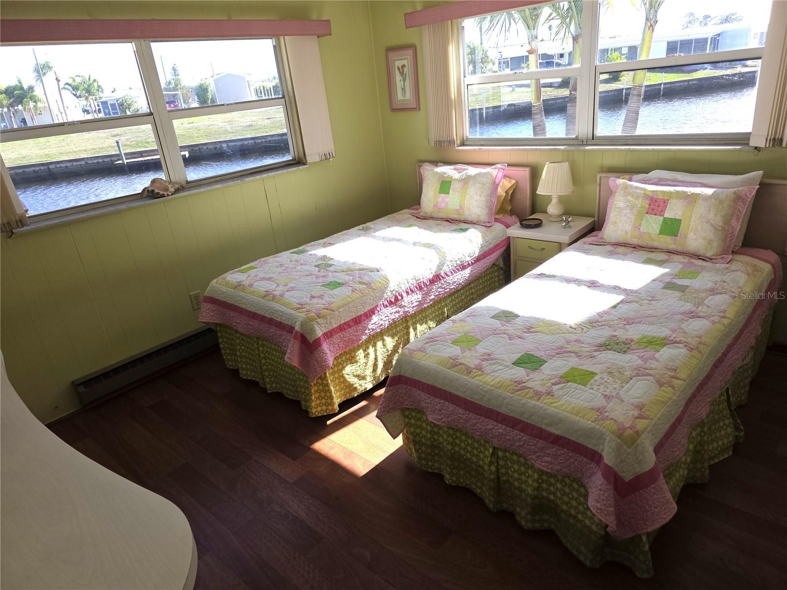Just look at these waterfront views from your spacious turn-key furnished 2 bedroom home in Harbor Cove. Laminate wood flooring throughout, 2022 AC, 2023 Roof, glass windows in the large rear waterfront lanai adds to the under air square footage from 1080 to 1310. Living room has plenty of space for an office and desk, breakfast bar in the kitchen, plenty of countertops, white cabinetry, above the stove microwave, smooth top stove, dual sinks, spacious dining room fits large table for plenty of guests. Harbor Cove - Voted BEST Manufactured Home Community by North Port Sun Reader's Choice. Offering a private community boat ramp, 90 slip marina, two story clubhouse, two heated pools, hot tub, bocce, tennis, pickle ball, fitness, storage grounds, wood working shop, crafts dinners, dances, entertainment and more. Easy commutes to Sarasota and Fort Myers. Minutes from the gulf beaches, Myakka River, Peace River, Charlotte Harbor, restaurants, shopping, Tampa Bay Rays summer training stadium, Warm Mineral Springs Health Spa, Cool Today stadium for the Atlanta Braves, and the Sun Seeker Resort located in Charlotte Harbor. EVERYTHING you need for your waterfront lifestyle is here in Southwest Florida.