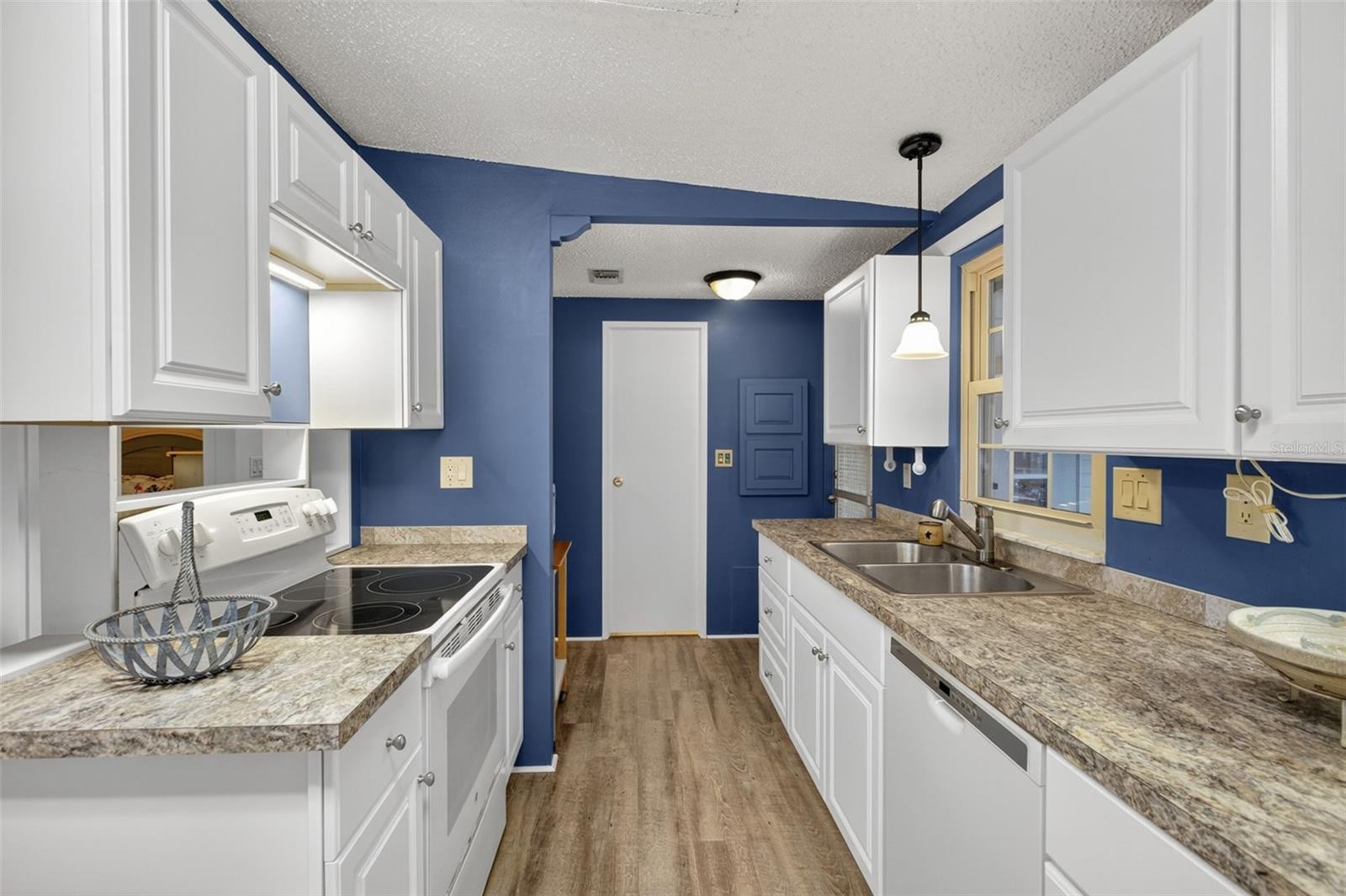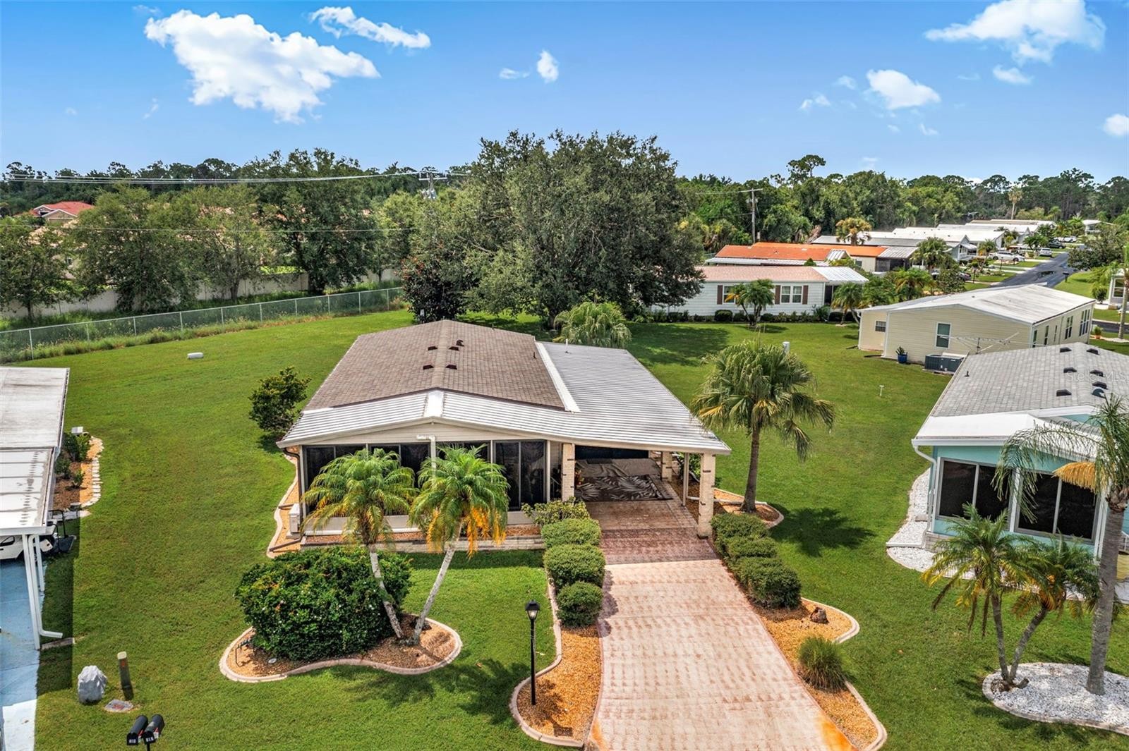 Beautifully maintained 2-bedroom, 2-bath home featuring a carport with bricked pillars that leads to a screened and vinyl-enclosed lanai with a decorative tile floor. The utility room is equipped with a washer, dryer, storage space and additional outdoor closet for extra storage. The kitchen boasts a pantry, new cabinets, appliances, and luxury laminate flooring. The dining room includes a built-in hutch, while the living room has French doors that open to the front, leading to a tiled, acrylic-enclosed Florida room that comes with a separate A/C unit. The guest bedroom features a walk-in closet, and the remodeled guest bath includes a vanity with a vessel basin and a tub/shower combination. Double doors lead into the primary suite, which includes a walk-in closet and a dressing area with a double-sink vanity. The primary bath features a Roman shower with a bench. The property is equipped with storm shutters throughout, and the A/C system was replaced in 2019, complete with a 10-year transferable parts warranty. The roof was recently replaced in March 2023. Located on a pie-shaped lot, the home offers a private backyard area. Welcome to La Casa, an enchanting community where 974 exquisite homes are beautifully set among native trees, surrounded by spacious common areas and eight serene lakes. Our generous 60 by 80-foot lots can create your ideal space. Perfectly located between Sarasota and Fort Myers, La Casa is a boater's paradise with direct access to the stunning Gulf of Mexico. Enjoy easy access to shopping, sightseeing, golfing, and fishing, all while immersing yourself in the rich culture of Southwest Florida. Experience the warmth of Southwest Florida’s winters in a relaxed environment, far from the east coast hustle. Our lush, mature landscaping reflects the dedicated care of residents and management. La Casa features some of the finest pools in the area, including our magnificent 40 by 60-foot swimming pool, maintained at a delightful 87 degrees, and a cozy 20 by 40-foot pool nestled between the clubhouse and Activity Building, both with inviting hot tubs. Stay connected with our complimentary Wi-Fi at the Clubhouse, Activity Building, and Recreation Hall while you soak up the sun. La Casa is a family-friendly haven where you can enjoy tranquility while remaining close to vibrant attractions. Come visit our charming oasis and discover why La Casa is the ultimate destination for snowbirds and year-round residents!