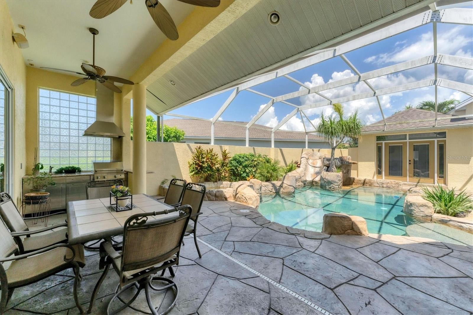 Discover an extraordinary retreat where sophisticated living meets effortless leisure in the prestigious Eden Harbor gated community. This meticulously maintained three-bedroom, three-bathroom courtyard pool residence exemplifies the finest in Englewood luxury, offering a sanctuary where every detail has been thoughtfully considered. Step through the grand entrance and be captivated by soaring eleven-foot ceilings that create an atmosphere of spacious elegance throughout. Rich tile flooring flows seamlessly from room to room, establishing a cohesive foundation for this architectural gem. The thoughtfully designed split floor plan ensures privacy and functionality, with the primary suite serving as your personal oasis featuring an indulgent walk-in shower and generous walk-in closet. The heart of this home extends beautifully outdoors, where a heated pool and spa await with a delightful built-in slide that promises endless entertainment for family gatherings. The courtyard design creates intimate outdoor living spaces perfect for both quiet contemplation and spirited celebrations. An intriguing exercise room offers versatility, easily transforming into an office sanctuary or potential fourth bedroom with simple modifications. The unique courtyard bedroom with full bathroom provides exceptional flexibility for guests or multigenerational living. Recent enhancements include a new roof installed in late 2021, ensuring years of worry-free enjoyment. The impressive 250-gallon propane system efficiently heats your aquatic paradise. Eden Harbor's gated community elevates the experience with its heated community pool and exclusive boat dock opportunities. This maintenance-free lifestyle positions you mere minutes from premier shopping, championship golf courses, acclaimed restaurants, and the pristine Gulf beaches that define Florida's coastal allure.