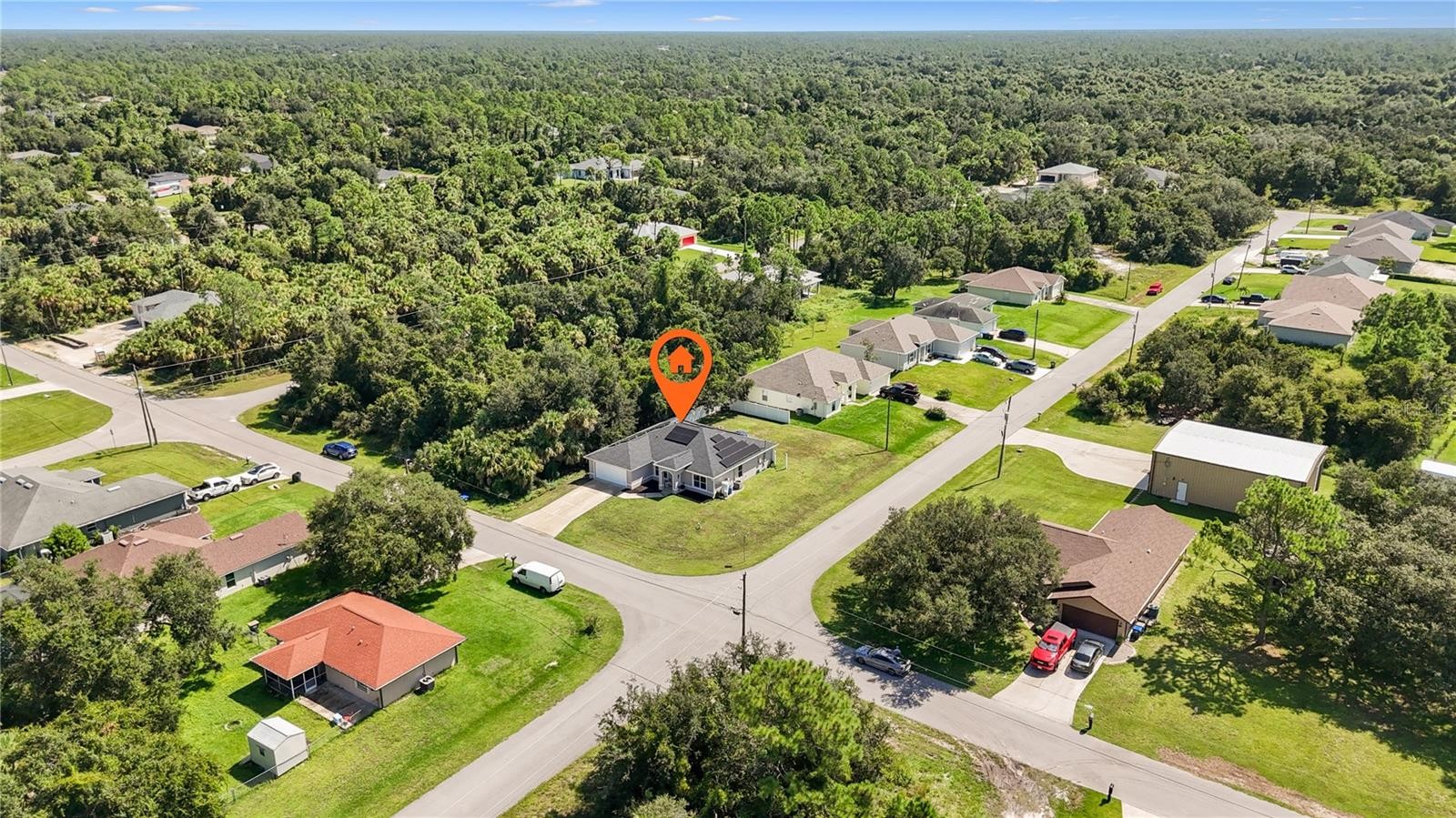 Short Sale. Welcome to this spacious 4-bedroom, 2-bath, 2-car garage home located on a large corner lot in a quiet North Port neighborhood. Featuring an open floor plan with soaring ceilings and nearly 1,800 sq. ft. of living space, this home is full of potential and requires TLC. The kitchen offers granite countertops, wood cabinetry, stainless steel appliances, and a pantry. The second bath includes a tall vanity, granite countertop, and modern fixtures and room to finish the updates started. Luxury vinyl flooring runs throughout the home for a stylish, low-maintenance touch. Additional features include a spacious laundry room, cost saving solar panels, a welcoming patio perfect for outdoor lounging or entertaining and a cozy firepit where you can relax and gaze up at the stars. Enjoy easy access to local beaches, waterways, golf courses, shopping, dining, and public parks with bike trails, picnic areas, and boat ramps leading to Charlotte Harbor and the Gulf.