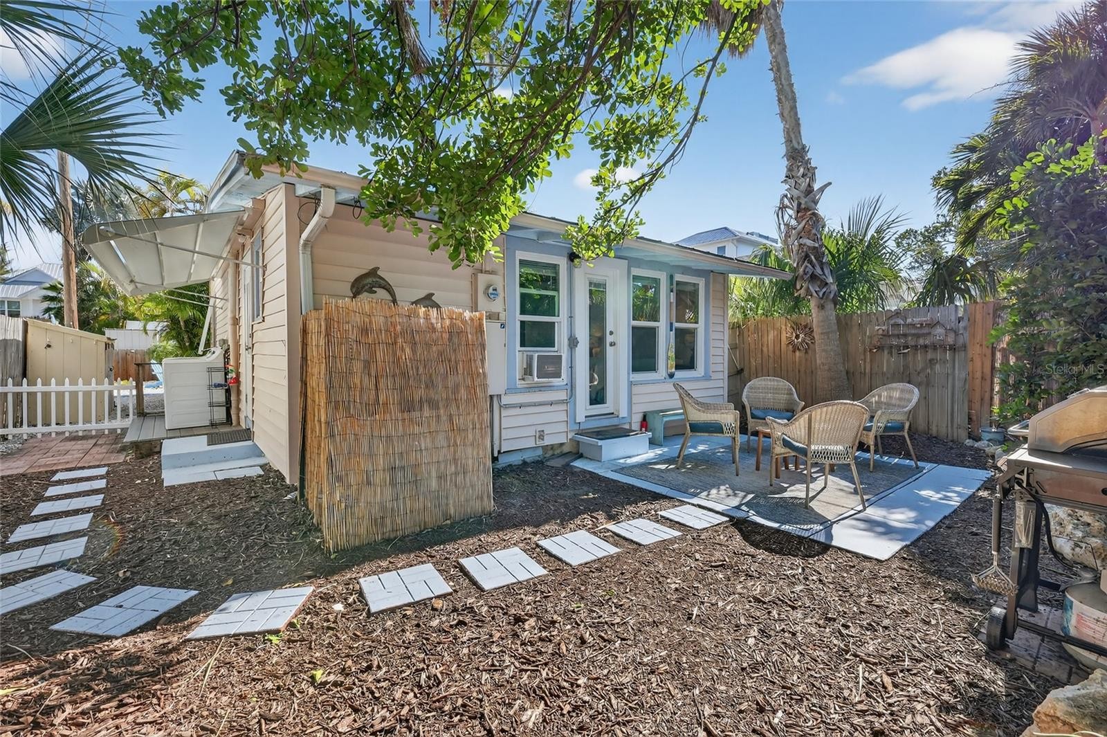 A hidden gem tucked away on Spring Avenue, just steps from the sparkling Gulf waters and the heart of Anna Maria’s boutique shopping and dining scene. This 2BD/1BA cottage is the perfect blend of island charm and modern comfort. Located in a prime rental zone, you are welcomed by a courtyard entry to this hidden gem that opens to a bright and beachy interior where coastal decor and finishes create a welcoming retreat. Inside, you'll find a bright, open living space filled with natural light, vinyl plank flooring, and beachy accents throughout. The two bedrooms offer plenty of space to settle in and relax. The kitchen is crisp and functional with granite countertops and stainless appliances, while the private backyard patio creates the perfect spot for grilling and relaxing under swaying palms. Located in a coveted short-term rental zone, this turnkey property makes an ideal vacation getaway or full time island escape.