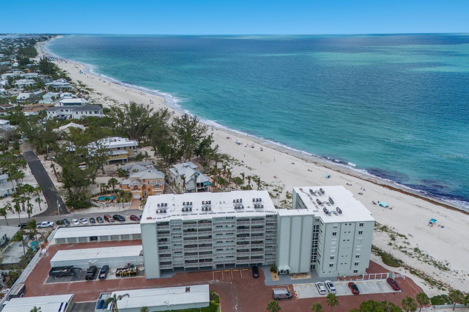 GULF FRONT condo with Spectacular views of the Gulf of Mexico from every room. SPACIOUS! You MUST SEE THE SUNSETS AND DOLPHINS PLAYING from your open balcony or YOUR GULF FRONT BEDROOM!! Updated kitchen, windows and sliding glass doors. Martinique South is located in the heart of Holmes Beach, on Anna Maria Island. Building elevator with secure entrance. Close to everything...restaurants, shops, hardware store, fitness center and much more! Just bring your swim suit and toothbrush, everything you need is already here. Plus, it comes with a carport and a storage room! Washer/dryer in the kitchen, spacious walk-in closet in Primary Bedroom. Beautiful community room facing the Gulf is great for parties and get togethers. Call your Realtor today to schedule a showing.