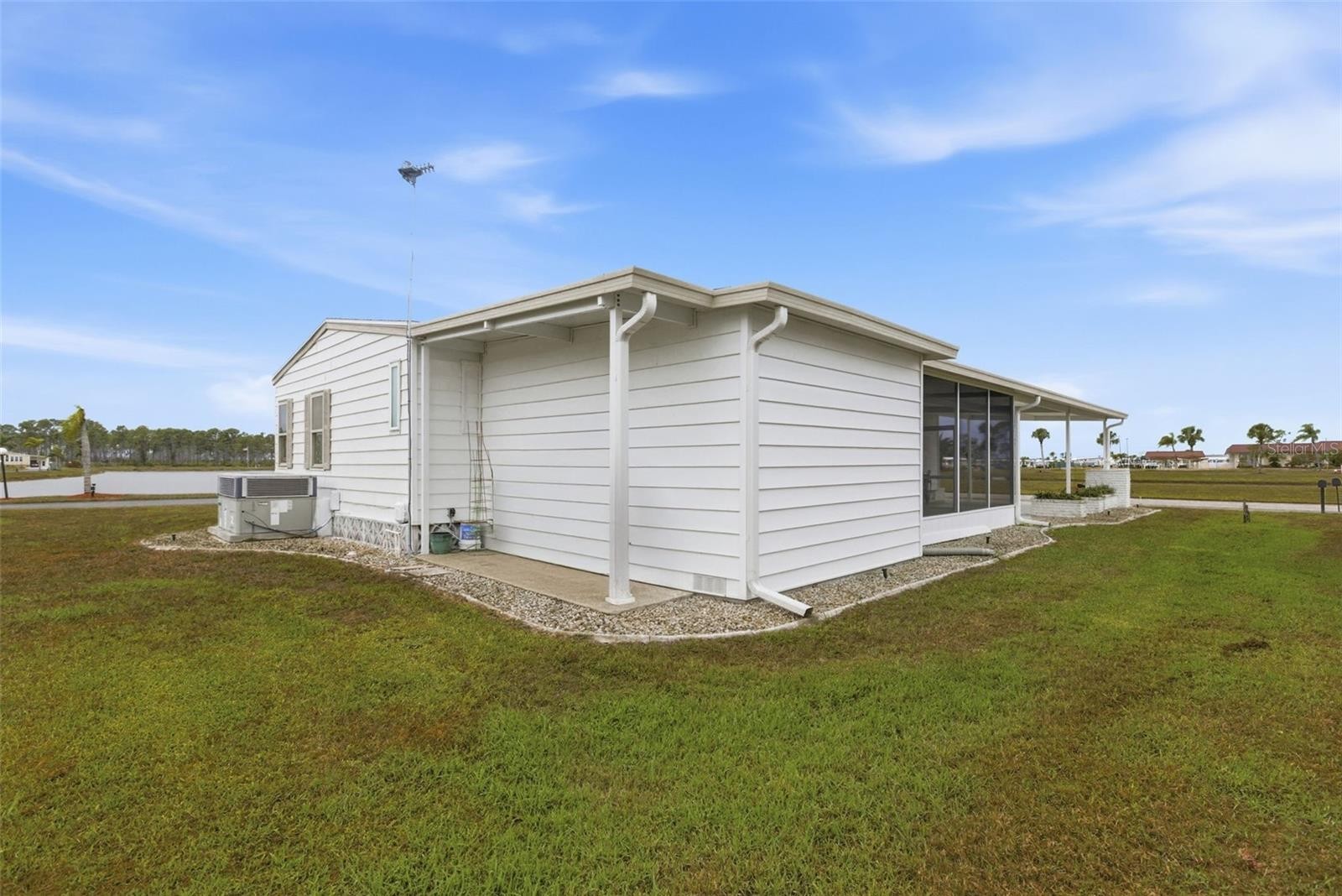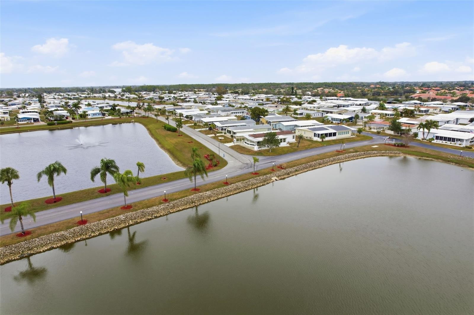 Magnificent location with a rare view of two lakes, sunrises, and sunsets, across from the Rec Hall and its amenities. This lovely two-bedroom, two-bath home boasts top-of-the-line upgrades throughout. The entry includes a newer washer/dryer combo and cabinets. The open, spacious kitchen features a center island, cooktop and breakfast bar, new stainless-steel appliances, a subway tile backsplash, granite countertops, and a pass-through window to the Florida room. The dining room off the kitchen opens to a 12’ X 28’ glass-enclosed Florida room with magnificent lake and Myakka Forest views. Relax and enjoy sunsets and Florida breezes from the 12’ X 6’ front porch. The guest bedroom features a walk-in closet and direct access to the guest bath, which includes a new vanity and tub/shower. The primary bedroom boasts a double walk-through closet and a pocket door to the ensuite bath featuring a new double-sink vanity with quartz countertops, a linen tower, a walk-in closet, a pocket door to an ample storage closet, and a tiled walk-in shower with a bench for your comfort. This beautiful home boasts a new shingle roof in 2022, new A/C in 2019, new 3/4” plywood subfloors, luxury vinyl flooring, ceramic tile, with carpet in the bedrooms. The epoxy-coated drive leads to a spacious screened lanai and the extended utility room. This beautiful, well-maintained home with many pluses is a must-see! Welcome to La Casa. La Casa boasts 974 home sites nestled among a variety of native trees with spacious common grounds surrounding our eight lakes. La Casa is convenient for shopping, sightseeing, golfing, fishing, and boating, as well as all the culture and elegance the Southwest Florida area is noted for. Residents and visitors enjoy the warmth of Southwest Florida winters in a relaxed and unhurried environment far removed from the hustle of Florida’s east coast. You’ll be surrounded by mature lush landscaping which demonstrates the utmost level of care our property receives from residents and management. Our two pools have adjacent hot tubs which are ideal for soaking muscles that are tired from golfing or tennis. Wireless Internet (Wi-Fi) is available at the Clubhouse, Activity Building, and Recreation Hall area where our pools & spas are located, so you can catch some rays while you catch up on your email! Sound enticing? La Casa is a friendly, family community. Come for a visit to this self-contained oasis and see for yourself why La Casa is the ultimate destination for both snowbirds and year-round residents!