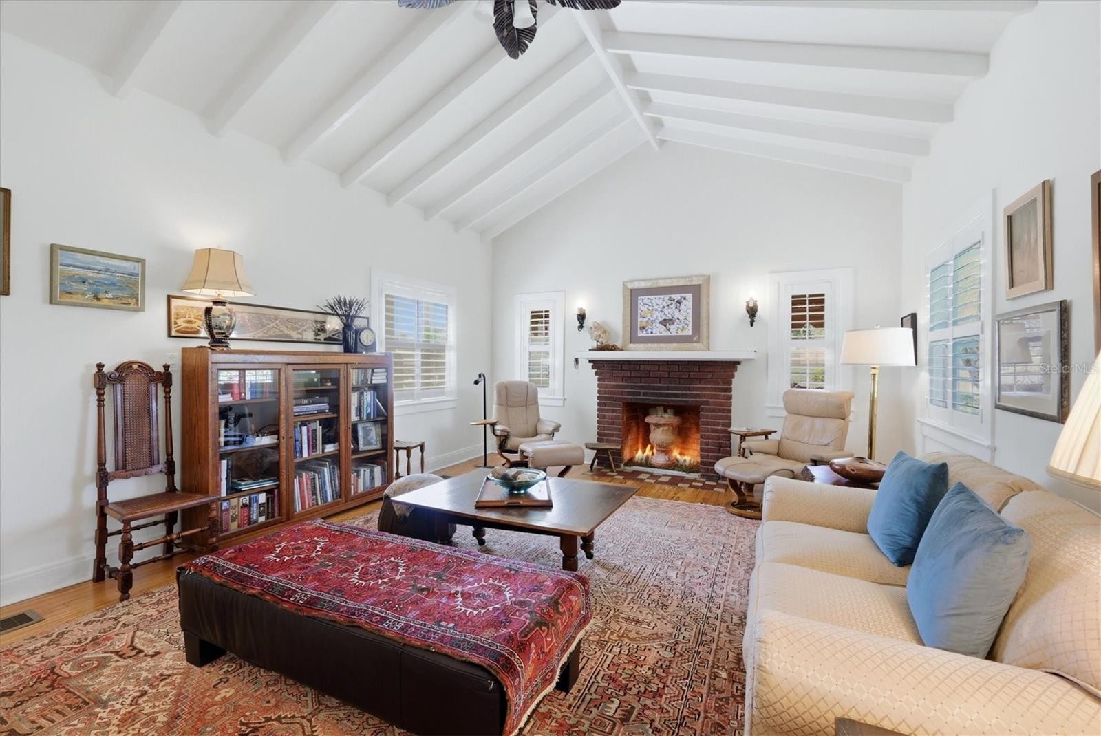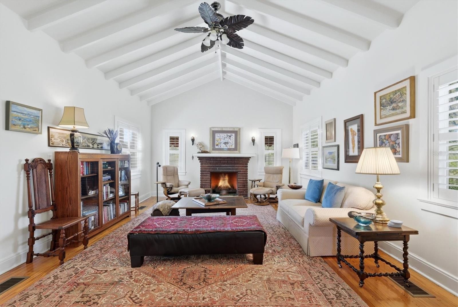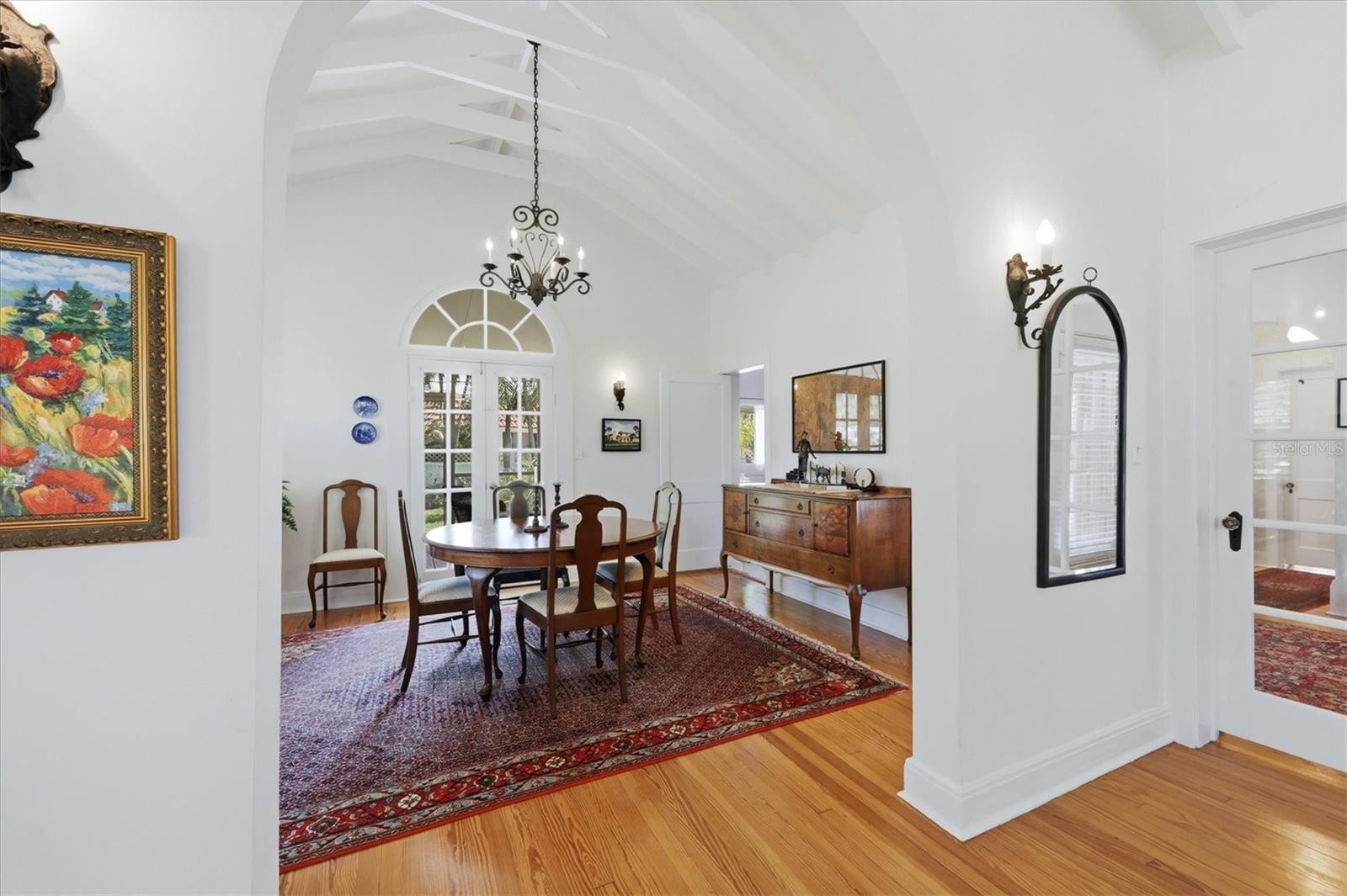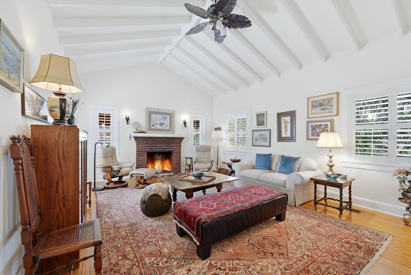 Celebrate Venice’s centennial in an original 1926 residence, thoughtfully preserved and updated within the Venezia Park Historic District, listed on the National Register of Historic Places and recognized as home to the most significant collection of historic homes in Venice. One hundred years later, it stands as one of the finest examples of what thoughtful preservation and modern restoration can achieve, a centennial home, impeccably updated and move-in ready. This is not a home that asks you to compromise. The character of 1926 is all here and so are the finishes, systems and details of 2026. This home is designed to embrace the Florida lifestyle. A covered loggia with pecky cypress ceiling, graceful arched openings and a classic balustrade announces the home's arrival before you even go inside. Through the original glass-paned front door, the interiors unfold with warmth and intention. Original heart of pine floors refinished to a rich, warm luster extend throughout the first floor. Arched openings, original interior doors, custom period casings and French doors with glass hardware speak to a level of craftsmanship rarely encountered. Vaulted, beamed ceilings and an original brick fireplace anchor the living room, where natural light pours through updated windows dressed in plantation shutters. Period-style sconces and light fixtures carry the aesthetic through the formal dining room, which opens via French doors to an enclosed lanai and its garden views beyond. The kitchen is the rare kind that honors its context without sacrificing a thing, floor to ceiling natural cherry cabinetry, stone countertops, and modern appliances all selected to complement the home’s architectural period. A first-floor bedroom and fully updated bath showcase black and white tile, a pedestal sink, original honeycomb tile flooring and a beautifully refinished cast iron bathtub. Upstairs, the original wood staircase leads to two bright bedrooms and a second full bath, each finished with the same cohesive, period-appropriate care, including original narrow plank oak floors and another refinished cast iron tub. A detached guest house completes the picture, a private, fully equipped retreat with kitchenette, full bath and walk-in shower, ideal for guests or multigenerational living. A paver patio connects the two structures, creating a seamless outdoor living space framed by mature, established landscaping. The structure, solid, updated and worry-free. The home has been comprehensively improved beneath its beautiful surface with full plumbing replacement with new PVC lines throughout, a three-zone air conditioning system with entirely new ductwork (2019), a new water heater (2026), roof replacements on the main residence (2010) and guest house (2023), and a hurricane-rated privacy wall (2014). These are not deferred items, they are done. The location is the final grace note. Historic downtown Venice with its charming boutiques, acclaimed restaurants, galleries, theaters and parks are just a short distance from the front door. With the Gulf never far, the island’s pristine beaches are an easy visit, bike ride or quick drive from your front door, just the way life on Venice Island was always meant to be.