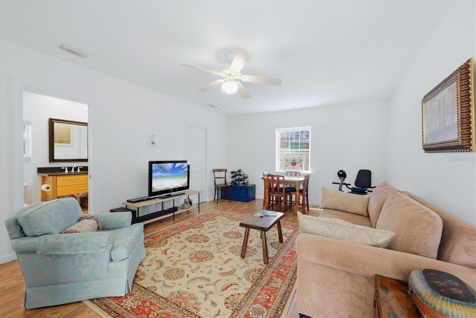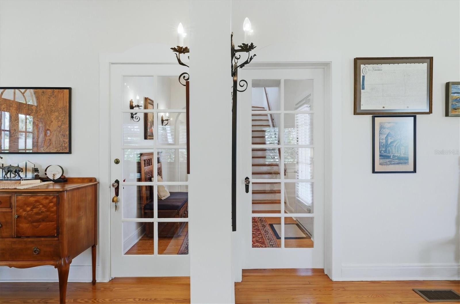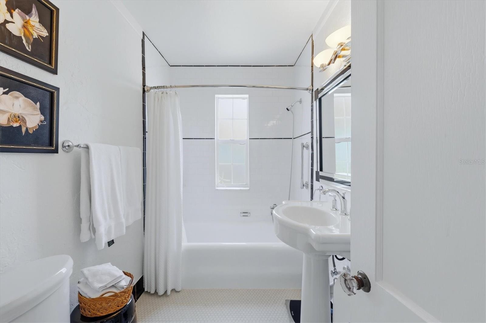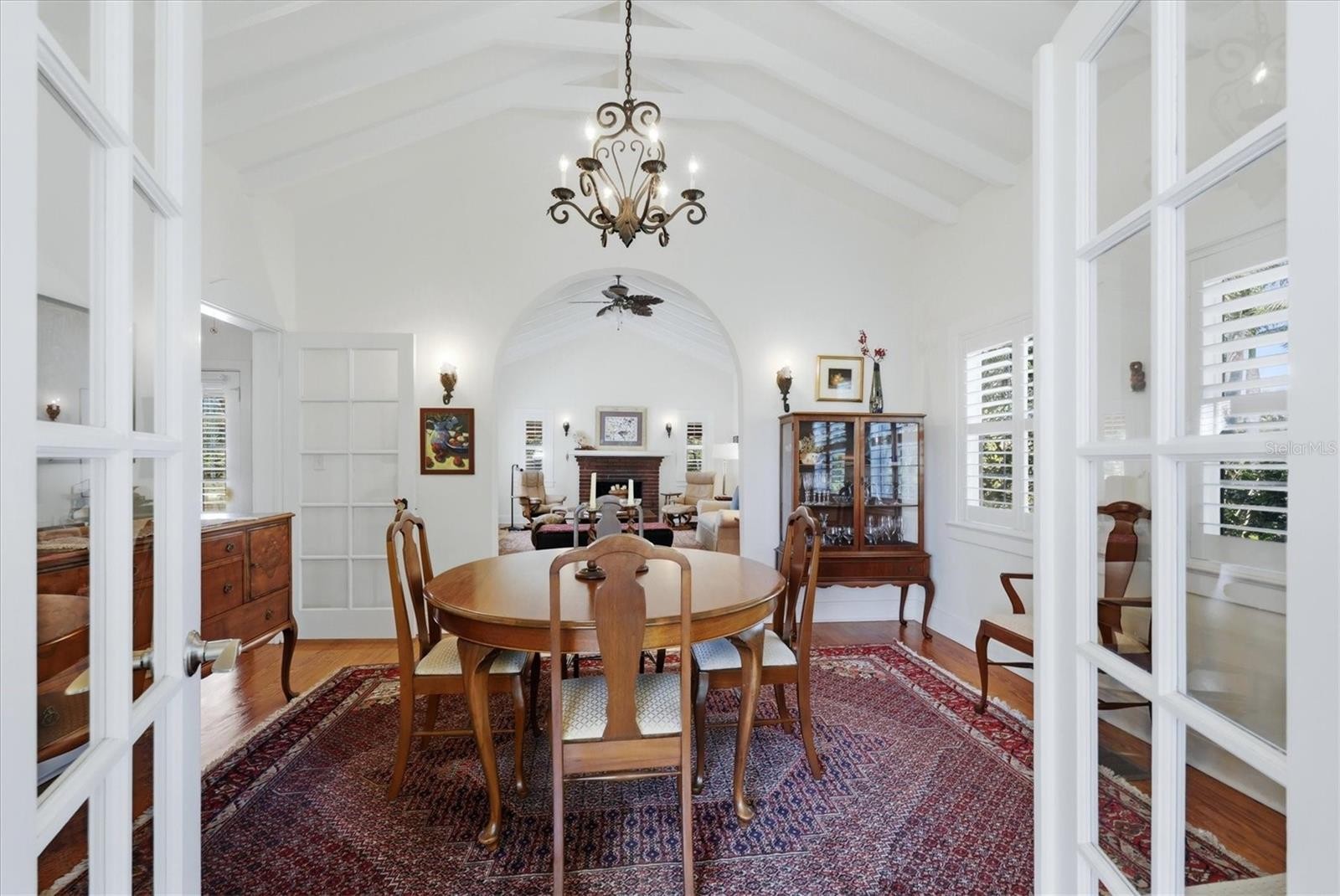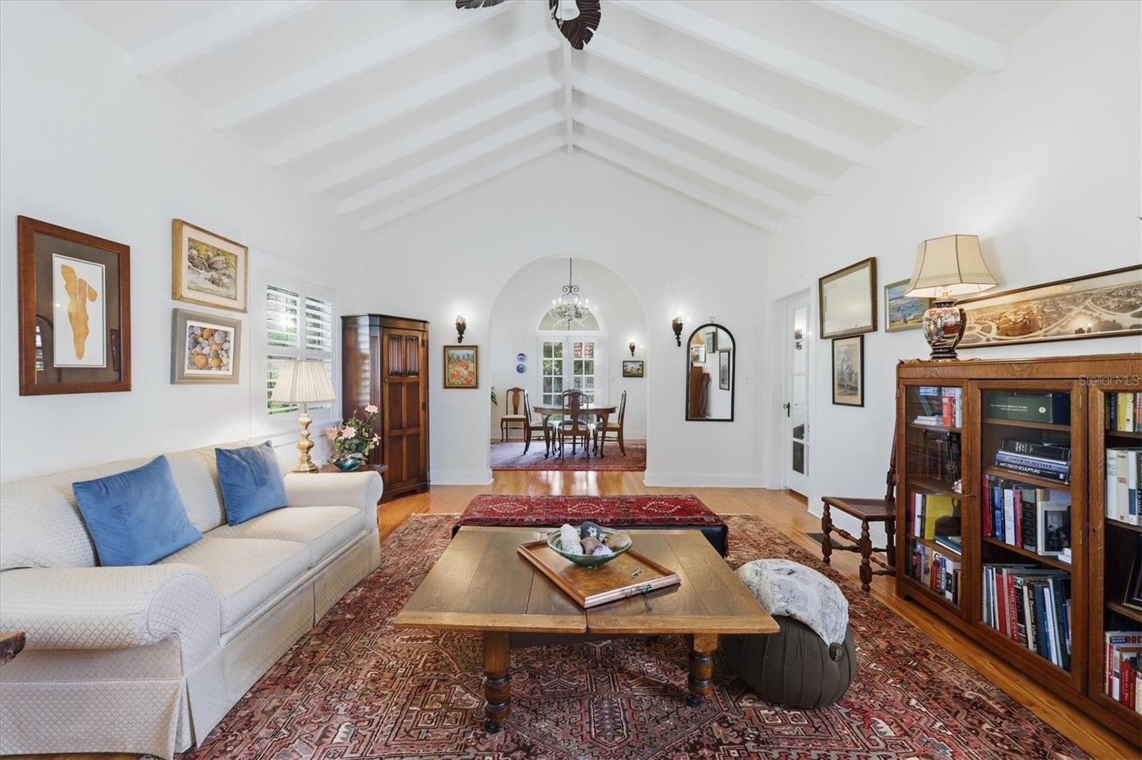 Celebrate Venice’s centennial in an original 1926 residence, thoughtfully preserved and updated within the Venezia Park Historic District, listed on the National Register of Historic Places and recognized as home to the most significant collection of historic homes in Venice. One hundred years later, it stands as one of the finest examples of what thoughtful preservation and modern restoration can achieve, a centennial home, impeccably updated and move-in ready. This is not a home that asks you to compromise. The character of 1926 is all here and so are the finishes, systems and details of 2026. This home is designed to embrace the Florida lifestyle. A covered loggia with pecky cypress ceiling, graceful arched openings and a classic balustrade announces the home's arrival before you even go inside. Through the original glass-paned front door, the interiors unfold with warmth and intention. Original heart of pine floors refinished to a rich, warm luster extend throughout the first floor. Arched openings, original interior doors, custom period casings and French doors with glass hardware speak to a level of craftsmanship rarely encountered. Vaulted, beamed ceilings and an original brick fireplace anchor the living room, where natural light pours through updated windows dressed in plantation shutters. Period-style sconces and light fixtures carry the aesthetic through the formal dining room, which opens via French doors to an enclosed lanai and its garden views beyond. The kitchen is the rare kind that honors its context without sacrificing a thing, floor to ceiling natural cherry cabinetry, stone countertops, and modern appliances all selected to complement the home’s architectural period. A first-floor bedroom and fully updated bath showcase black and white tile, a pedestal sink, original honeycomb tile flooring and a beautifully refinished cast iron bathtub. Upstairs, the original wood staircase leads to two bright bedrooms and a second full bath, each finished with the same cohesive, period-appropriate care, including original narrow plank oak floors and another refinished cast iron tub. A detached guest house completes the picture, a private, fully equipped retreat with kitchenette, full bath and walk-in shower, ideal for guests or multigenerational living. A paver patio connects the two structures, creating a seamless outdoor living space framed by mature, established landscaping. The structure, solid, updated and worry-free. The home has been comprehensively improved beneath its beautiful surface with full plumbing replacement with new PVC lines throughout, a three-zone air conditioning system with entirely new ductwork (2019), a new water heater (2026), roof replacements on the main residence (2010) and guest house (2023), and a hurricane-rated privacy wall (2014). These are not deferred items, they are done. The location is the final grace note. Historic downtown Venice with its charming boutiques, acclaimed restaurants, galleries, theaters and parks are just a short distance from the front door. With the Gulf never far, the island’s pristine beaches are an easy visit, bike ride or quick drive from your front door, just the way life on Venice Island was always meant to be.