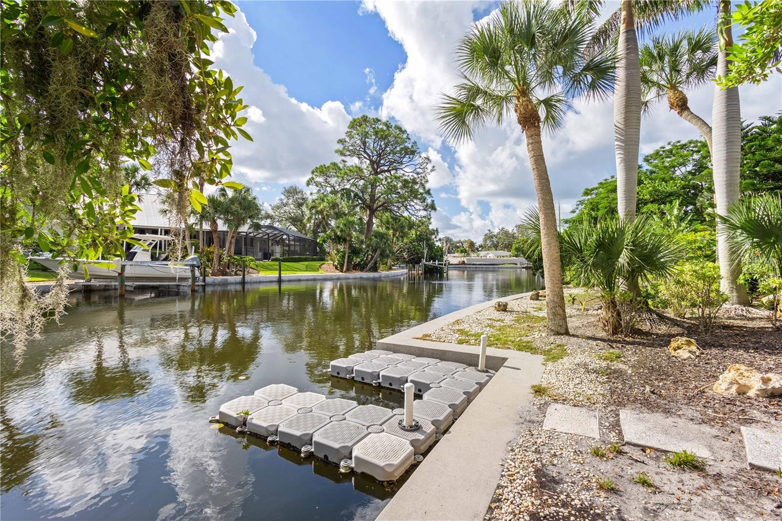 JUST REDUCED!! SIESTA ISLES Waterfront Gem. Experience the best of Siesta Key living in this well maintained 3-bedroom + den, 3-bath pool home with 135+ feet of frontage on the Grand Canal. Situated on an oversized 15,269 sq ft /.35-acre lot, this residence offers the perfect blend of privacy, upgrades, and waterfront lifestyle. Situated well back from the street, the home opens with a welcoming foyer and expansive great room featuring vaulted ceilings, impact windows and impact sliding glass doors flooding the space with natural light while framing serene garden and waterway views. Two bedrooms feature en-suite baths and direct access to the back yard, while the primary suite’s bath connects conveniently to the pool area. Enjoy the privacy of this tropical retreat, swim in the sparkling pool, rinse off in the outdoor shower, or launch kayaks and paddleboards from the floating dock. With space to add a full dock or lift, boaters will love the water access via one fixed bridge to the Intracoastal Waterway. Practical updates bring peace of mind, including a durable metal roof and maintenance contracts for irrigation, AC, pest control, and alarm systems. The home has county water and sewer and there's a shared irrigation well that sustains the mature landscaping. The home experienced NO WATER INTRUSTION during last year’s storms and is truly move-in ready. A winding walkway through lush landscaping leads to the waterfront patio, while an extended brick paver driveway offers ample guest parking. Just minutes from Siesta Key’s world-famous beaches and The Village’s varied dining and shopping options, this home is ideal as a full-time residence or lucrative rental investment. Don’t miss your chance to own a slice of paradise on the Grand Canal—schedule your private showing today!