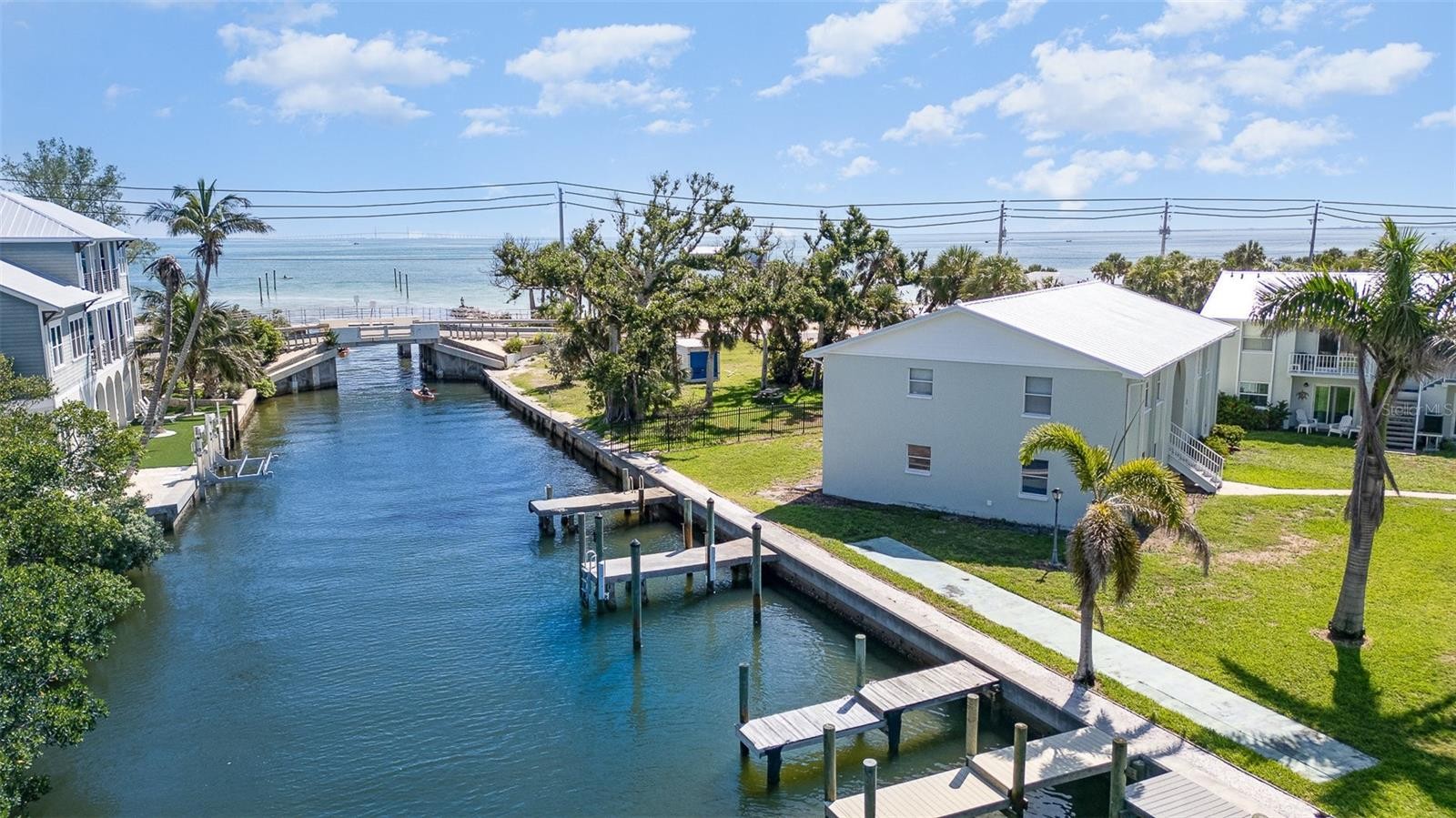 Welcome to your slice of paradise on the north end of Anna Maria Island! One of the most desirable AND currently most affordable WATERFRONT condos located on beloved Pine Avenue. No detail was missed, this lovely light filled 2-bedroom, 1-bath unit has been beautifully renovated and offers the perfect blend of modern comfort and island charm. Unit 8B is privately situated in an end corner unit on a tranquil canal with direct views to Tampa Bay. It includes a deeded boat dock and slip—a rare find in the City of Anna Maria Island. Enjoy morning coffee on the private patio space and manatees and dolphins from your dock. Hop on the boat from your own slip, kayak or paddle board right out to the stunning bay. Step inside to an open-concept living space and gorgeous eat-in kitchen featuring new stainless-steel appliances and quartz countertops. Offering an airy layout for entertaining family & guests or relaxing after a day at the beach or boating out on the bay. The primary bedroom boasts a spacious walk-in closet, while the second bedroom conveniently includes an in-unit washer and dryer and great bonus shelving in the closet. Ample storage space throughout and there is water views offered from every window in this unit. Whether you're boating, biking to the beach, or enjoying the boutiques and cafes along Pine Avenue, this condo has it all—location, luxury, and lifestyle. The Bayou has 8 buildings with only 32 units in total. The complex is quiet and meticulously maintained with a lower HOA, new metal roofs in 2025 and newly paved parking in 2024. Perfect as a primary residence, home away from home, or investment property with 2-week rentals. Ideally situated near the trolley stop, or walk to boutique shops, and dining, every island convenience is right at your doorstep. Just pack your bags and get ready to experience island life, offered beautifully decorated and completely turnkey furnished. Don't miss out on this island canal front GEM!