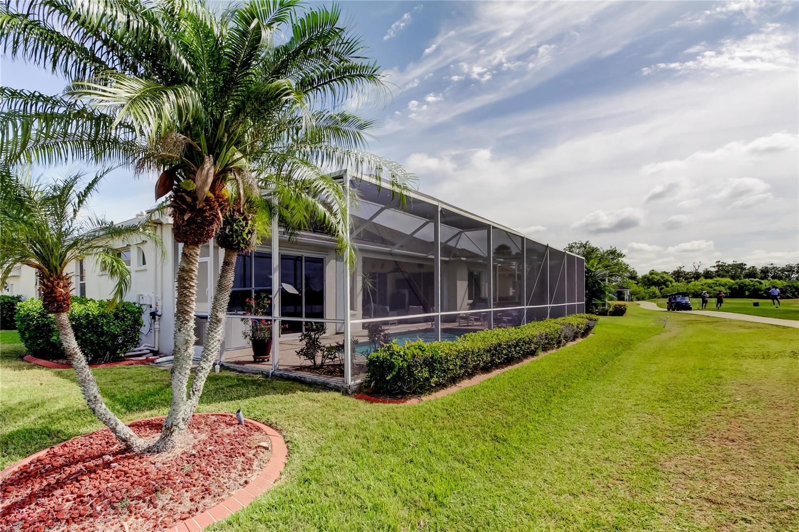Seller is Motivated! This elegant 3-bedroom, 2.5-bathroom home, complete with a den that can also be used as a 4th bedroom, 3-car garage, and a heated pool and spa—all perfectly situated on the scenic Greenfield Golf Course. Non flood-zone for peace of mind. From the moment you step through the inviting entryway into the spacious living area, you’ll feel right at home. The thoughtfully designed kitchen balances functionality with style, boasting granite countertops, hardwood cabinetry, a vegetable sink on the island, and ample storage with convenient pull-out drawers. Two generously sized pantries, also equipped with pull-out drawers, ensure effortless organization. Plus, the home features a central vacuum system, making everyday cleaning easier and more efficient. Adjacent to the kitchen is a charming dining nook that flows seamlessly into the comfortable gathering room—ideal for quality time with family and friends. The thoughtfully designed split floor plan offers privacy, with the primary suite boasting his-and-hers walk-in closets. Every room is bathed in natural light, creating a warm and welcoming ambiance throughout the home. Start your mornings or unwind in the evenings on the lanai, which overlooks the sparkling pool and the picturesque 6th hole of the golf course. This home is packed with valuable updates and extras: a roof (2022) with a transferable warranty, a 200-amp electric panel (2020), an updated HVAC system (2020) with an additional return air vent in the primary bedroom, gas ready stove, hurricane shutters, a 5-panel solar heater for the pool, beautifully maintained landscaping, and a third garage bay for extra storage. Located with convenience in mind, this property offers easy access Interstate 75 (I-75), State Road 64 (SR-64),Sarasota-Bradenton International Airport and still offers quick access to shopping, dining, and coastal attractions. We warmly welcome you to explore this exceptional home and envision the lifestyle it offers.