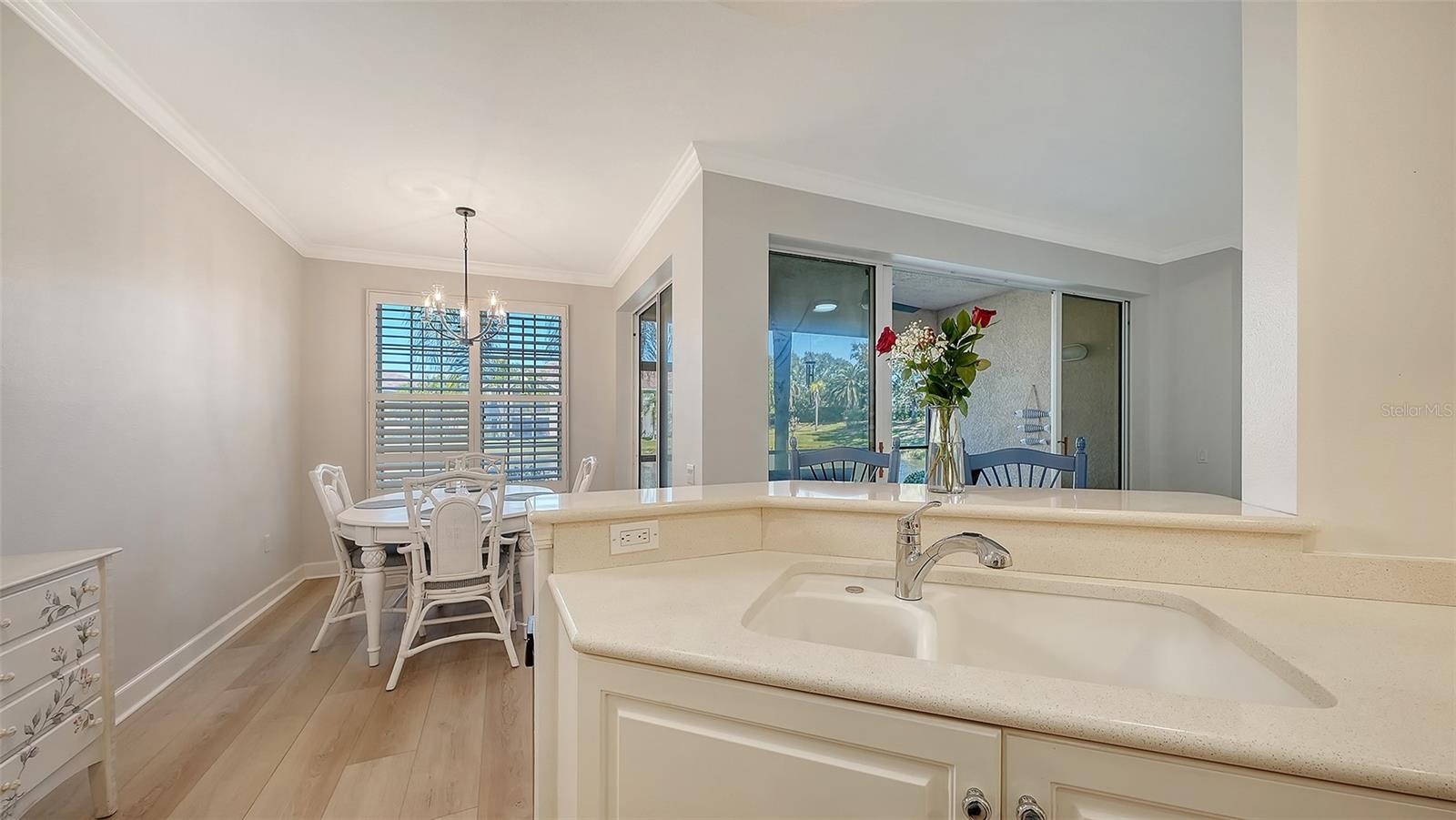 Move right into this freshly renovated first-floor condominium in the heart of Palmer Ranch! Featuring luxury vinyl flooring throughout, new stainless steel appliances, upgraded light fixtures and freshly painted walls, this home is ready to enjoy! With a light, airy palette and peaceful views of the lake, you will enjoy relaxing on the screened-in-lanai. The bright kitchen is fully updated with classic white cabinetry, quartz countertops, undermount sink and recessed lighting. The over-sized primary bedroom suite boaters view of the lake and plantation shutters for privacy. With a large walk-in closet, a soaker tub, shower and dual vanities in the primary bath, this suite has everything you need. Just bring your clothes! Two additional spacious bedrooms, a second bath and an inside laundry complete this home. The attached one-car garage provides additional storage and has an oversized driveway that parks two vehicles. The roof was replaced in 2023. Botanica is a gated condominium community in Palmer Ranch. Community amenities include two pools, a clubhouse and fitness room and lush, well maintained landscaping.