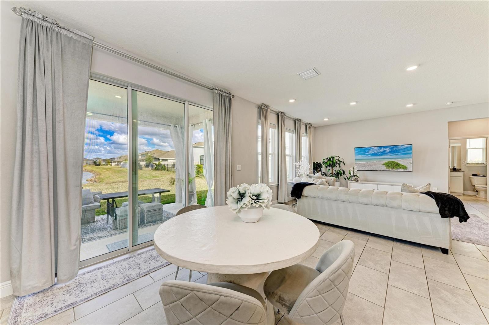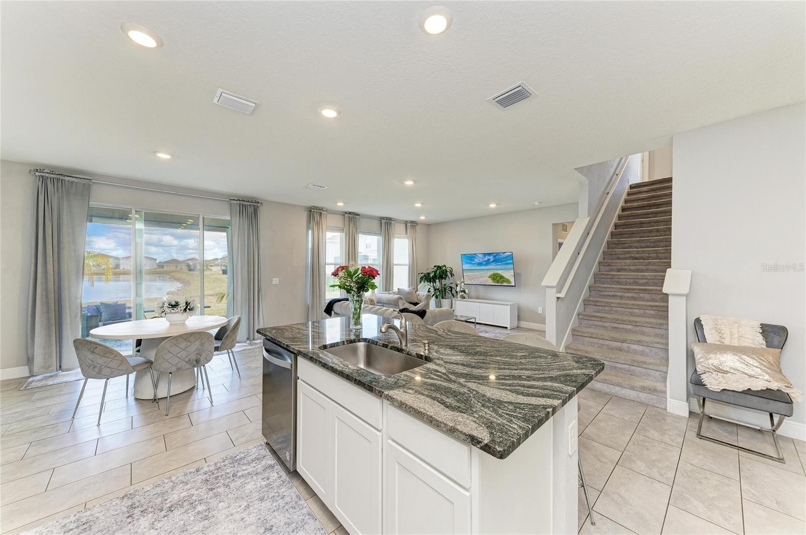 Welcome to your ideal family retreat in Lakewood Ranch’s sought-after Solera neighborhood. Perfectly positioned on a peaceful waterfront lot, this home captures breathtaking water views, highlighted by a fountain that glows beautifully in the evening—creating a picturesque and tranquil backdrop. High ceilings and an open-concept design fill the home with natural light, offering a bright, airy atmosphere and flexible spaces for everyday living and entertaining. The front FLEX room provides versatility as a home office, formal dining room, or additional sitting area—tailored to fit your lifestyle. The spacious primary suite is a true retreat, featuring a sitting area, an expansive walk-in closet, and a luxurious en-suite bath. Upstairs, you’ll also find three additional bedrooms, a generously sized shared bath with dual sinks, a bonus room with an oversized storage closet, and a well-appointed laundry room with utility sink. A downstairs guest bedroom and full bath offer ideal privacy for visitors or multi-generational living. Designed with both style and function in mind, the kitchen features granite countertops, wood cabinetry, a large pantry, and a butler’s pantry - perfect for seamless entertaining. Sliding glass doors open to the covered lanai, extending your living space outdoors and allowing you to fully enjoy the serene waterfront setting. Solera is a newer, established community with low HOA fees that include landscaping maintenance and access to a community pool just steps away. As part of Lakewood Ranch, residents enjoy top-rated schools, premier shopping and dining, golf courses, parks, and extensive recreational amenities. The neighborhood’s streetscape and vibrant community atmosphere reflect pride of ownership throughout. More than just a home, this property offers a lifestyle - conveniently located near downtown Sarasota and its thriving arts scene, University Town Center, SRQ Airport, world-renowned Gulf Coast beaches, and within easy reach of Florida’s famous theme parks.