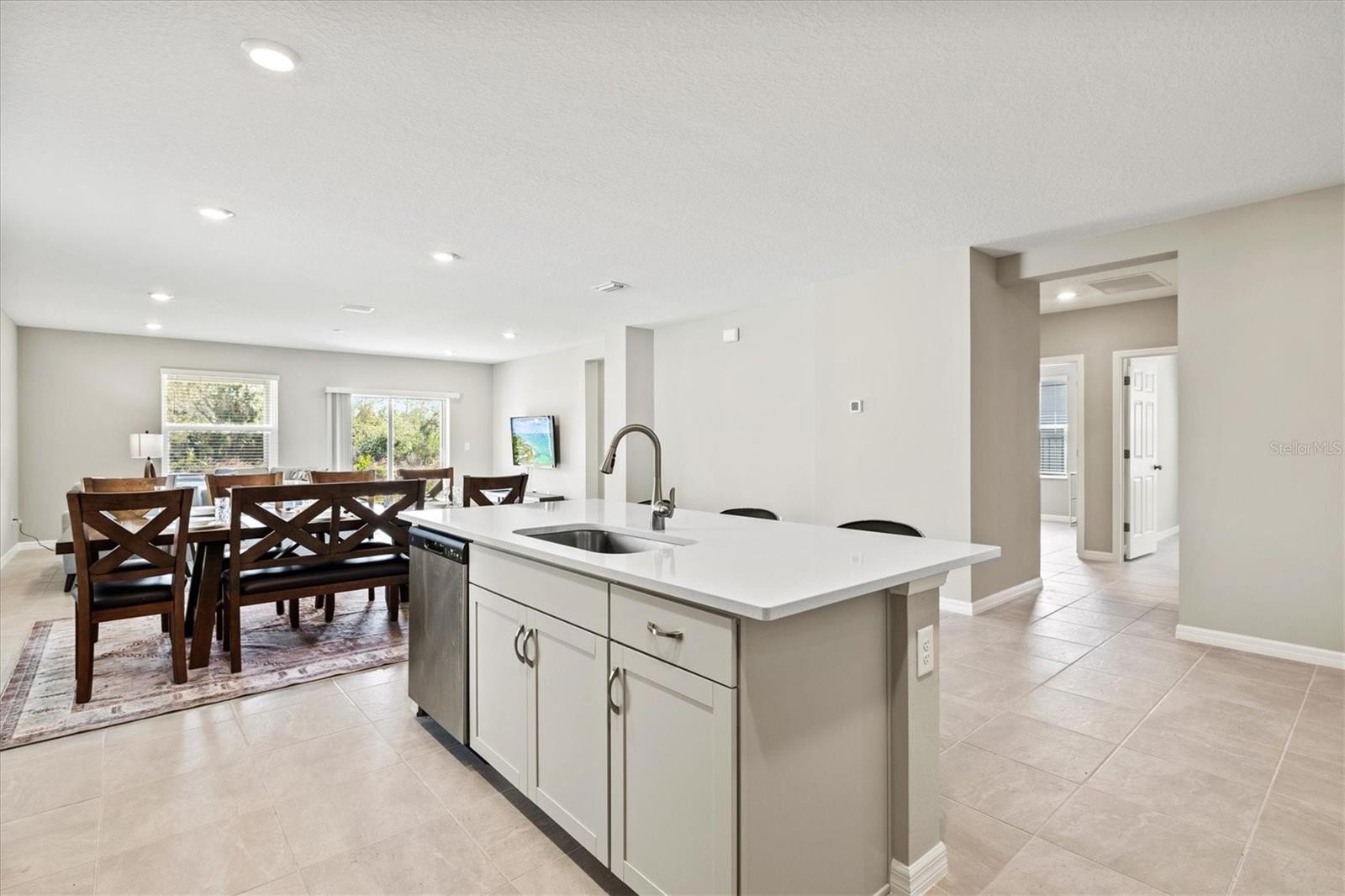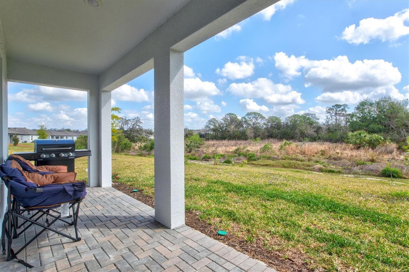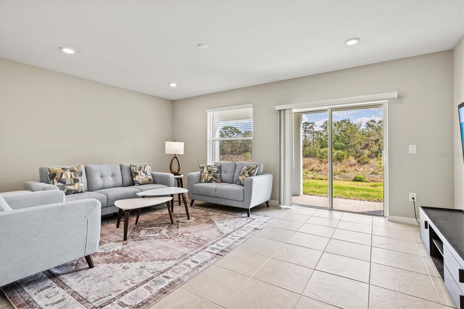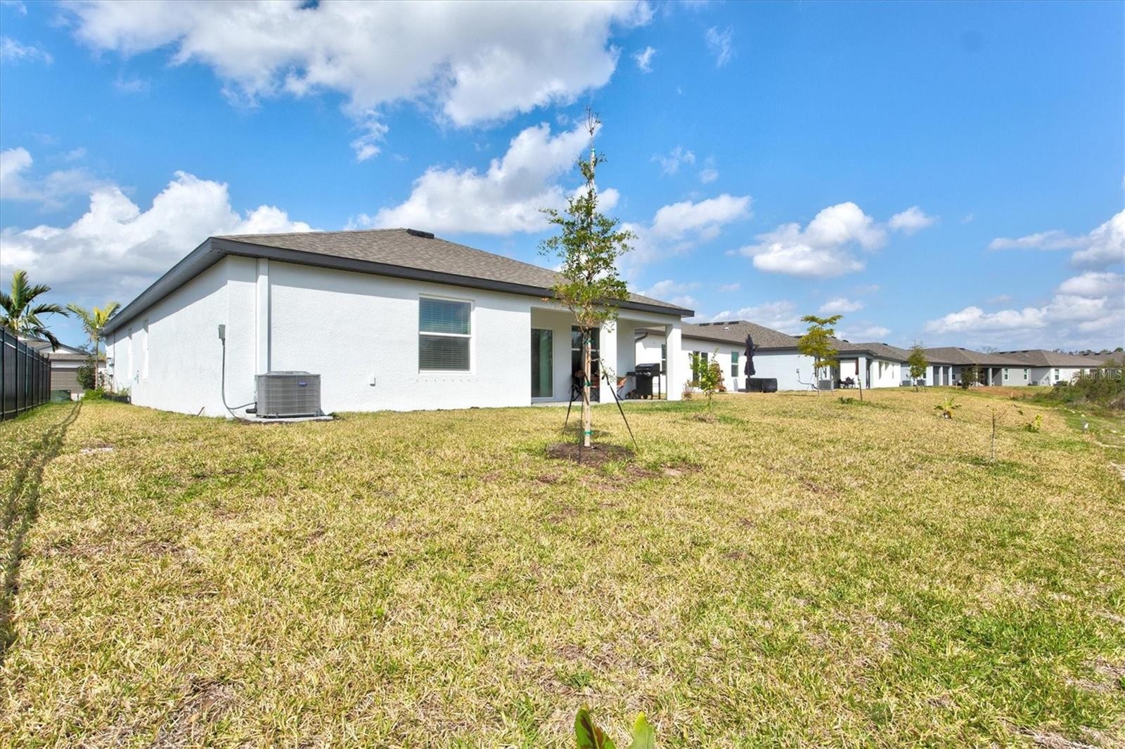 Why wait for a builder when you can MOVE IMMEDIATELY into this brand-new, FULLY FURNISHED home? This stunning Palisades floorplan by M/I Homes, one of the LARGEST one-story available, is nestled within the exclusive GATED community of Trevesta, offering modern elegance, spacious living, and RESORT-STYLE AMENITIES at your doorstep. This home also comes fully furnished, including brand-new living room, dining room, TV and bedroom furniture valued at approximately $10,000. As you pull into the driveway, lush, manicured landscaping and a welcoming front entryway invite you in. Step inside, and you're immediately welcomed by a BRIGHT and airy foyer, where NATURAL LIGHT spills through the windows, setting a serene tone. To your left, a versatile front bedroom offers the perfect space for overnight guests, a home office, or even a cozy reading nook—tailor it to your lifestyle. Moving further inside, the home dramatically opens up into a vast, OPEN-CONCEPT LIVING space that stretches almost the entire length of the house. The chef’s kitchen is the heart of the home, featuring an OVERSIZED ISLAND with bar seating, STUNNING QUARTZ countertops, STAINLESS-STEEL appliances, and a stylish SINGLE-BASIN sink. Whether you're hosting a weekend brunch, preparing weeknight dinners, or pouring a glass of wine while chatting with family, this space makes cooking and entertaining effortless. The dedicated dining area is ideal for both intimate meals and lively dinner parties, seamlessly flowing into the expansive great room, where plush furnishings and warm accents create a cozy ambiance. Large sliding glass doors flood the space with natural light and lead out to a covered lanai, where you can sip your morning coffee, grill out on the weekends, or simply unwind as you enjoy the gentle Florida breeze. Tucked away on the opposite side of the home, the owner’s suite is a PRIVATE RETREAT, offering a luxurious escape from the hustle and bustle of daily life. A MASSIVE walk-in closet provides ample storage, while the SPA-LIKE ENSUITE bathroom features a sleek DOUBLE VANITY, a SPACIOUS walk-in shower, and modern finishes that exude tranquility. Imagine waking up here, with the sun streaming through your windows, ready to start another beautiful day. Two additional bedrooms share this wing of the home, each with generous closet space and large windows that invite in plenty of natural light. A full bathroom sits conveniently between them, perfect for guests or family members. Just down the hall, a spacious utility room offers extra storage and a dedicated laundry area, leading out to the two-car garage, where you can easily store bikes, tools, or beach gear for weekend getaways. This home is more than a residence—it’s a gateway to an exceptional lifestyle. Trevesta, a VIBRANT GATED community, offers resort-style amenities, including a pool with SPLASH PAD, fitness center, scenic trails, and a lively clubhouse for social gatherings. Ideally located near TOP-RATED schools, shopping, dining, and major highways, it provides the perfect blend of tranquility and convenience. Whether you seek a peaceful retreat, a family-friendly haven, or a stylish space to entertain, this move-in-ready gem has everything you need—without the wait.