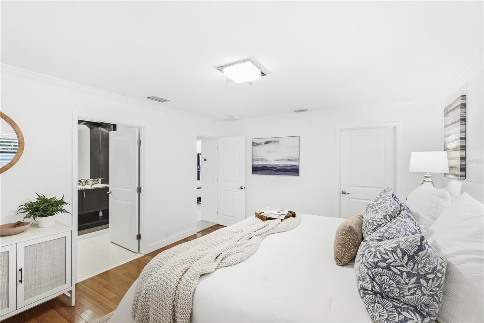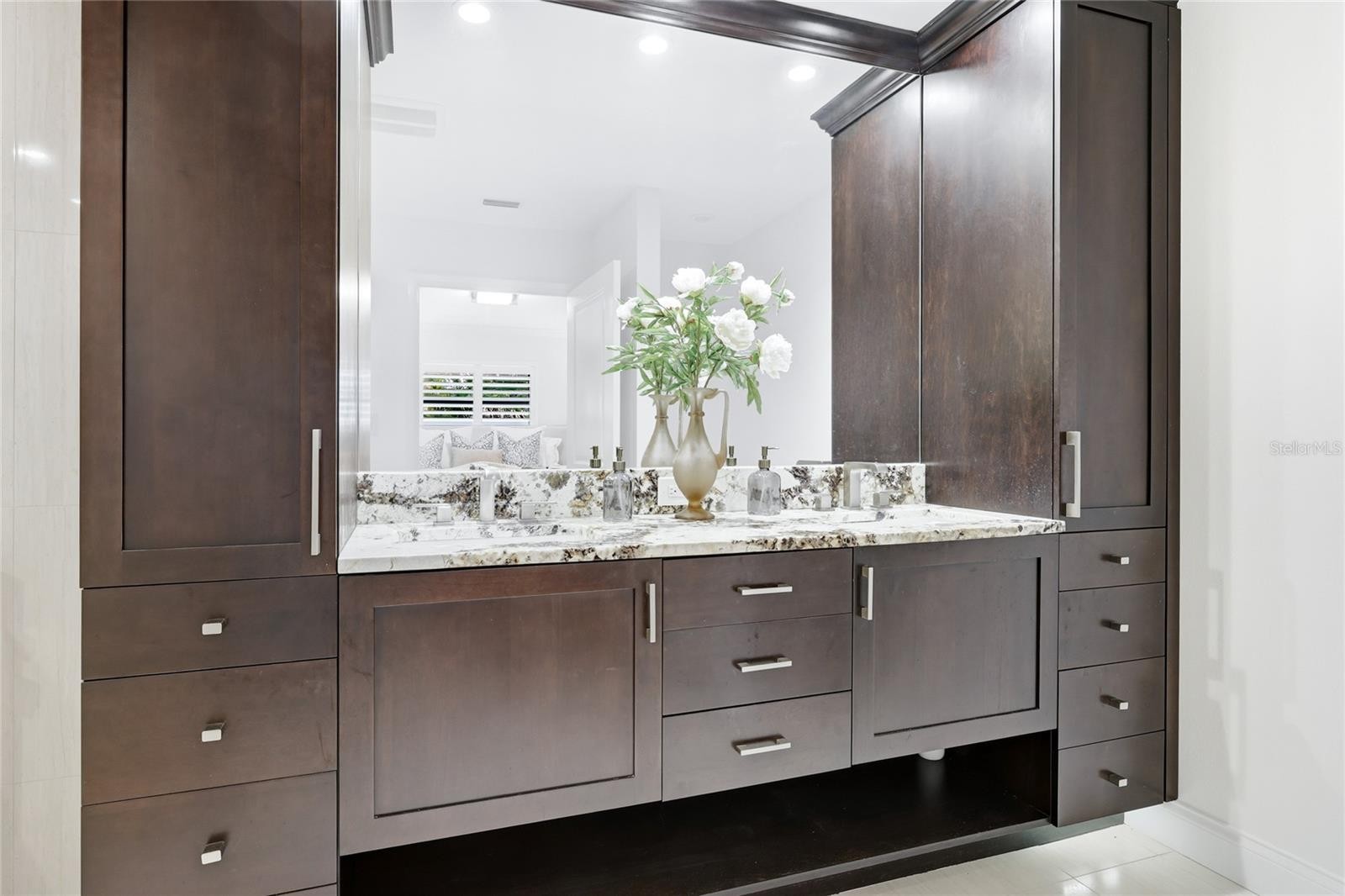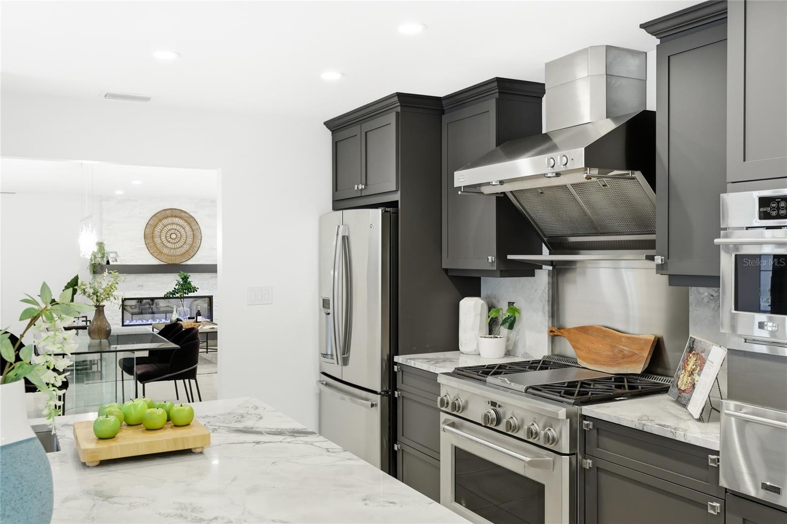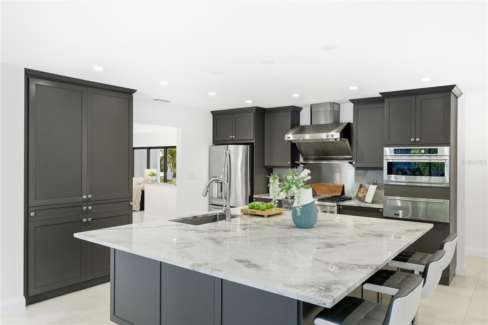 Indulge in luxurious island living in this absolutely stunning, contemporary-inspired 3-bedroom, 2.5-bath pool home, perfectly situated in the highly sought-after Bird Key community. Lush tropical landscaping creates an inviting first impression, setting the stage for the refined design and thoughtful renovations found throughout this move-in-ready residence. Inside, a light-filled open floor plan is enhanced by porcelain tile flooring, designer lighting, and expansive impact-resistant sliding glass doors that frame serene views of the fully fenced backyard. The living space flows effortlessly into a formal dining area and is anchored by an electric fireplace with striking masonry stone detail, creating an ideal setting for both entertaining and everyday living. The kitchen serves as a true focal point, featuring an oversized island with bar seating, quartzite countertops, modern stainless steel appliances, and seamless connection to the great room and stone-accented family area. The primary suite is a private retreat, offering a spa-inspired ensuite with dual vanities, a freestanding soaking tub, and a walk-in shower complete with dual rain shower heads and body jets. One secondary bedroom includes its own ensuite bath and walk-in closet, while the third bedroom opens to a charming covered front patio. Step outside to a resort-style oasis designed for relaxation and enjoyment. The renovated PebbleTec pool and spa feature a sun shelf, updated waterline tile, and generous patio space ideal for lounging or hosting guests. Additional highlights include a two-car garage with updated door, electrical improvements, refined fencing offering peaceful privacy. Located just minutes from downtown Sarasota, St. Armands Circle, and the beaches of Lido Key, Bird Key offers unmatched access to world-class dining, shopping, cultural attractions, marinas, parks, and golf. This exceptional home delivers the perfect blend of style, comfort, and location, offering a Sarasota lifestyle without compare. **THIS PROPERTY QUALIFIES FOR A 1% LENDER INCENTIVE IF USING PREFERRED LENDER. INQUIRE FOR MORE DETAILS.**