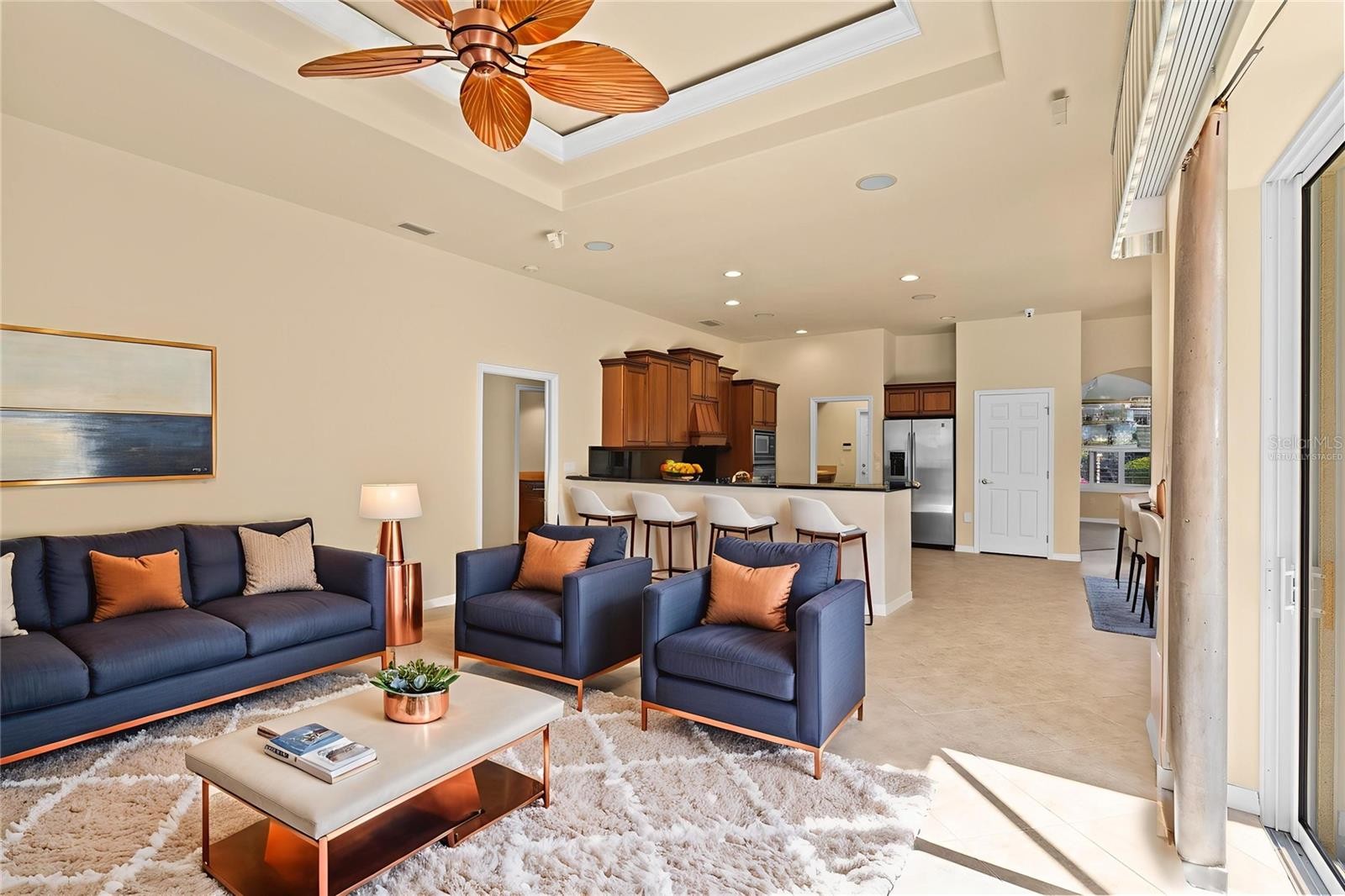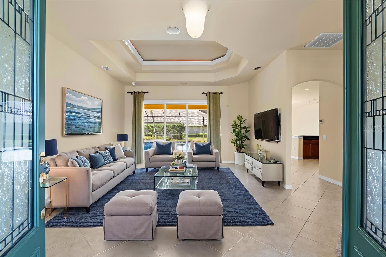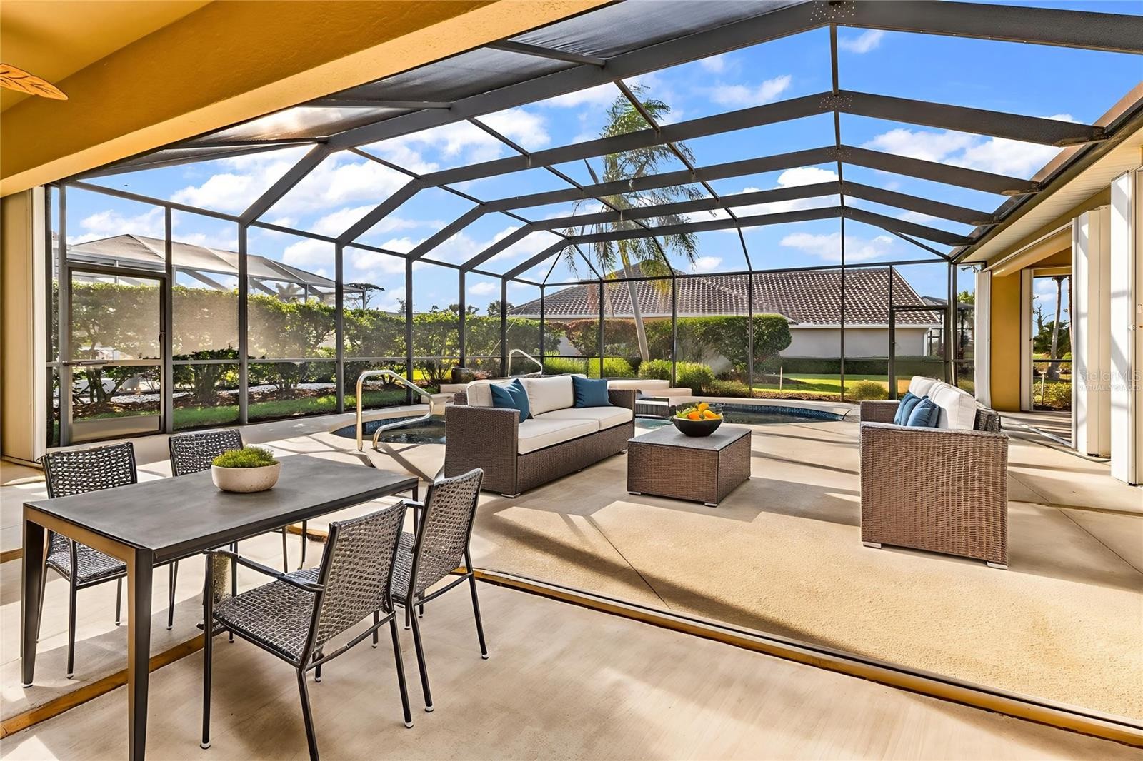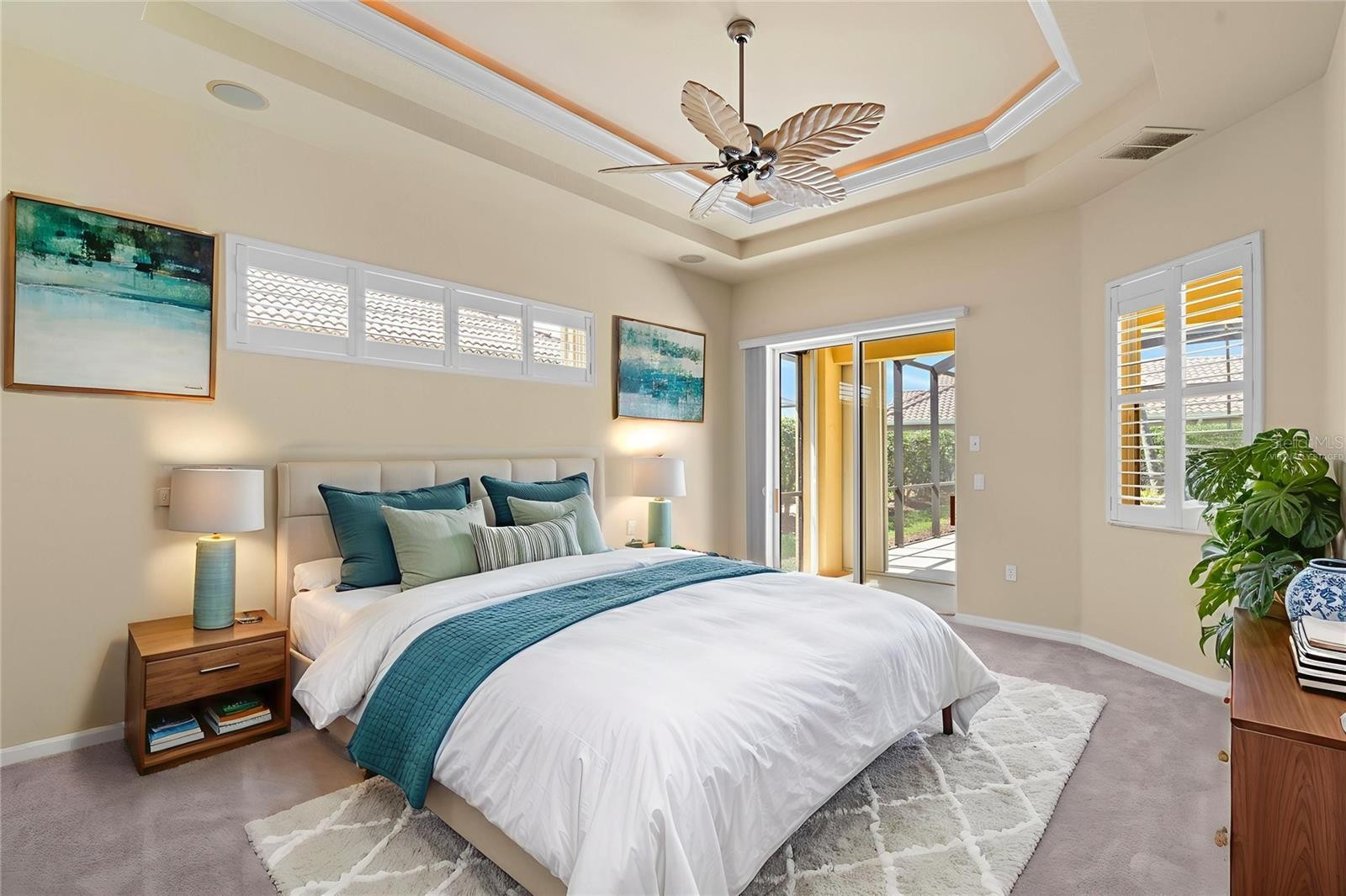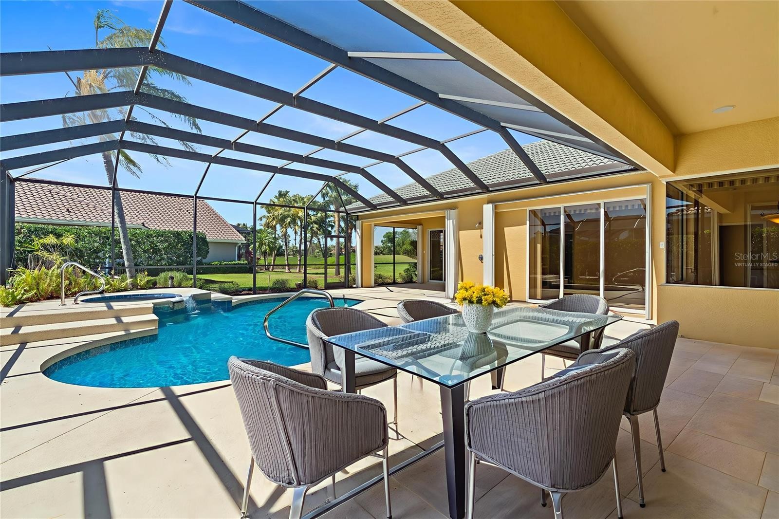 Welcome to 5270 White Ibis Drive, a stunning residence nestled within the highly sought-after gated community of Heron Creek Golf and Country Club in North Port, Florida. This beautifully designed home offers a perfect blend of luxury, comfort, and functionality, featuring 3 spacious bedrooms, 3 full bathrooms, and a versatile den ideal for a home office or study. With over 2,700 square feet of living space, the split and open floor plan is enhanced by elevated ceilings throughout, including elegant tray ceilings in the bedrooms, creating an airy and inviting ambiance. The heart of the home is the gourmet kitchen, which seamlessly overlooks the family room and boasts solid wood cabinetry, granite countertops, a center island, stainless steel appliances, and a built-in oven—perfect for both everyday living and entertaining. The primary suite is a private retreat with expansive custom walk-in closets for both him and her, and a luxurious en-suite bath. Every window throughout the home is adorned with classic plantation shutters, and custom sliding hurricane shutters enclose the entire patio for peace of mind, along with hurricane protection for all exterior windows. Step outside to your own personal oasis featuring a private pool and spa, a spacious covered lanai, and an additional open patio area perfect for sunbathing or relaxing with guests. The outdoor kitchen is fully equipped with a grill, refrigerator, sink, and more, making it ideal for hosting gatherings year-round. Additional highlights include a separate laundry room with a utility sink and an oversized two-car garage offering ample storage space. Residents of Heron Creek enjoy access to exceptional community amenities, including a 27-hole championship golf course designed by Arthur Hills, a state-of-the-art fitness center with saunas and locker rooms, a resort-style pool and spa with a sun deck, pristine tennis courts, and a 21,000-square-foot clubhouse offering a restaurant, café, and event spaces for banquets and weddings. With three different membership packages available, there’s an option to fit every lifestyle. Conveniently located near world-renowned beaches, top-rated restaurants, shopping destinations, and with quick access to I-75 for easy commuting, this home offers the perfect balance of luxury and location. Don’t miss the opportunity to make this exceptional property your own.