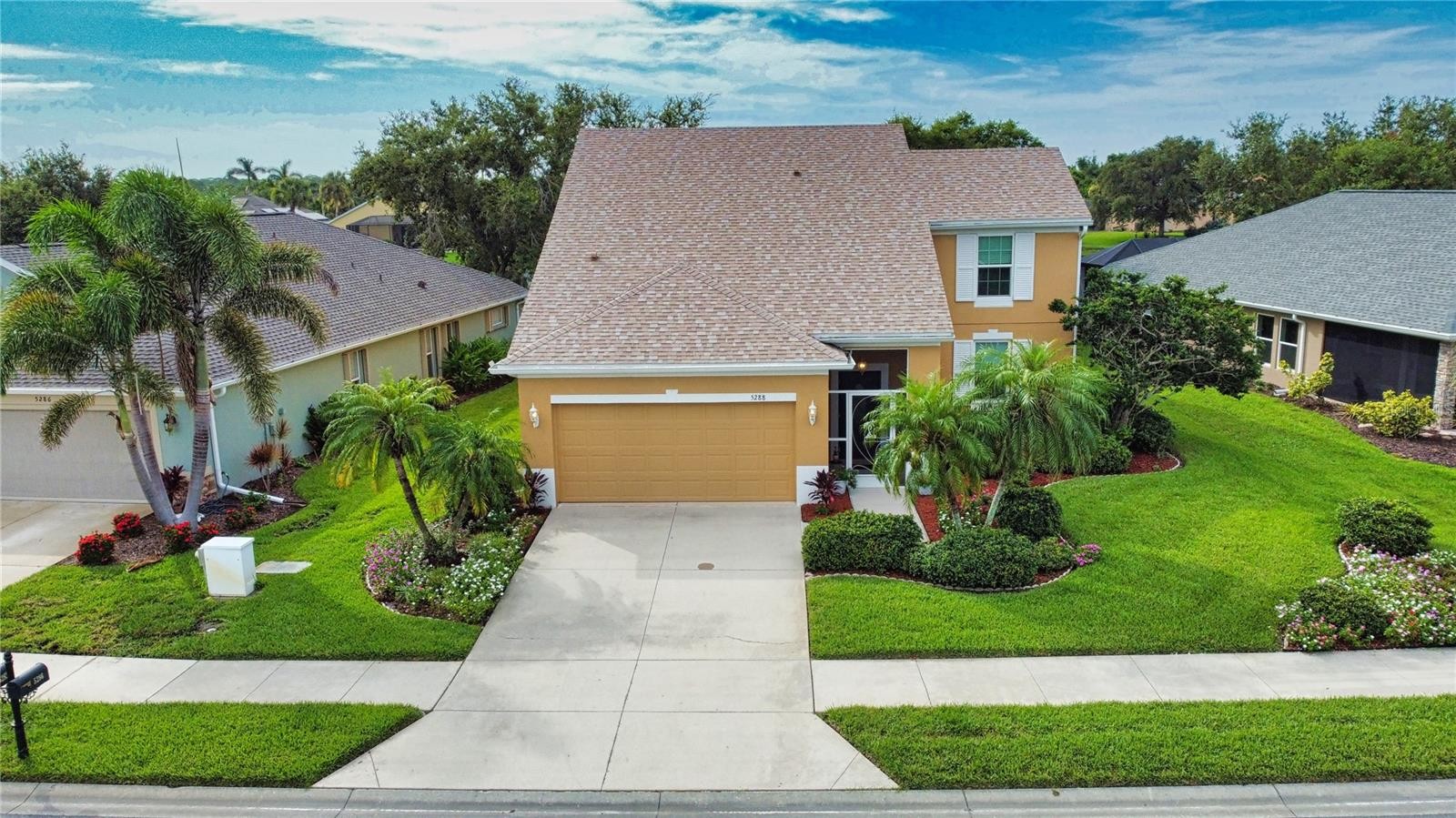 SERENE LAKEFRONT VIEWS in this lovingly kept 2 story, 4 bedroom, 2.5 bath, with Flex room in the gated community of Ventura Village has NO CDD fee and a LOW, LOW HOA Fee Truly one of the most picturesque views available can be seen from the Livingroom and Primary Suite. You can reside, worry free, as the this home had New Roof in 2023, Hurricane windows and Expanded size Storm rated sliding glass doors offering the stunning lake views. Comfort and custom touches include, Granite Counters atop more than ample cabinet storage , Stainless Kitchen Appliances, Large kitchen pantry, Custom ceiling fans, Crown Molding, The Flex room is being used as an Office but easily has other uses such as Den or formal dining. Upstairs you will find plenty of room for extended family, guests or hobbies with a large family room, 3 bedrooms and a full bath. Ventura village is just 2 miles from Manasota Public Beach/ and Boat ramp, minutes to Surrounding Dining, Shopping, Medical services, as well as, Charming downtown Venice and area beaches to the West. Beach not your thing? a short drive East takes you to Cool Today Park, the Spring training home of the Atlanta Braves and Growing area of Wellen Park. Please put this home on you list of MUST SEE properties and you too will know why Ventura Village is a wonderful place to call home! Call to see it Today!