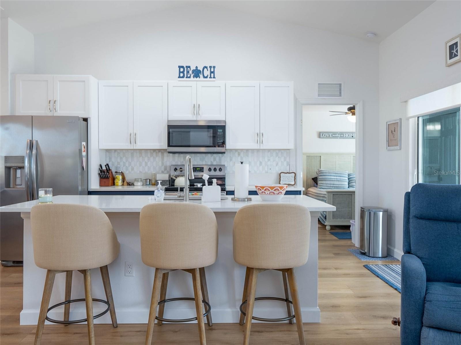 Welcome to this beautiful well-maintained 3-bedroom, 2-bath home located in a quiet neighborhood in growing North Port. This split-bedroom open floor plan offers vaulted ceilings, tile and laminate flooring, and a spacious living area perfect for entertaining. The kitchen features custom cabinetry, a breakfast bar, and views of the fenced in serene backyard. The primary suite includes a walk-in closet and en-suite bath. The home was updated in 2023 with a new roof, vinyl fence, paver patio, new flooring, whole house reverse osmosis water system, and many more updates. The home also has ring cameras at the front and rear of the home. Enjoy Florida living on a generous 0.23-acre lot with plenty of room for a pool or garden. No HOA or CDD. Conveniently located near I-75, shopping, dining, and Gulf Coast beaches. Move-in ready and full of potential—schedule your showing today!