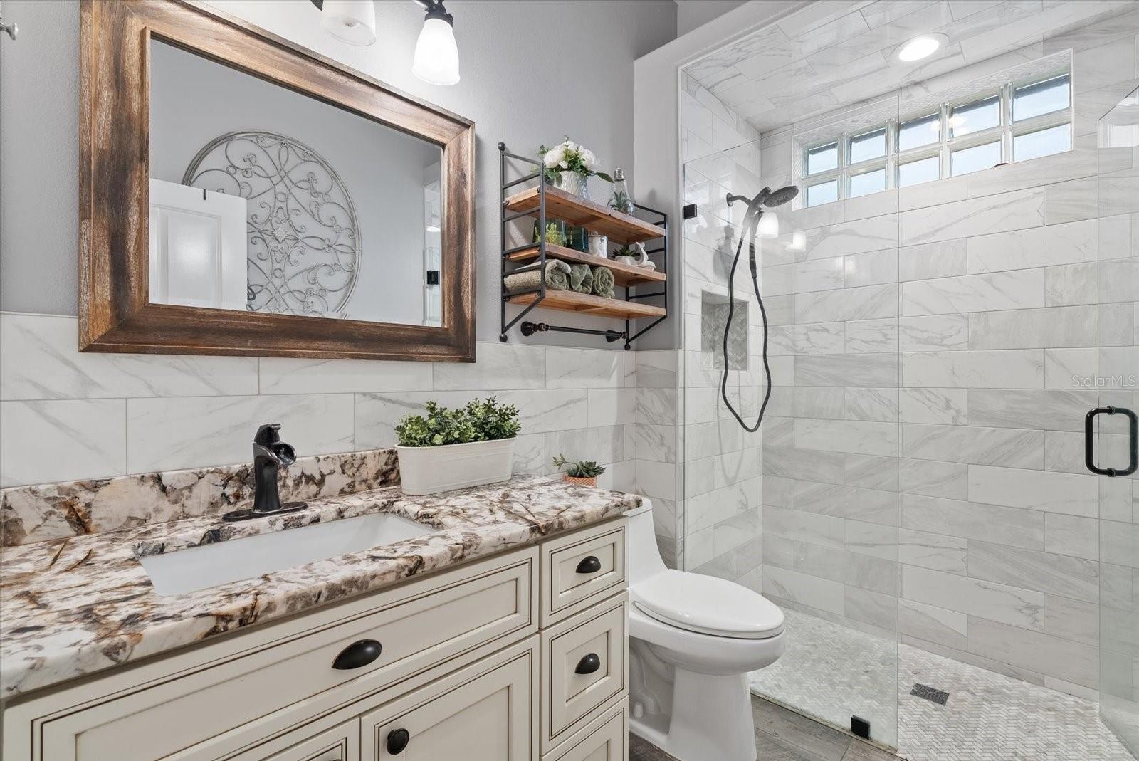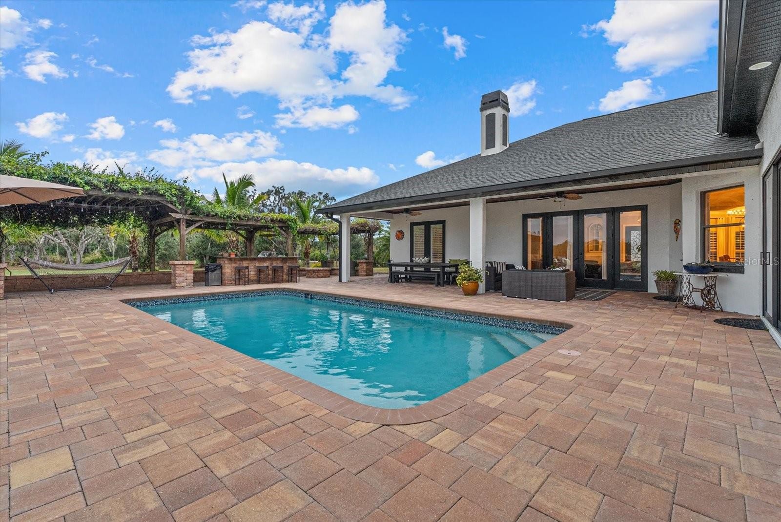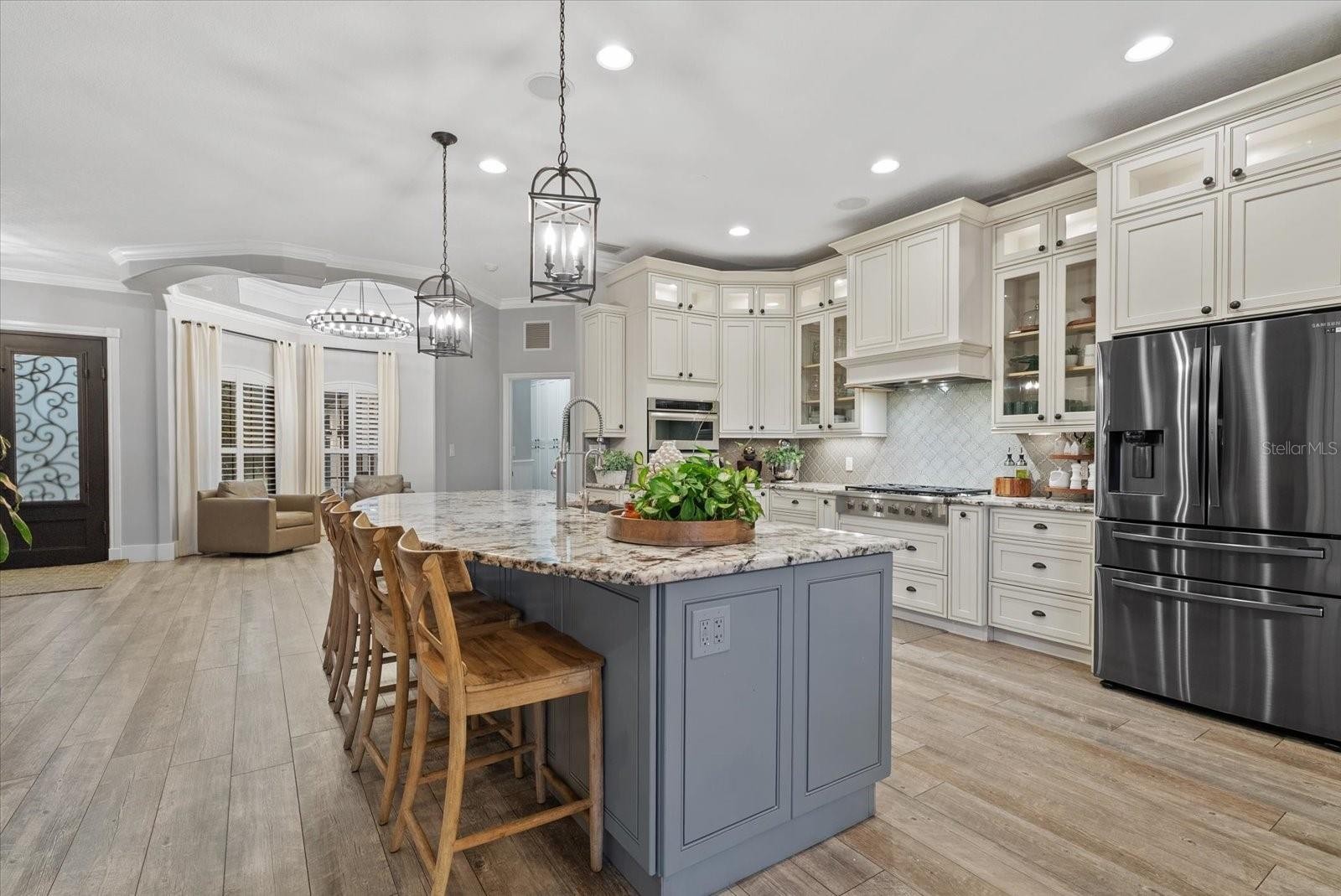 Set on 6.34 private acres within the gated equestrian community of Saddle Oak Estates, this fully renovated estate has been reimagined for modern luxury living while preserving the rare sense of space and tranquility that defines the neighborhood. A long, impressive paver driveway introduces the nearly 4,000-square-foot residence, where estate privacy meets refined design just minutes from Sarasota’s everyday conveniences. Inside, wood-look tile flows seamlessly throughout the entire home, anchoring an open-concept layout designed for effortless indoor-outdoor living. The living room makes a striking first impression with a custom stone accent wall, fireplace, and built-ins that create a warm focal point for gathering. At the heart of the home, the chef’s kitchen is both elegant and functional, featuring a beautiful cabinetry with lighted upper cabinets, large island, gas range, stainless farmhouse sink, dine-in area, and a butler’s pantry that adds exceptional storage and prep space. A sunlit oversized dining room with custom cabinetry and high tray ceilings was designed for large family celebrations and entertaining. Walls of glass open directly to the pool terrace, blurring the line between inside and out. This impressive space is equally suited to function as a great room or media lounge, with the formal dining room positioned at the front of the home — currently styled as an inviting sitting area. A half bath is conveniently positioned here, and the second primary suite is located on this wing, creating the ideal setup for a private guest retreat or multigenerational living. The home offers two spacious primary suites, each with updated spa-inspired baths that feel like personal retreats. One suite includes a flexible den — perfect as a home office, gym, nursery or even a 5th bedroom. Two additional bedrooms and a full bath provide comfortable accommodations for family or guests. Thoughtful storage is built into every corner, including a cabinet-lined hallway leading to the oversized laundry room complete with granite counters, cabinetry, and utility sink. Plantation shutters, crown molding, and designer lighting elevate the interiors, adding warmth and sophistication throughout. Step outside to a true backyard oasis. The expansive paver patio surrounds a sparkling pool and flows into a large covered area with a wood-accent ceiling designed for lounging and outdoor dining. A pergola grilling area invites relaxed evenings entertaining under the stars, while a fenced dog run offers space for pets to roam. With flexible living spaces that adapt to your needs, expansive acreage, and the serenity of Saddle Oak Estates, this property delivers the rare combination of estate privacy and modern luxury, just minutes from Sarasota’s dining, shopping, and beaches.