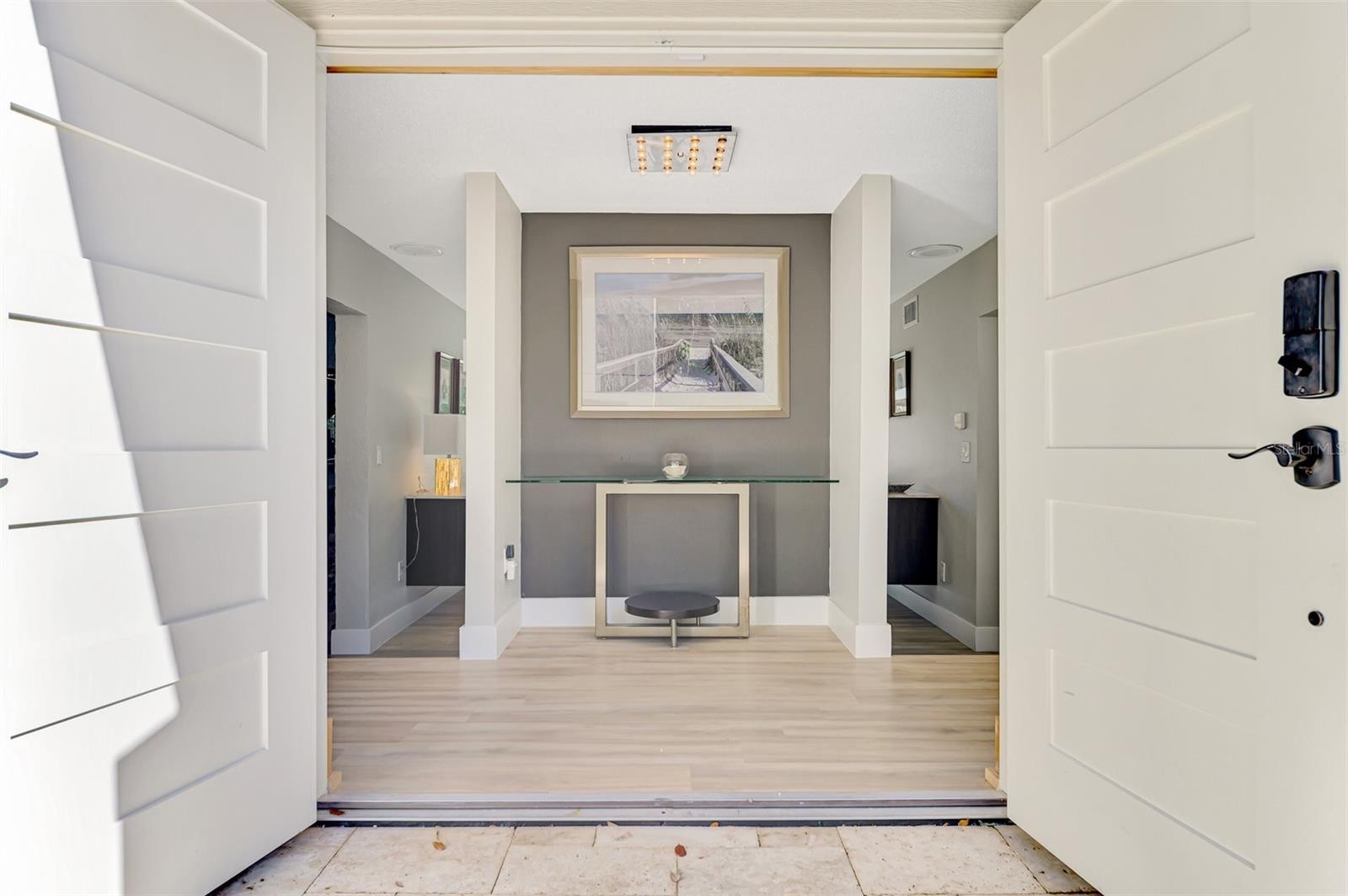 Now is your opportunity to own this waterfront tropical oasis on Siesta Key in the highly sought after exclusive community of Hidden Harbor. Comprised of just 36 homes, Hidden Harbor located on the North end of Siesta Key, is one of the most unique developments in Sarasota with its tropical landscaping reminiscent of old Florida. Most known for its waterfront lots and brick paver streets shaded by a magnificent canopy of lush greenery. This home has been beautifully reimagined to showcase its contemporary design and is situated on over half acre lot enjoying 119’ of deep-water canal front, making this a boater’s dream. The dock spans almost 40 feet and features a 10,000lb boat lift (installed in 2020) and has both electric and water supplies. No bridges to obstruct your journey out to Roberts Bay, which is just a turn of a corner away. The home features a new metal roof (2023), 4 new HVAC units that includes a garage unit (2024), and new hurricane impact sliders and windows (2021). On the inside you will find a floor plan that is flooded with natural light thanks to large sliders and tall architectural style windows that truly bring the Florida landscape inside. The first floor has all new luxury flooring and woodwork, including new solid core doors. The kitchen was recently renovated with European style cabinetry, stone counters, and a luxury Fisher & Paykel appliance package including range hood and induction cooktop. The two light-filled bedrooms on the East side of the home both feature access to outdoor spaces and walk-in closets. The shared bathroom, which also acts as a pool bath with its door to the outside, was renovated with a new seamless glass shower, European style vanity with LED mirror, and all new fixtures and hardware. Throughout the home, you will find restored original fixtures keeping with the home’s integrity. The primary suite dominates the second floor with a loft area, a light filled bedroom that enjoys the cross breeze when both walls of sliding windows are open, and a custom installed closet. There is an updated en-suite bathroom with another seamless glass shower and floating vanity with new upgraded fixtures. Outside the yard is truly a Florida paradise with fire pit area, stunning tropical landscaping with professionally installed low voltage lighting system, pest control misting system, and an impressive heated pool that was resurfaced and upgraded with a travertine deck. This property offers extreme privacy, architectural character and significance, and water views, all within one of the most unique neighborhoods on Siesta Key. The Hidden Harbor canal offers deep water for your boat or sailboat. Enjoy true island life, whether you find yourself relaxing by your pool, boating, fishing, kayaking, and even paddle-boarding all from your property. There is a natural seawall of mangroves, and the riprap was installed by the reputable Duncan Seawall. The world-famous Siesta Key Beach is just a short 1.5-mile bike ride, golf cart ride, or leisurely walk away. Enjoy local restaurants, boutiques, and live music at the island's lively Siesta Village. Close to the mainland and downtown Sarasota, this is a prime location for island living. If you are looking for your own piece of paradise, and a property that is truly unique, set up a private tour today!